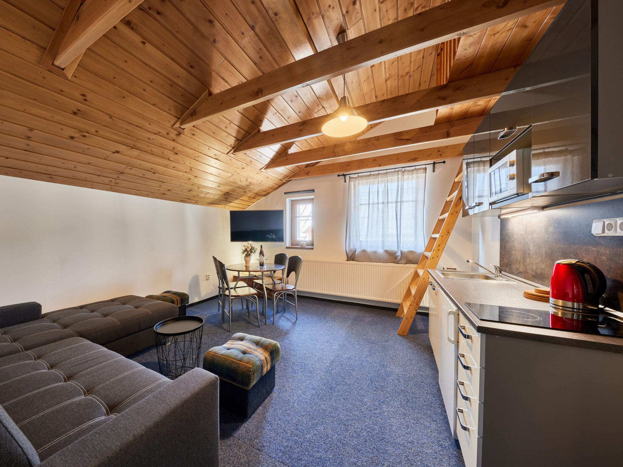 Cosy house "Marika", detached. Property composed of main house and outbuilding, in the centre of Cerný Dul, 300 m from the skiing area. For shared use: property. In the house: sauna, hot tub (all extra), central heating system, washing machine. Parking at the house. Grocery 50 m, shopping centre 8 km, restaurant 200 m, bus stop 200 m, railway station "Vrchlabí" 10 km, indoor swimming pool 6 km. Golf course (18 hole) 12 km, tennis 5 km, walking paths from the house 10 m, cycle lane 10 m, ski lift, chair lift, slopes, ski rental 300 m, ski school, children's ski school 300 m. Nearby attractions: Aquacentrum Janské Lázne 6 km, Vrchlabí 13 km, Aquapark Trutnov 28 km, Zoo Safari Dvur Králové 32 km, Bozkovské jeskyne 40 km, Adršpašské skály 47 km. Well-known ski regions can easily be reached: Cerný Dul (SkiResort Cerná hora-Pec) 300 m, Janské Lázne 5 km, Herlíkovice, Pec pod Snežkou 20 km. Well-known lakes can easily be reached: Cistá 3.5 km, Vrchlabí 12 km. Hiking paths: Snežka 28 km.