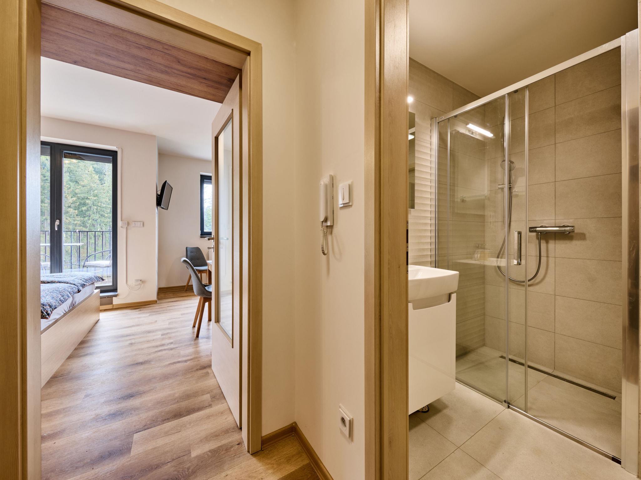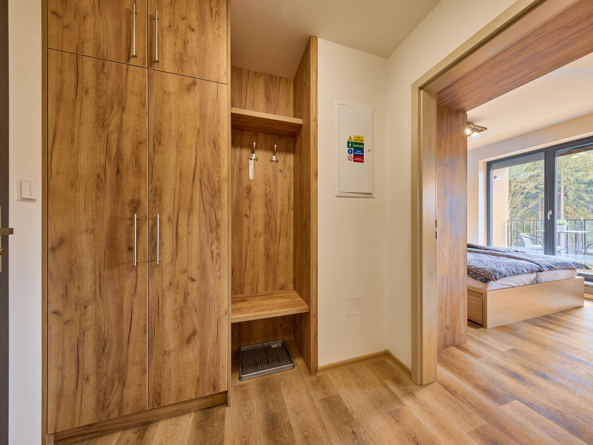 Modern, comfortable apartment block "Cerný Dul", detached. In the centre of Cerný Dul, 900 m from the skiing area. In the house: lift, storage room for skis, central heating system. Parking at the house. Grocery 600 m, bus stop "Cerný dul, námestí" 640 m, indoor swimming pool 25 km. Golf course (18 hole) 12 km, tennis 5 km, walking paths from the house 10 m, cycle lane, ski lift 900 m, chair lift, slopes, ski rental 900 m, ski school, children's ski school, ski-kindergarten. Nearby attractions: Janské Lázne Spa 6 km, Vrchlabí 13 km, Aquapark Trutnov 28 km, Zoo Safari Dvur Králové 32 km, Bozkovské jeskyne 40 km, Adršpašské skály 47 km. Well-known ski regions can easily be reached: Cerný Dul 900 m, Janské Lázne 5 km, Herlíkovice, Pec pod Snežkou. Well-known lakes can easily be reached: Cistá 3.5 km, Vrchlabí 12 km. Hiking paths: Snežka 28 km.