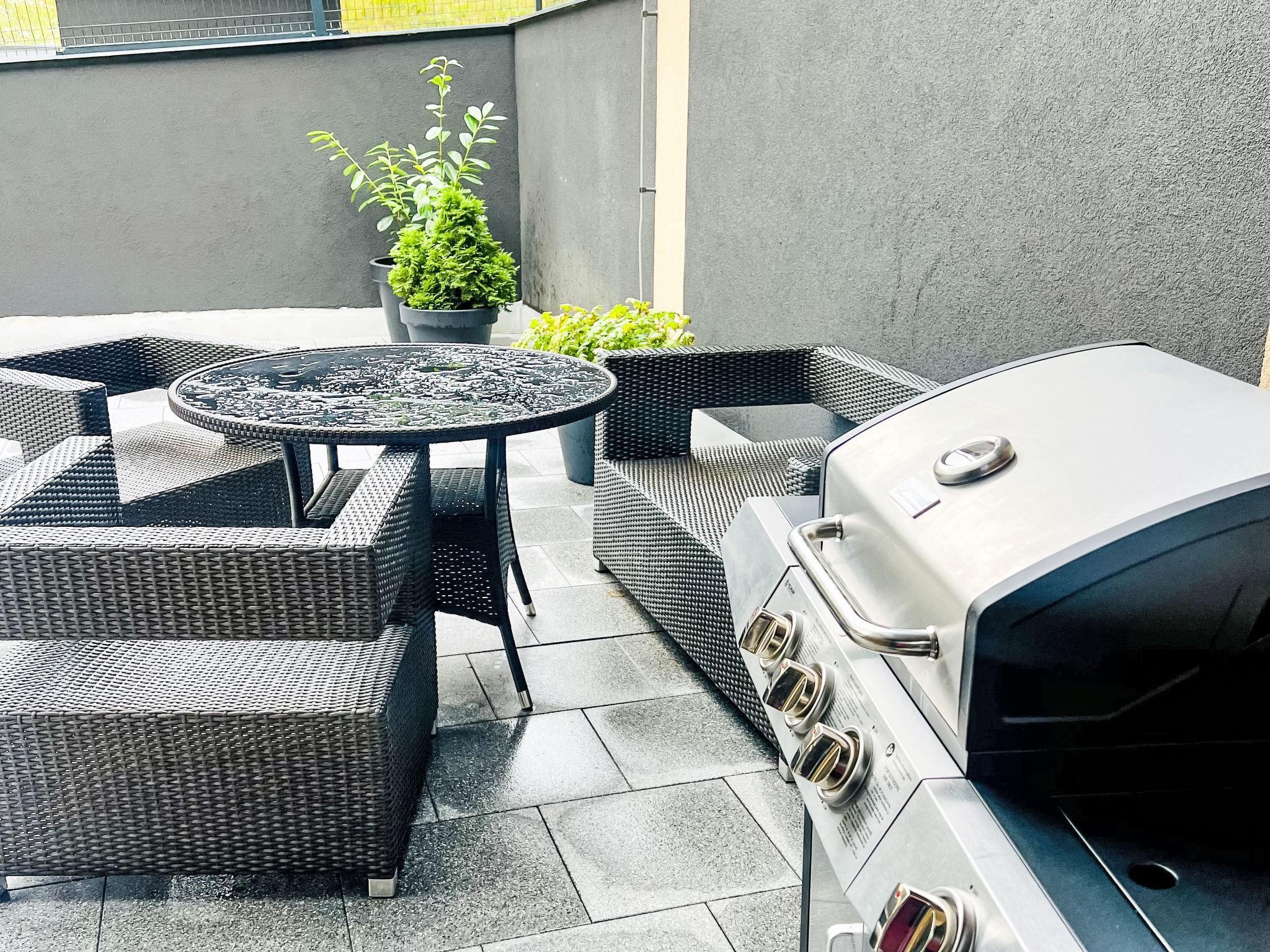 2-room apartment 42 m2, on the ground floor. Very beautiful and modern furnishings: living/dining room with 1 double sofabed and TV. 1 room with 1 double bed (180 cm, length 200 cm). Kitchenette (oven, 4 induction hot plates, kettle, electric coffee machine). Shower/WC. Heating. Large terrace 42 m2. Terrace furniture, barbecue, box-room. Facilities: washing machine, iron, children's high chair, baby cot, hair dryer. Internet (WiFi, free). Parking space n 03. Please note: suitable for families. Non-smoking house. Cellar.