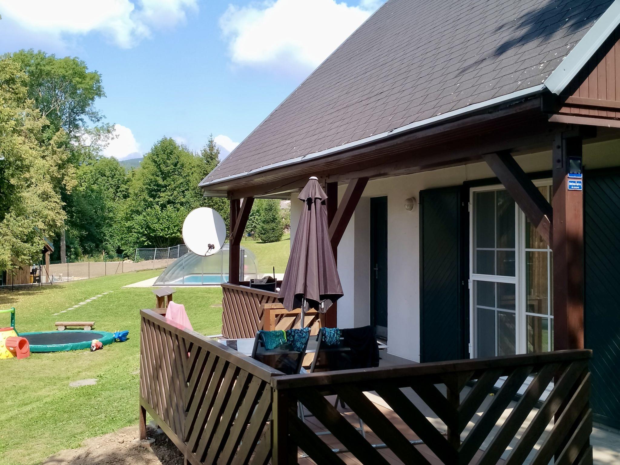 Cistá v Krkonoších 2 km from Cerný Dul: Child friendly, beautiful, comfortable holiday village "Holiday Hill 26", 500 m a.s.l., surrounded by trees and meadows. 43 houses in the resort. On the outskirts, in a secluded, quiet, sunny position, 1.5 km from the lake, 3 km from the skiing area, in the countryside. For shared use: property 6 ha, meadow, swimming pool heated (9 x 4 m, depth 120 cm, seasonal availability: 15.May. - 30.Sep. pool opening hours: 09:00-20:00). Shower/WC in the pool area, table tennis, children's playground (swing, sandbox). Private: terrace, garden furniture, barbecue. In the complex: reception, storage room for bicycles, storage room for skis, central heating system, ski boot dryer. Parking (for 2 cars) at the house. Shop 2.5 km, grocery 2.5 km, supermarket 7.5 km, restaurant 1.6 km, pub garden 400 m, bus stop "Cerný Dul, Cistá-pošta" 400 m, grass beach 1.5 km (small), indoor swimming pool 19 km. Golf course (18 hole) 14 km, tennis 2.5 km, sports centre 2.5 km, walking paths from the house, cycle lane 100 m, ski lift 3 km, chair lift 3 km, slopes 3 km, ski school 3 km, children's ski school 3 km, sled run 7 km, cross country ski track 100 m. Nearby attractions: Janské Lázne Spa 9 km, Vrchlabí 10 km, Aquapark Trutnov 25 km, Zoo Safari Dvur Králové 29 km, Bozkovské jeskyne 37 km, Adršpašské skály 44 km. Well-known ski regions can easily be reached: Cerný Dul 3 km, Herlíkovice 15 km, Pec pod Snežkou 22 km. Well-known lakes can easily be reached: Cistá 1.5 km, Vrchlabí 9 km. Hiking paths: Snežka 25 km.