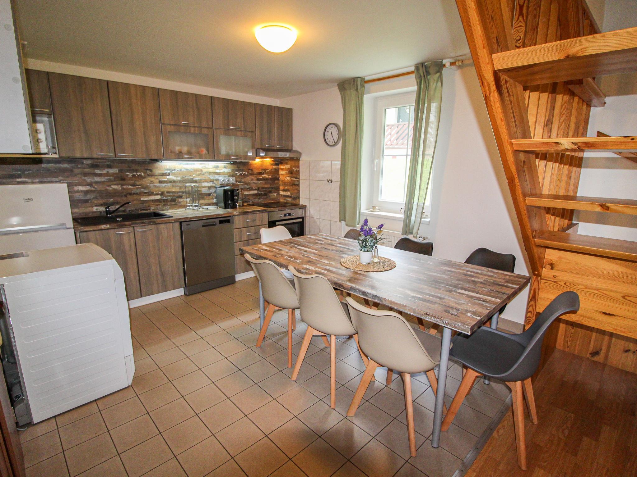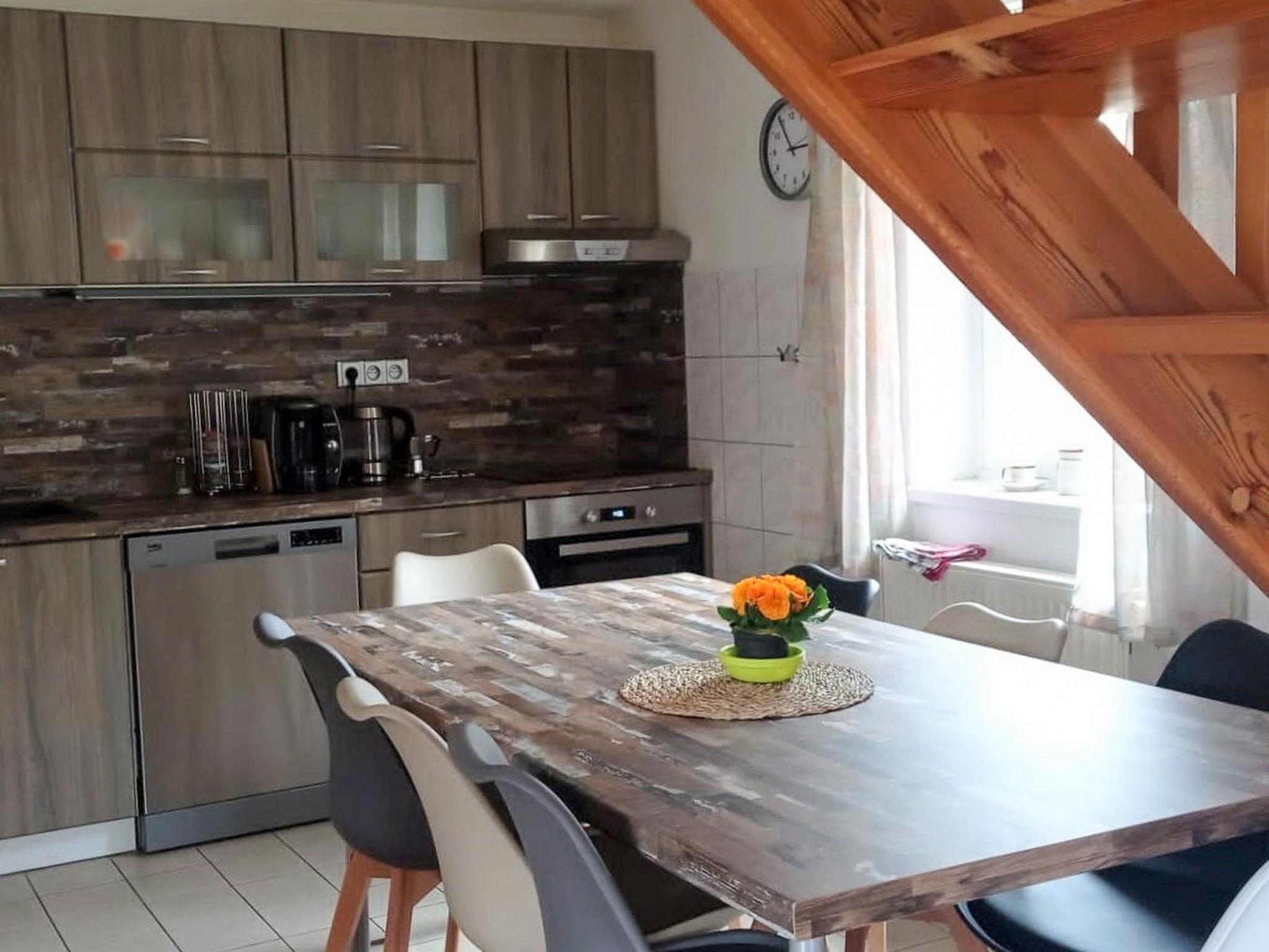 4-room cottage 100 m2 on 2 levels. Bright, comfortable and cosy furnishings: open living room with satellite TV. Exit to the terrace. Kitchen (oven, dishwasher, 4 ceramic glass hob hotplates, toaster, kettle, microwave, freezer, electric coffee machine) with dining table. Sep. WC. Upper floor: 2 rooms, each room with 1 double bed. 1 room with 2 beds and 1 x 2 bunk beds. Bath/WC. Large terrace 17 m2. Terrace furniture, barbecue (portable). Facilities: washing machine, dryer, baby cot (extra), hair dryer. Internet (WiFi, free). Please note: suitable for families. Non-smoking house. Maximum 2 pets/ dogs allowed.