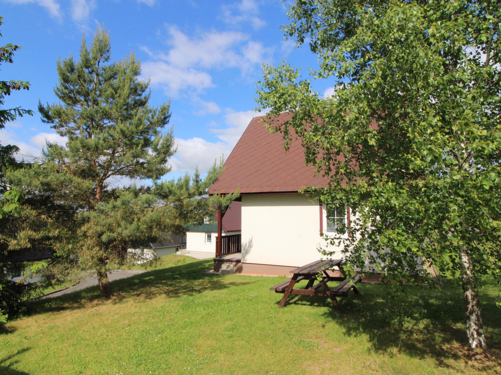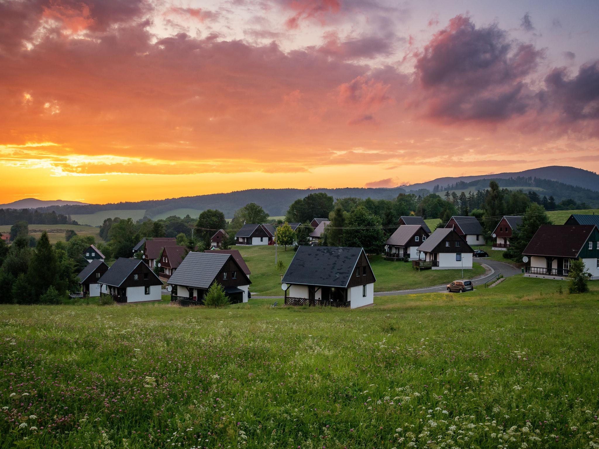 Cistá v Krkonoších 2 km from Cerný Dul: Child friendly, beautiful, comfortable holiday village "Holiday Hill 46", 500 m a.s.l., surrounded by trees and meadows. 43 houses in the resort. On the outskirts, in a secluded, quiet, sunny position, 1.5 km from the lake, 3 km from the skiing area, in the countryside. For shared use: property 6 ha, meadow, swimming pool heated (9 x 4 m, depth 120 cm, seasonal availability: 15.May. - 30.Sep. pool opening hours: 09:00-20:00). Shower/WC in the pool area, table tennis, children's playground (swing, sandbox). In the complex: reception, central heating system. Parking (for 2 cars) at the house. Shop 2.5 km, grocery 2.5 km, supermarket 7.5 km, restaurant 1.6 km, pub garden 400 m, bus stop "Cerný Dul, Cistá-pošta" 400 m, grass beach 1.5 km (small), indoor swimming pool 19 km. Golf course (18 hole) 14 km, tennis 2.5 km, sports centre 2.5 km, walking paths from the house 100 m, cycle lane, ski lift 3 km, chair lift 3 km, slopes 3 km, ski school 3 km, children's ski school 3 km, sled run 7 km, cross country ski track 100 m. Nearby attractions: Janské Lázne Spa 9 km, Vrchlabí 10 km, Aquapark Trutnov 25 km, Zoo Safari Dvur Králové 29 km, Bozkovské jeskyne 37 km, Adršpašské skály 44 km. Well-known ski regions can easily be reached: Cerný Dul 3 km, Herlíkovice 15 km, Pec pod Snežkou 22 km. Well-known lakes can easily be reached: Cistá 1.5 km, Vrchlabí 9 km. Hiking paths: Snežka 25 km. Please note: ski bus (free of charge).
