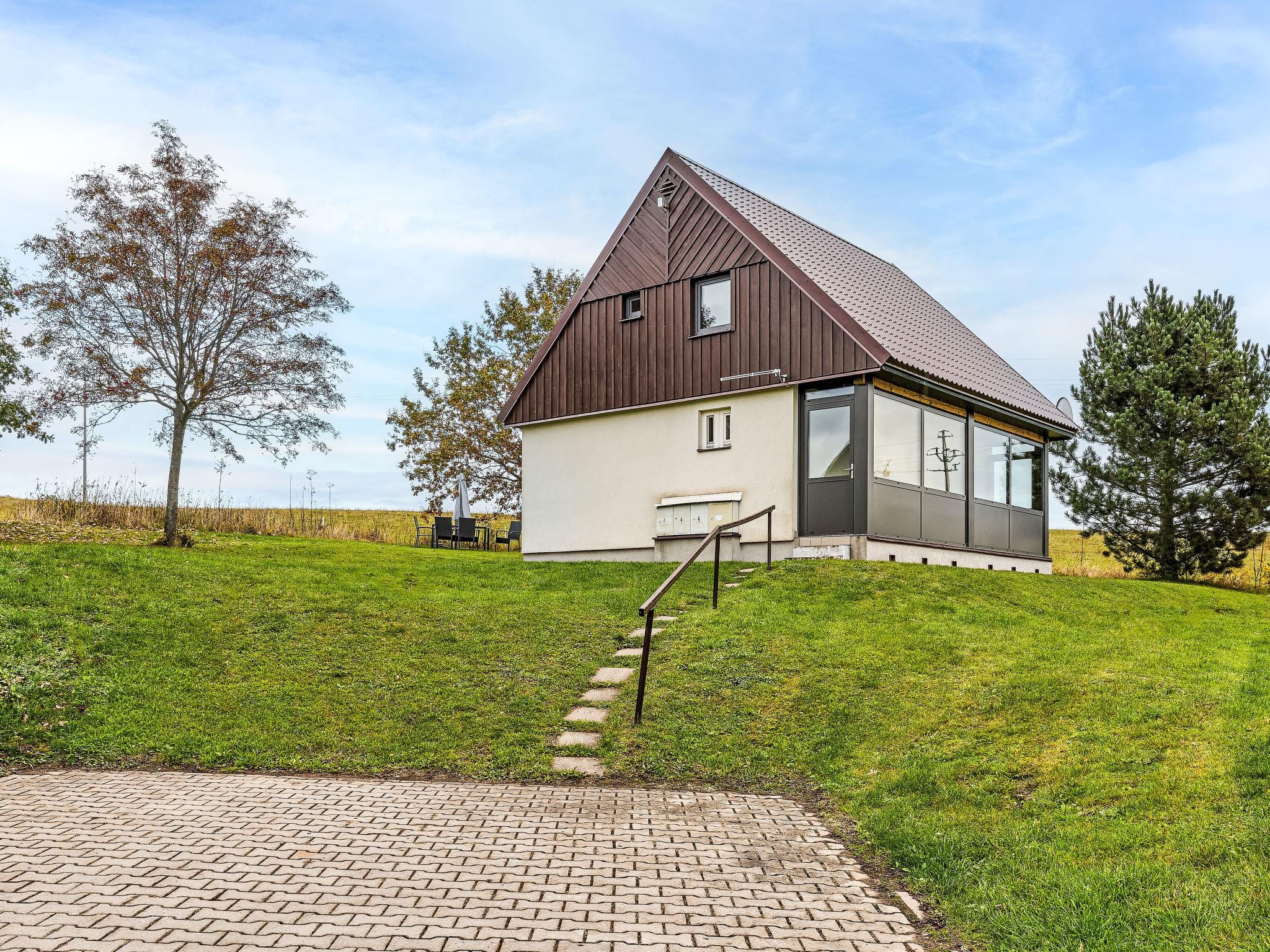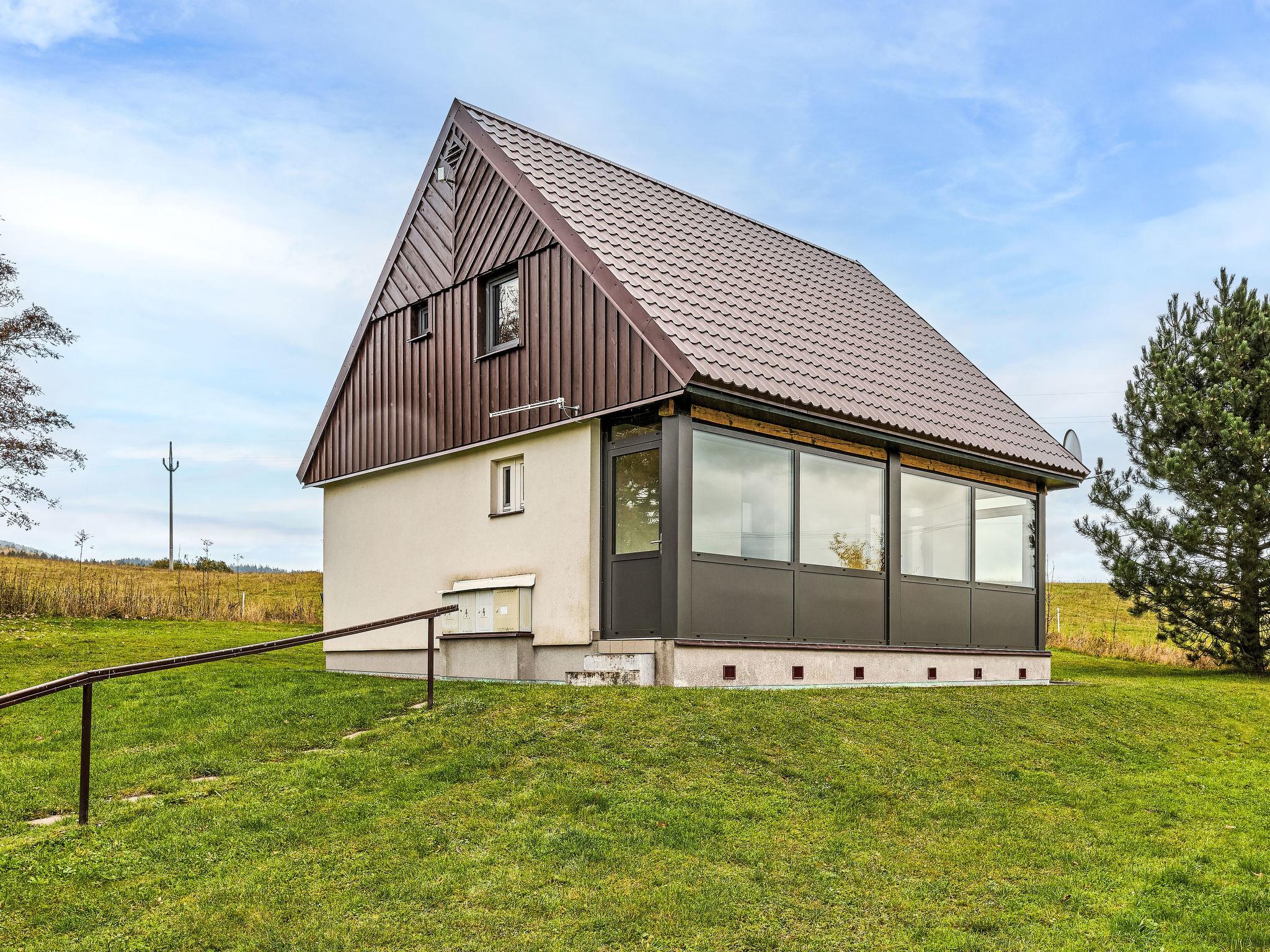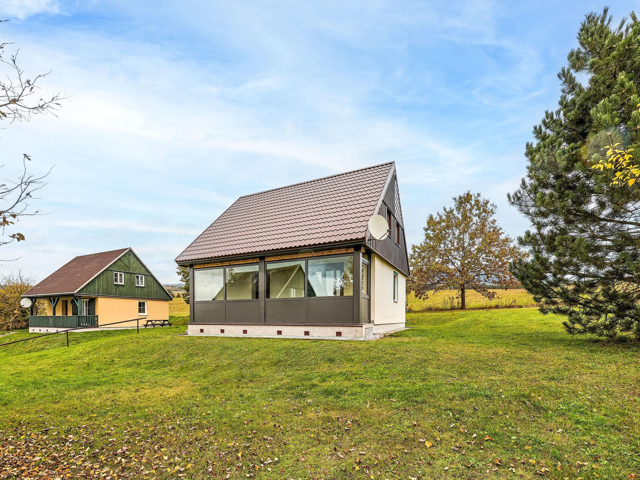 Cistá v Krkonoších 2 km from Cerný Dul: Child friendly, beautiful, comfortable holiday village "Holiday Hill 58", 500 m a.s.l., surrounded by trees and meadows. 43 houses in the resort. On the outskirts, in a secluded, quiet, sunny position, 1.5 km from the lake, 3 km from the skiing area, in the countryside. For shared use: property 6 ha, meadow, swimming pool heated (9 x 4 m, depth 120 cm, seasonal availability: 15.May. - 30.Sep. pool opening hours: 09:00-20:00). Shower/WC in the pool area, table tennis, children's playground (swing, sandbox). In the complex: reception, central heating system. Parking (for 2 cars) at the house. Shop 2.5 km, grocery 2.5 km, supermarket 7.5 km, restaurant 1.6 km, pub garden 400 m, bus stop "Cerný Dul, Cistá-pošta" 400 m, grass beach 1.5 km (small), indoor swimming pool 19 km. Golf course (18 hole) 14 km, tennis 2.5 km, sports centre 2.5 km, walking paths from the house, cycle lane 100 m, ski lift 3 km, chair lift 3 km, slopes 3 km, ski school 3 km, children's ski school 3 km, sled run 7 km, cross country ski track 100 m. Nearby attractions: Janské Lázne Spa 9 km, Vrchlabí 10 km, Aquapark Trutnov 25 km, Zoo Safari Dvur Králové 29 km, Bozkovské jeskyne 37 km, Adršpašské skály 44 km. Well-known ski regions can easily be reached: Cerný Dul 3 km, Herlíkovice 15 km, Pec pod Snežkou 22 km. Well-known lakes can easily be reached: Cistá 1.5 km, Vrchlabí 9 km. Hiking paths: Snežka 25 km.