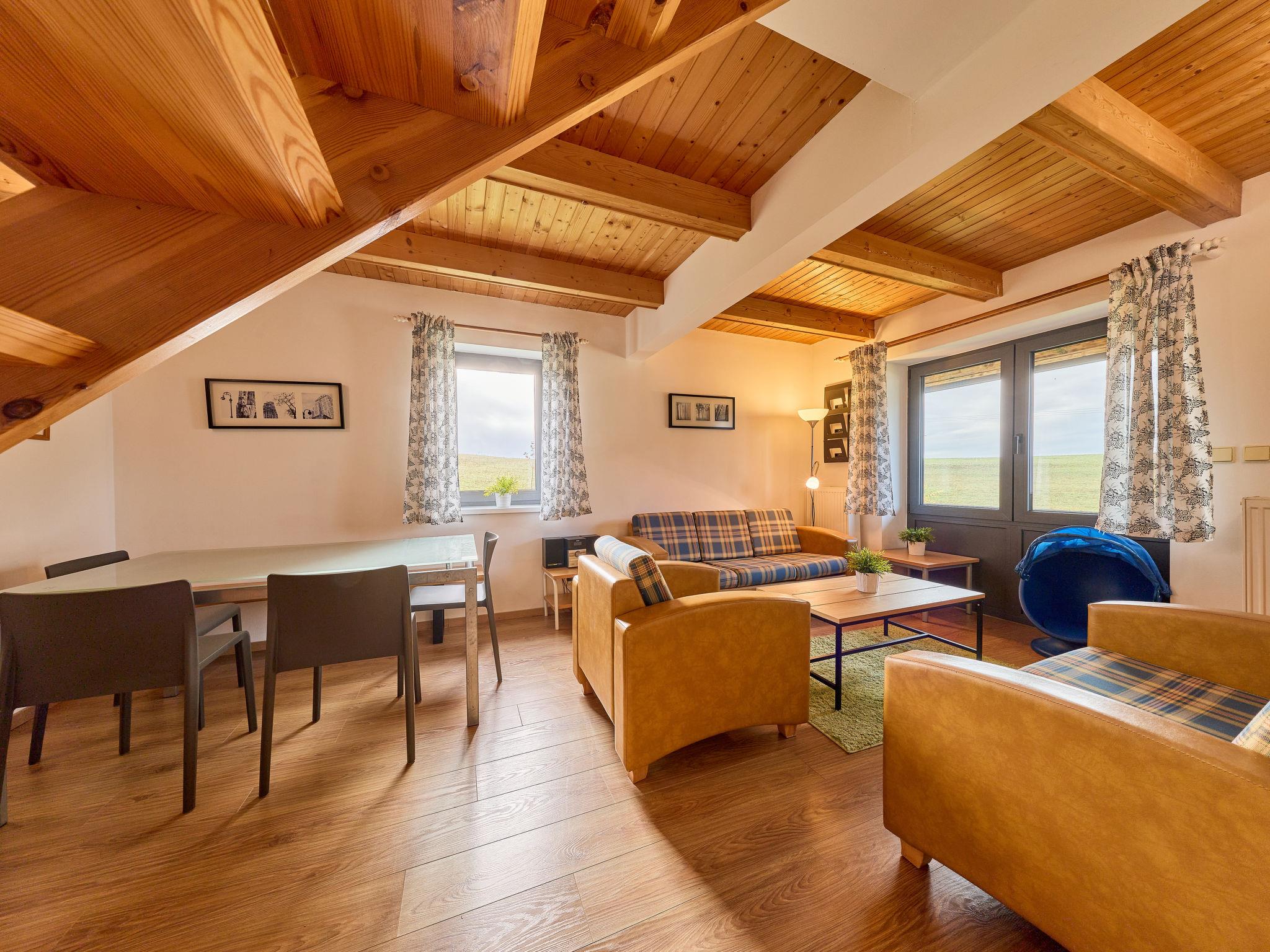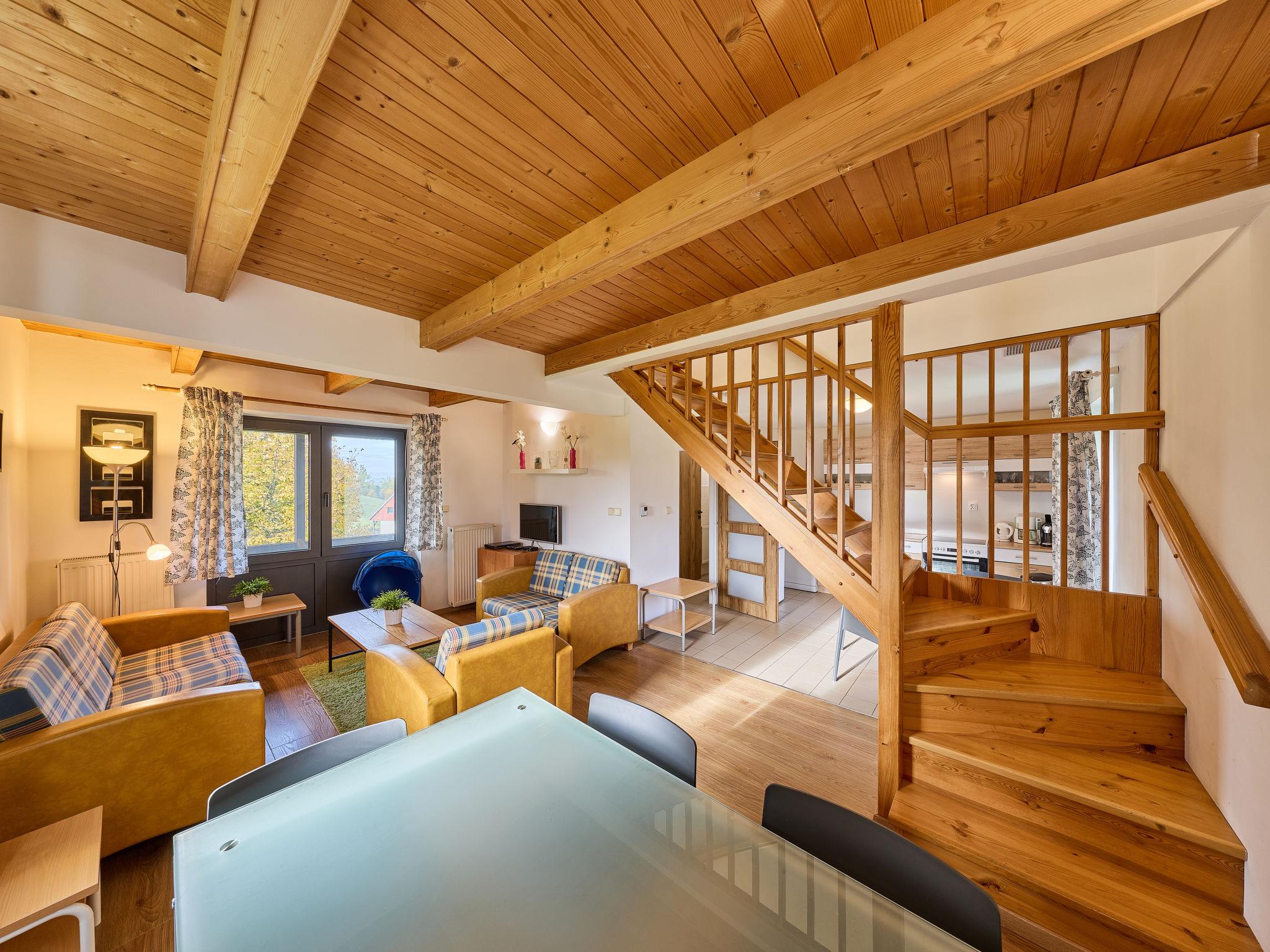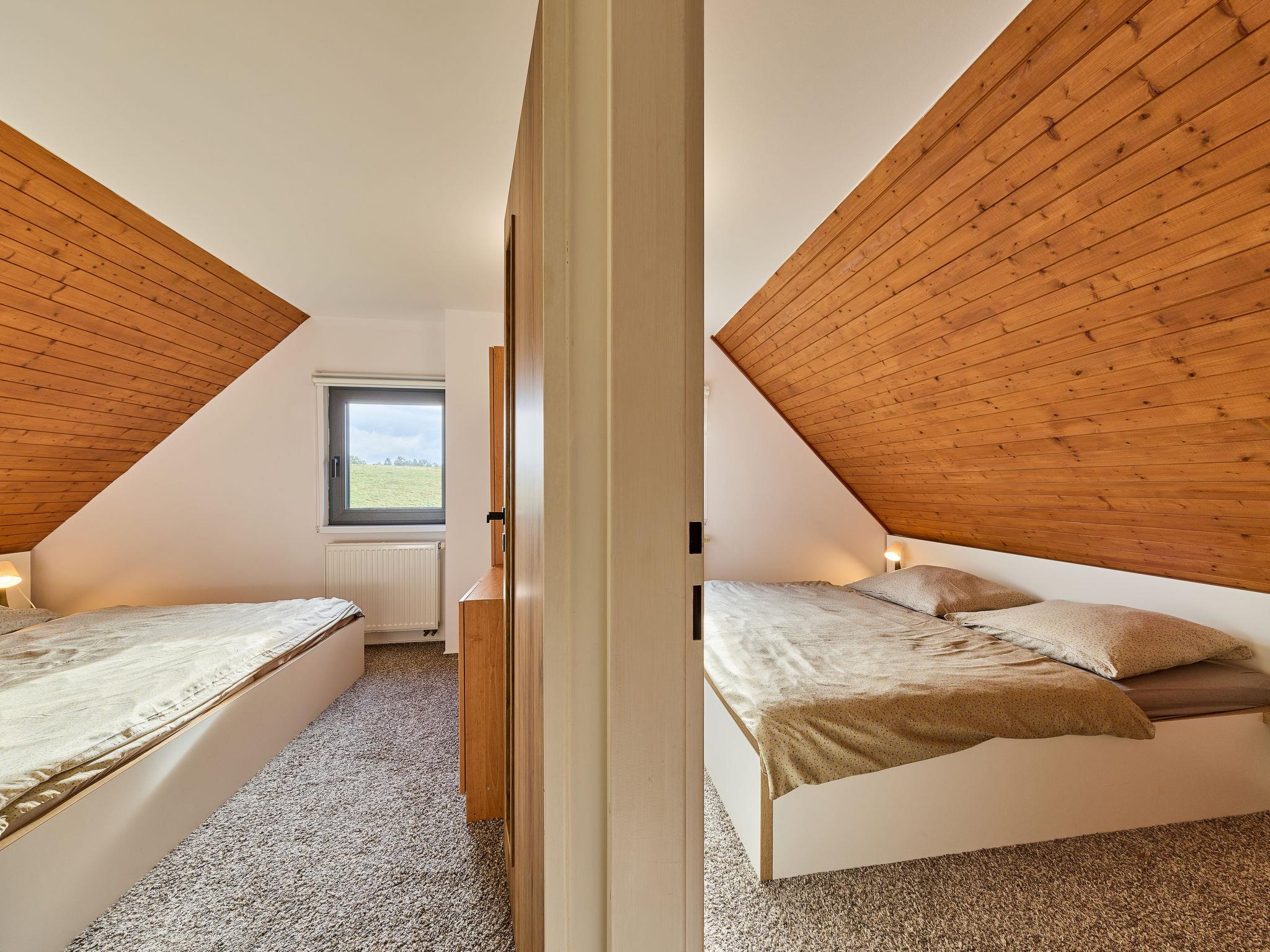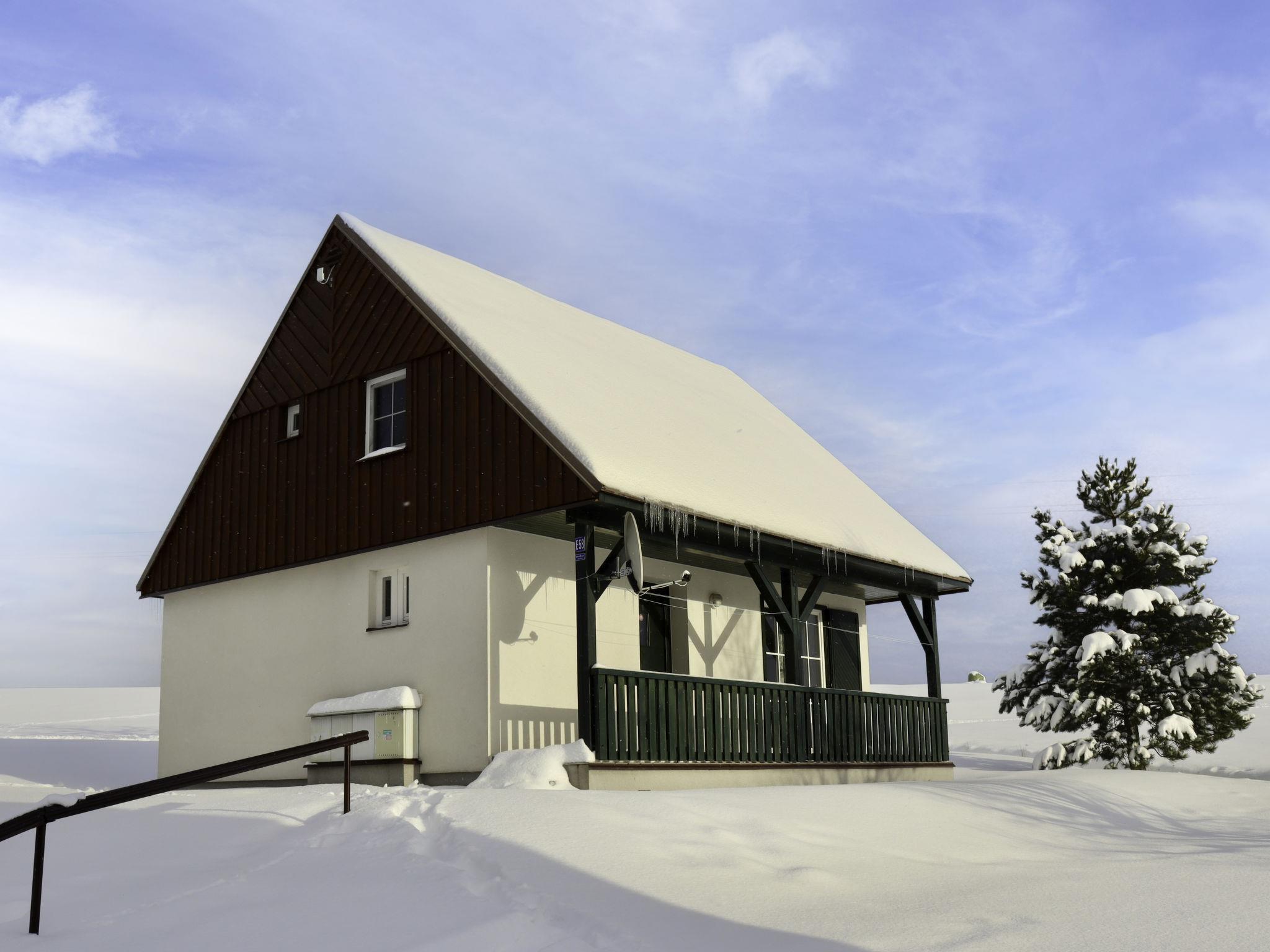 Cistá v Krkonoších 2 km from Cerný Dul: Child friendly, beautiful, comfortable holiday village "Holiday Hill 58", 500 m a.s.l., surrounded by trees and meadows. 43 houses in the resort. On the outskirts, in a secluded, quiet, sunny position, 1.5 km from the lake, 3 km from the skiing area, in the countryside. For shared use: property 6 ha, meadow, swimming pool heated (9 x 4 m, depth 120 cm, seasonal availability: 15.May. - 30.Sep. pool opening hours: 09:00-20:00). Shower/WC in the pool area, table tennis, children's playground (swing, sandbox). In the complex: reception, central heating system. Parking (for 2 cars) at the house. Shop 2.5 km, grocery 2.5 km, supermarket 7.5 km, restaurant 1.6 km, pub garden 400 m, bus stop "Cerný Dul, Cistá-pošta" 400 m, grass beach 1.5 km (small), indoor swimming pool 19 km. Golf course (18 hole) 14 km, tennis 2.5 km, sports centre 2.5 km, walking paths from the house, cycle lane 100 m, ski lift 3 km, chair lift 3 km, slopes 3 km, ski school 3 km, children's ski school 3 km, sled run 7 km, cross country ski track 100 m. Nearby attractions: Janské Lázne Spa 9 km, Vrchlabí 10 km, Aquapark Trutnov 25 km, Zoo Safari Dvur Králové 29 km, Bozkovské jeskyne 37 km, Adršpašské skály 44 km. Well-known ski regions can easily be reached: Cerný Dul 3 km, Herlíkovice 15 km, Pec pod Snežkou 22 km. Well-known lakes can easily be reached: Cistá 1.5 km, Vrchlabí 9 km. Hiking paths: Snežka 25 km.
