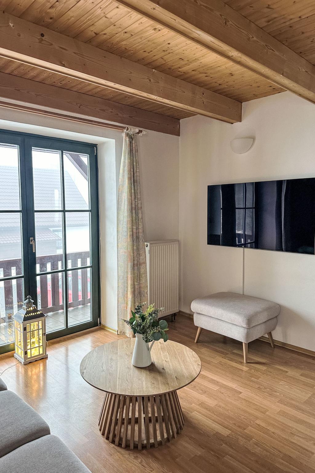 4-room cottage 100 m2 on 2 levels. Bright, comfortable and cosy furnishings: open living room with satellite TV. Exit to the terrace. Kitchen (4 hot plates, kettle, microwave, freezer) with dining table. Sep. WC. Upper floor: 3 rooms, each room with 2 beds. Bath/WC. Small terrace. Terrace furniture. Facilities: washing machine, baby cot. Internet (WiFi, free). Please note: suitable for families. Non-smoking house. Maximum 1 pet/ dog allowed.