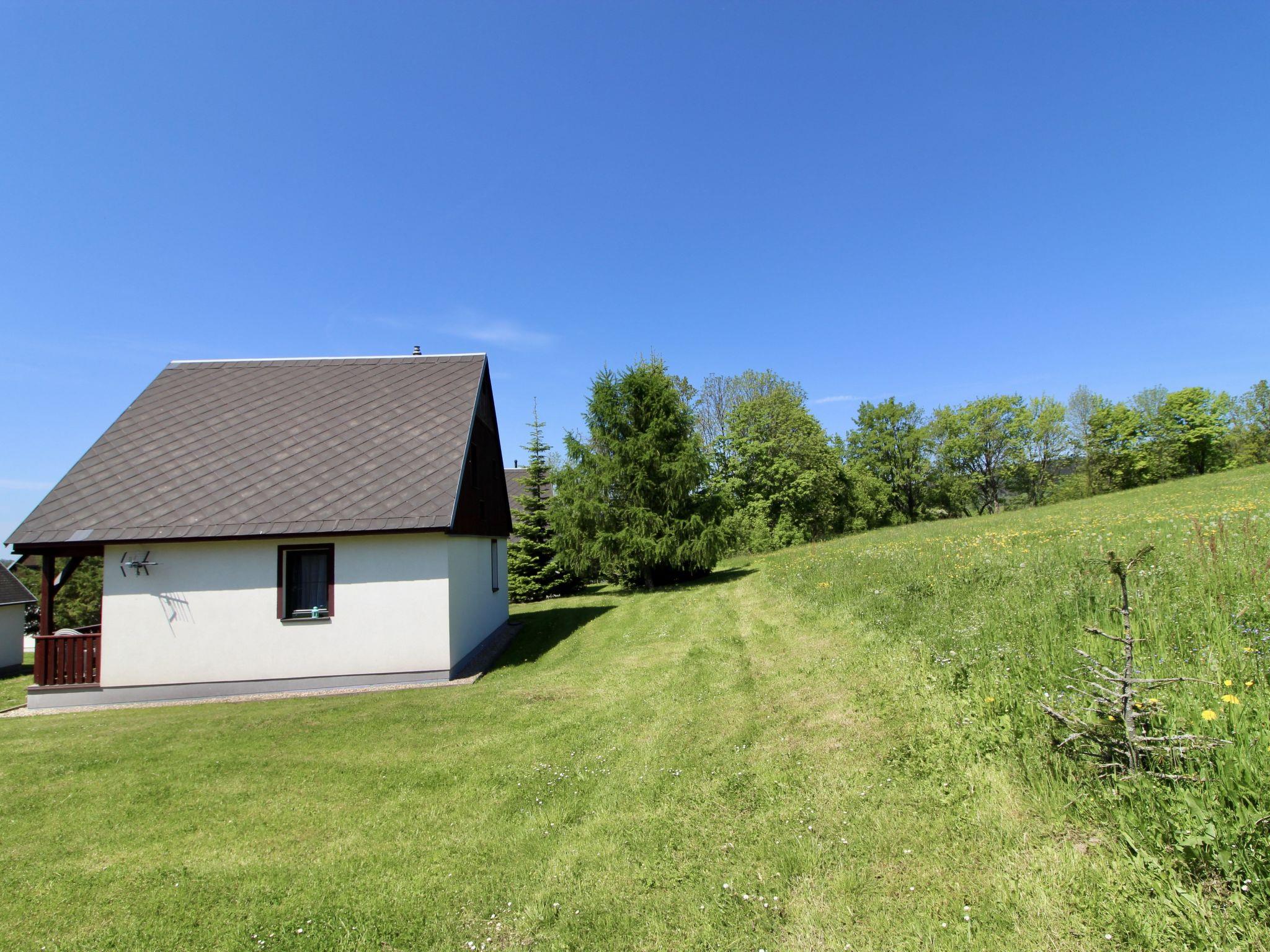 Cistá v Krkonoších 2 km from Cerný Dul: Child friendly, beautiful, comfortable holiday village "Holiday Hill 64", 500 m a.s.l., surrounded by trees and meadows. 43 houses in the resort. On the outskirts, in a secluded, quiet, sunny position, 1.5 km from the lake, 3 km from the skiing area, in the countryside. For shared use: property 6 ha, meadow, swimming pool heated (9 x 4 m, depth 120 cm, seasonal availability: 15.May. - 30.Sep. pool opening hours: 09:00-20:00). Shower/WC in the pool area, table tennis, children's playground (swing, sandbox). In the complex: reception, central heating system. Parking (for 2 cars) at the house. Shop 2.5 km, grocery 2.5 km, supermarket 7.5 km, restaurant 1.6 km, pub garden 400 m, bus stop "Cerný Dul, Cistá-pošta" 400 m, grass beach 1.5 km (small), indoor swimming pool 19 km. Golf course (18 hole) 14 km, tennis 2.5 km, sports centre 2.5 km, walking paths from the house, cycle lane 100 m, ski lift 3 km, chair lift 3 km, slopes 3 km, ski school 3 km, children's ski school 3 km, sled run 7 km, cross country ski track 100 m. Nearby attractions: Janské Lázne Spa 9 km, Vrchlabí 10 km, Aquapark Trutnov 25 km, Zoo Safari Dvur Králové 29 km, Bozkovské jeskyne 37 km, Adršpašské skály 44 km. Well-known ski regions can easily be reached: Cerný Dul 3 km, Herlíkovice 15 km, Pec pod Snežkou 22 km. Well-known lakes can easily be reached: Cistá 1.5 km, Vrchlabí 9 km. Hiking paths: Snežka 25 km.