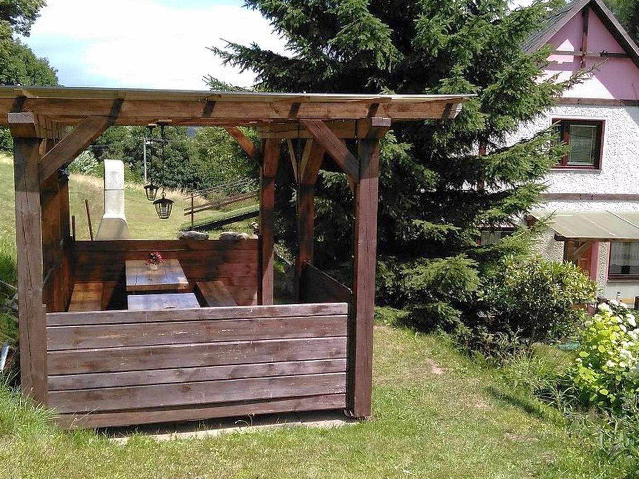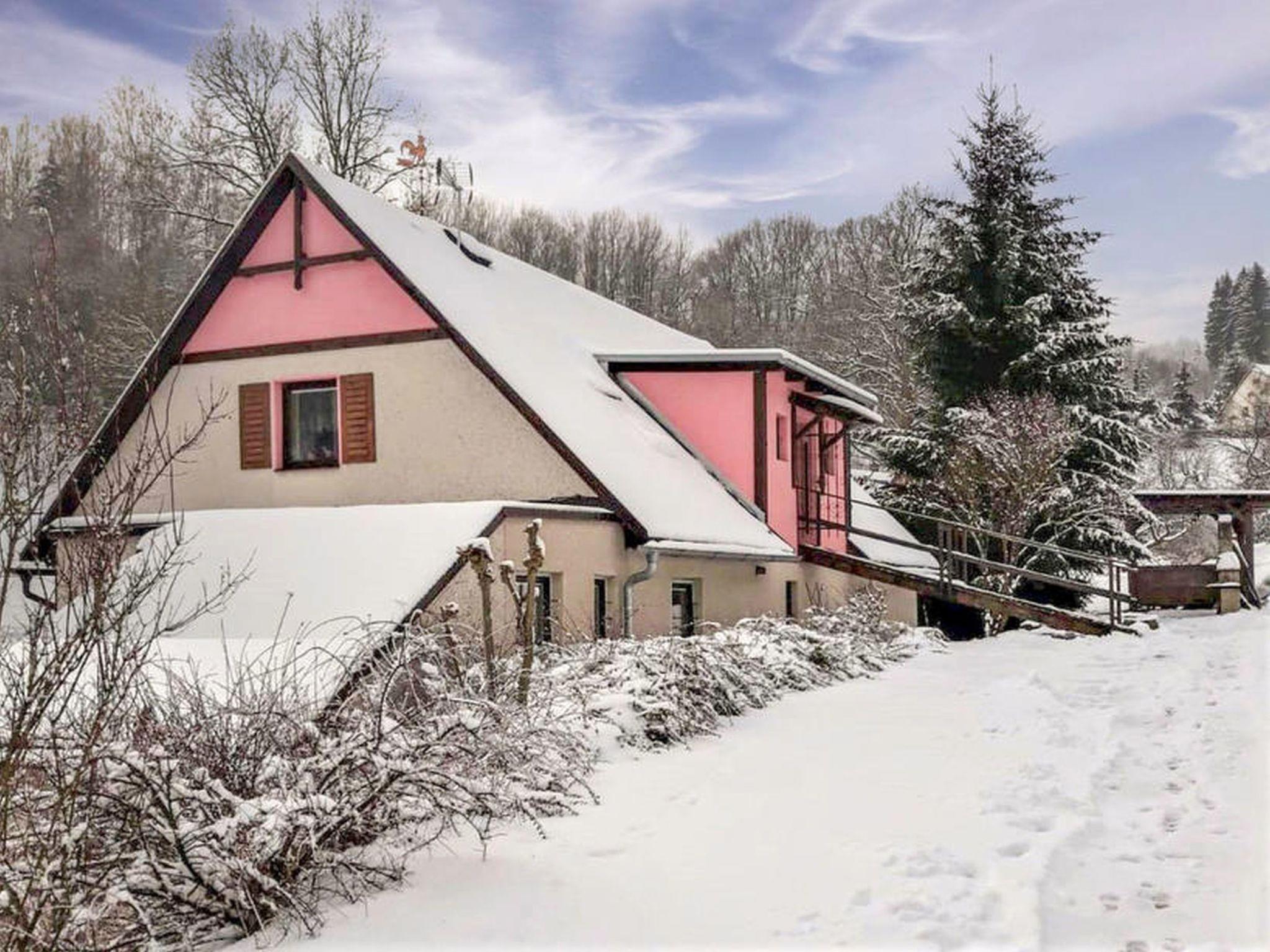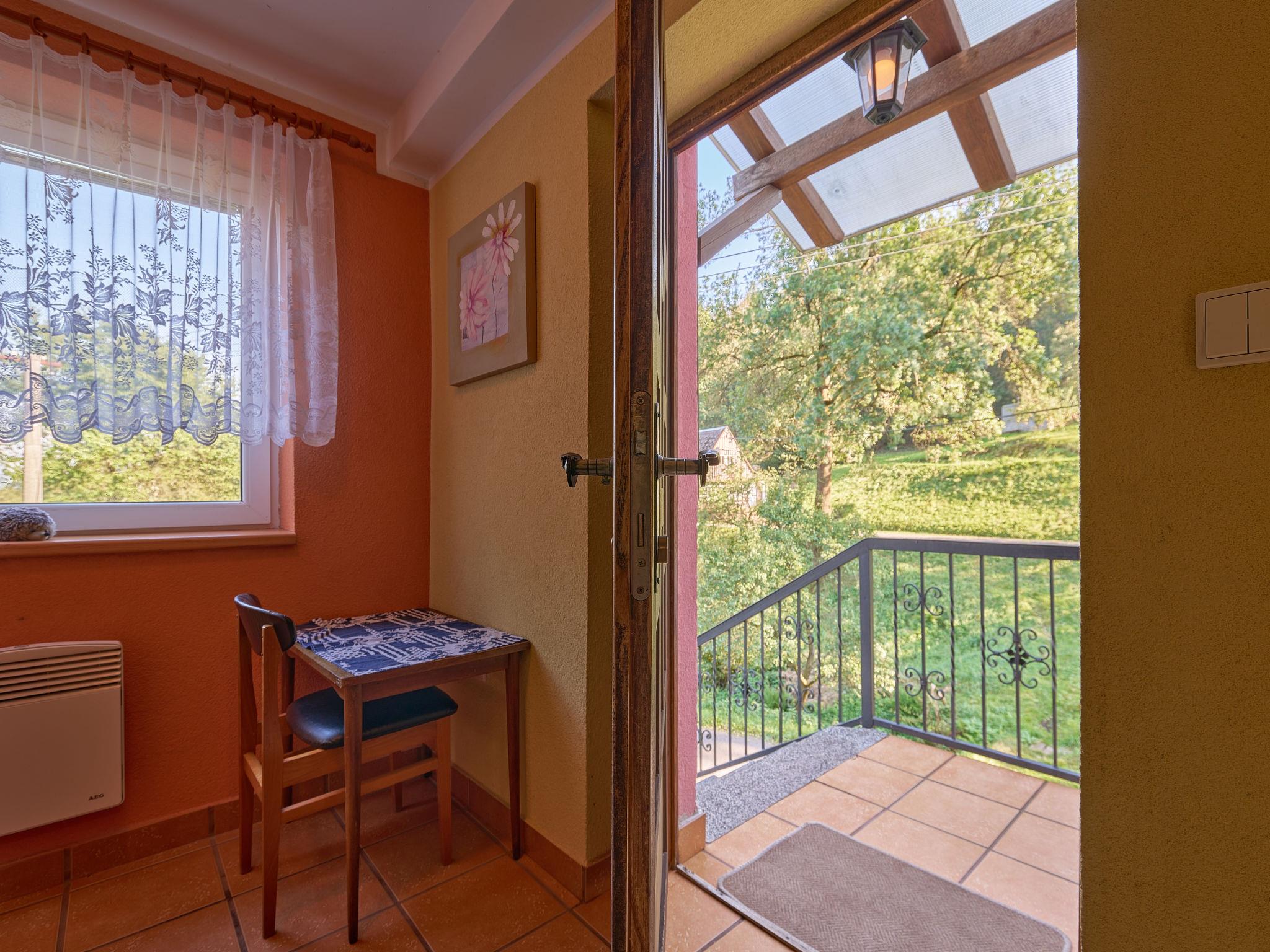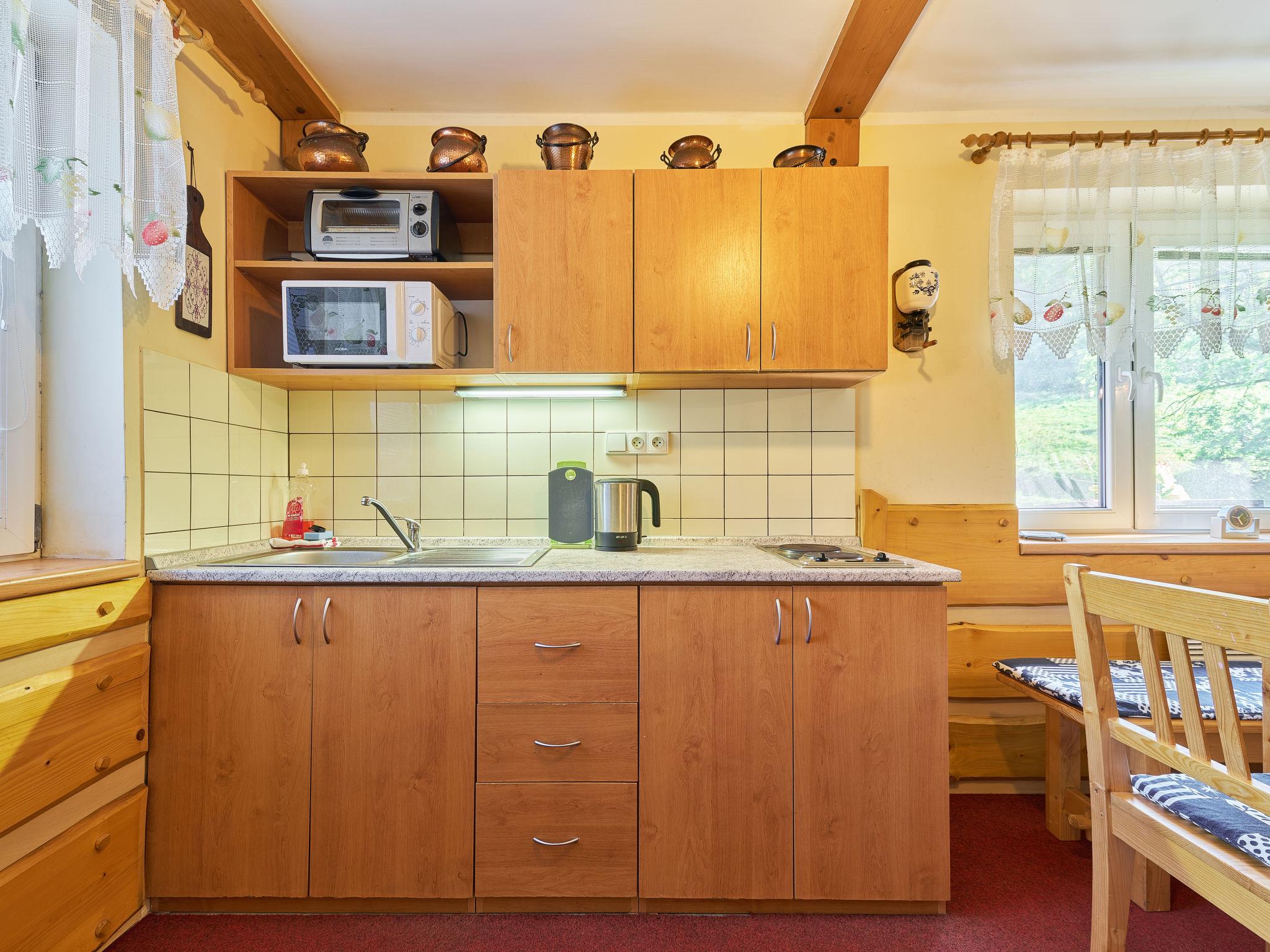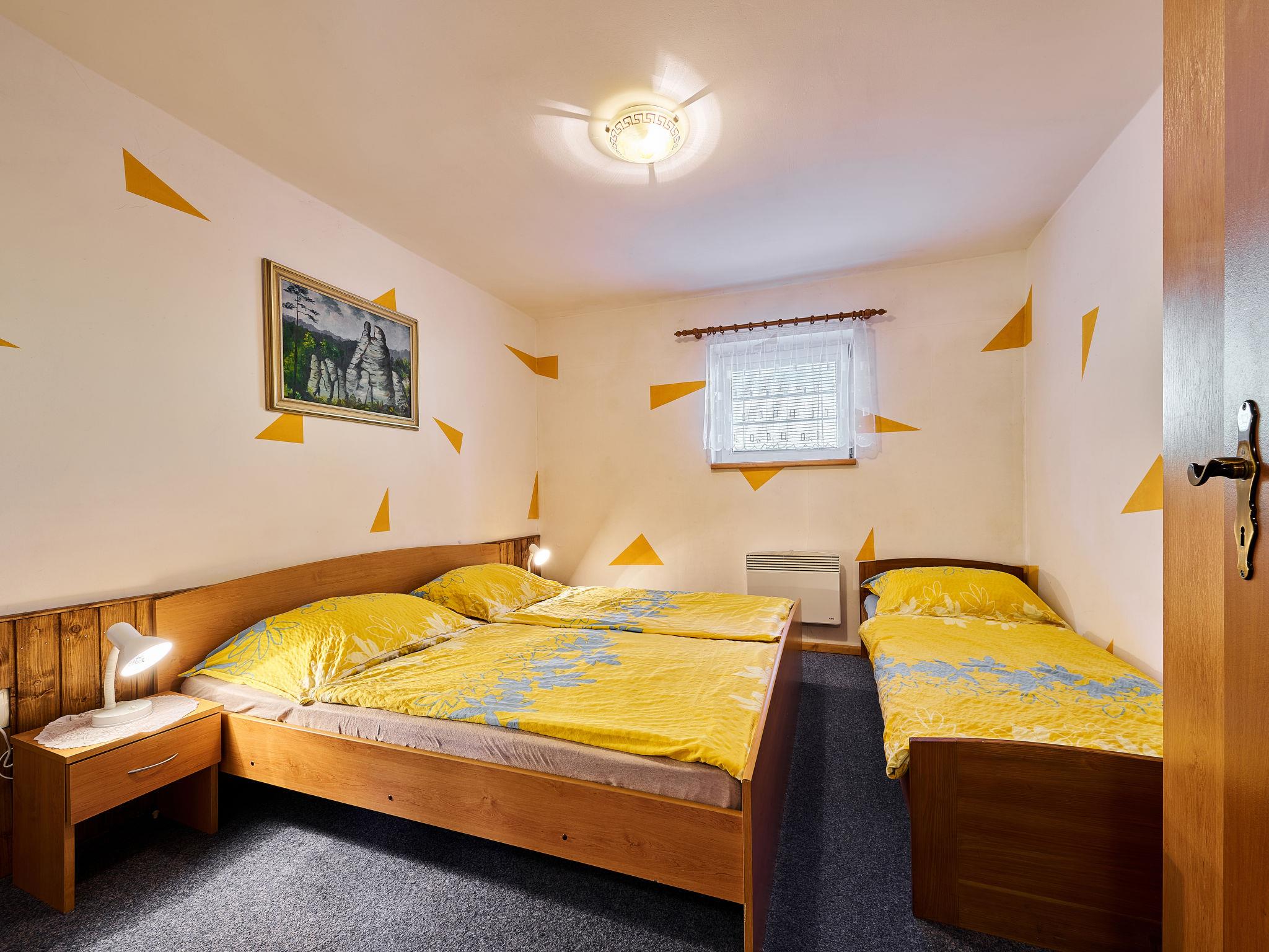 Chlívce 8 km from Hronov: Cosy country house "Chlívce u Hronova", 2 storeys, detached. Outside the resort, in a quiet, elevated position. For shared use: property 1'000 m2, swimming pool round (4,60 m diameter, seasonal availability: 01.Jul. - 31.Aug.). Arbour, garden furniture, barbecue, fireplace, barbecue house, children's playground, parking at the house. Shop 3.5 km, shopping centre 8 km, restaurant 250 m, bus stop "Chlívce" 500 m, railway station "Hronov, Cervený Kostelec" 8 km, outdoor swimming pool 9 km, indoor swimming pool 35 km, natural swimming pond 4 km. Ski lift, slopes 200 m, cross country ski track 10 m. Nearby attractions: Muzeum Aloise Jiráska/Hronov 8 km, Adršpašsko-teplické skály 17 km, Broumovské steny, Náchod 17 km, Ratiborice a Babiccino údolí 20 km, Broumov 28 km, Relaxpark Pec pod Snežkou 50 km. Well-known ski regions can easily be reached: Radvanice 10 km, Petrikovice 16 km, Mladé Buky 34 km, Janské Lázne 40 km. Well-known lakes can easily be reached: vodní nádrž Rozkoš 25 m. Children's house in the garden. It is possible to arrange meals in a private club, which is at a distance of 250 m (on request). This cottage can be rented as a whole house or separately as 4 fully equipped apartments in the low season.