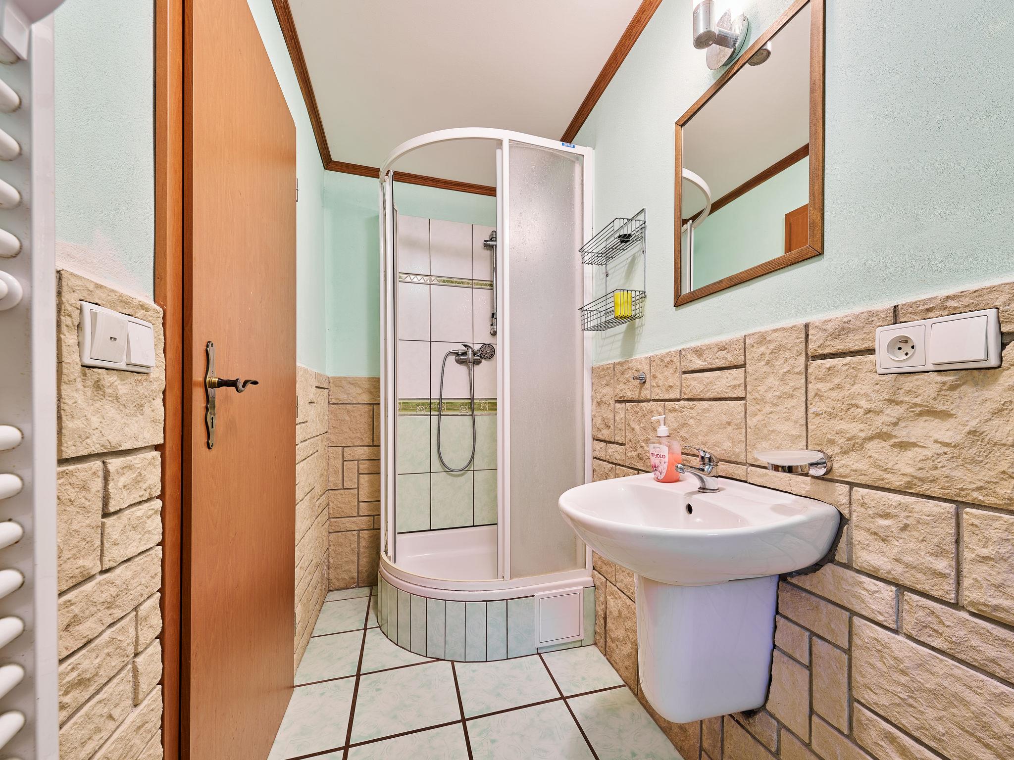Chlívce 8 km from Hronov: Cosy country house "Chlívce u Hronova", 2 storeys, detached. Outside the resort, in a quiet, elevated position. For shared use: property 1'000 m2, swimming pool round (4,60 m diameter, seasonal availability: 01.Jul. - 31.Aug.). Arbour, garden furniture, barbecue, fireplace, barbecue house, children's playground, parking at the house. Shop 3.5 km, shopping centre 8 km, restaurant 250 m, bus stop "Chlívce" 500 m, railway station "Hronov, Cervený Kostelec" 8 km, outdoor swimming pool 9 km, indoor swimming pool 35 km, natural swimming pond 4 km. Ski lift, slopes 200 m, cross country ski track 10 m. Nearby attractions: Muzeum Aloise Jiráska/Hronov 8 km, Adršpašsko-teplické skály 17 km, Broumovské steny, Náchod 17 km, Ratiborice a Babiccino údolí 20 km, Broumov 28 km, Relaxpark Pec pod Snežkou 50 km. Well-known ski regions can easily be reached: Radvanice 10 km, Petrikovice 16 km, Mladé Buky 34 km, Janské Lázne 40 km. Well-known lakes can easily be reached: vodní nádrž Rozkoš 25 m. Children's house in the garden. It is possible to arrange meals in a private club, which is at a distance of 250 m (on request). This cottage can be rented as a whole house or separately as 4 fully equipped apartments in the low season.