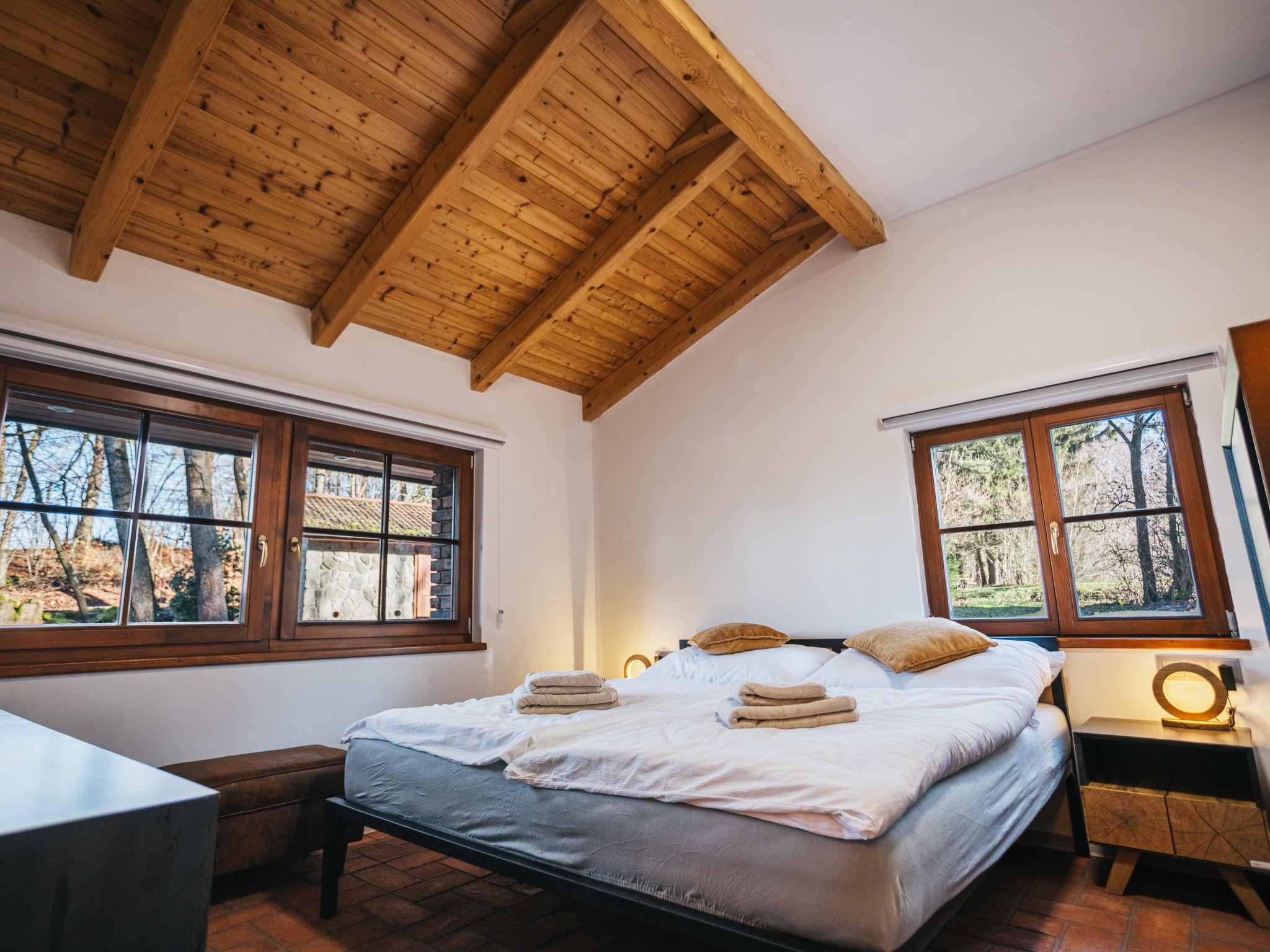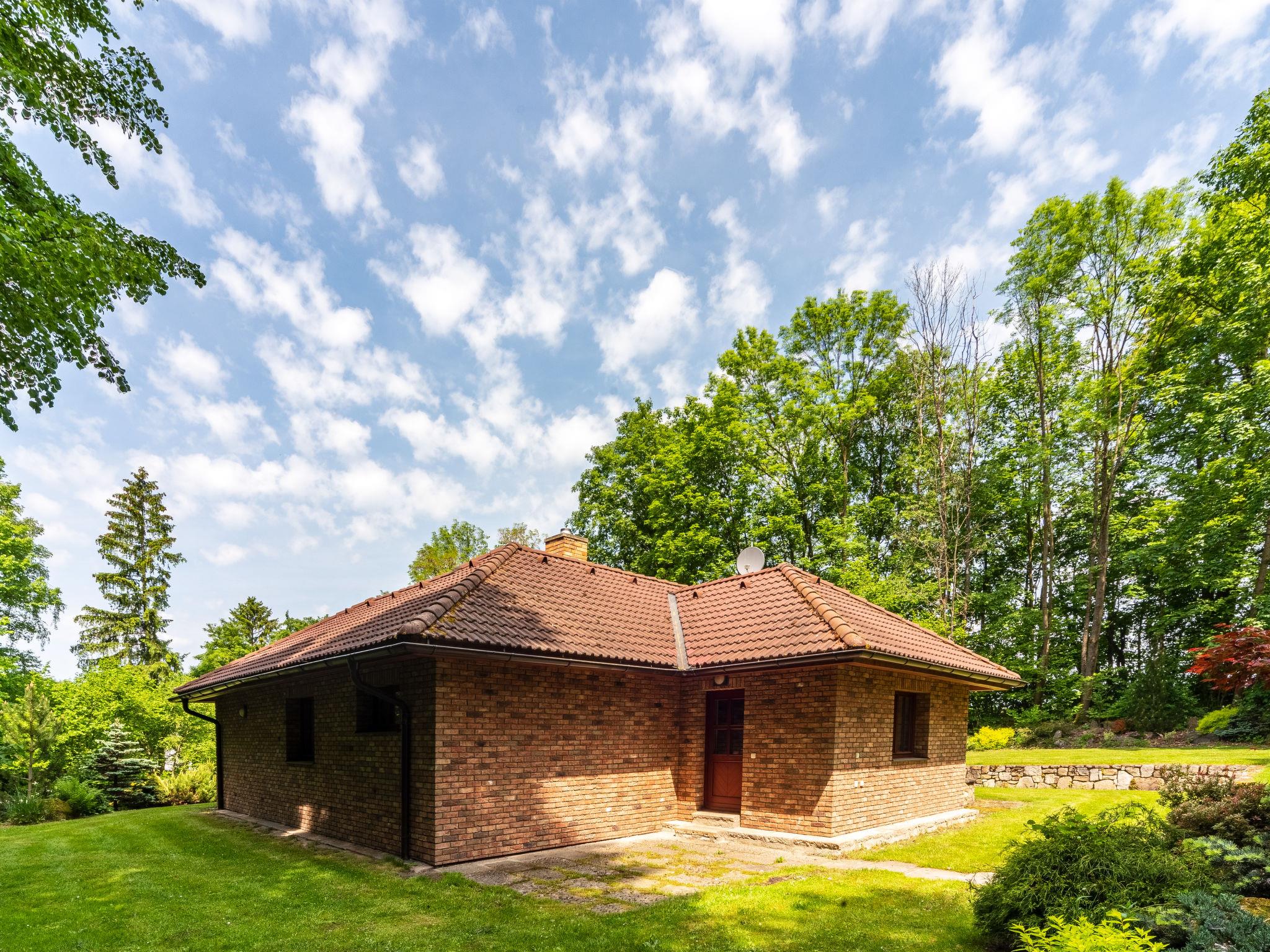 Kunejov 4 km from Clunek: In a beautiful place full of forests, meadows and ponds of the Czech Canada Nature Park, comfortable house "Kunejov", detached. 2 houses in the resort. Property composed of main house and outbuilding, on the outskirts Kunejov, 15 km from the centre of Jindrichuv Hradec, in a quiet, sunny position, 150 m from the edge of the forest, on the lake, in the countryside. Private: property 4'000 m2, swimming pool (6 x 3 m, depth 120 cm, seasonal availability: 01.Jun. - 30.Sep.). Patio, terrace, barbecue. In the complex: storage room for bicycles, central heating system. Parking at the house. Grocery 4 km, restaurant 4 km, bus stop "Kunejov" 400 m, railway station "Nová Bystrice, Senotín" 3.6 km, public bathing area 100 m. Golf course (18 hole) 10 km, walking paths from the house, cycle lane 50 m, children's playground 500 m. Nearby attractions: Kamenný stul 2 km, Památník Járy Cimrmana/Kaproun 6 km, Zámek Nová Bystrice 9 km, Terezín 12 km, Vítkuv Hrádek 12 km, Hrad Landštejn 15 km, Pomezí, Hrad a zámek Jindrichuv Hradec 15 km, Trebon 33 km, Telc 35 km. Well-known ski regions can easily be reached: Hradište u Nové Bystrice 5 km. Well-known lakes can easily be reached: Kacležský, Krvavý, Klikovský rybník 4 km, Ratmírovský rybník 12 km. A SWIMMING POOL WILL BE AVAILABLE FROM MAY 2026.