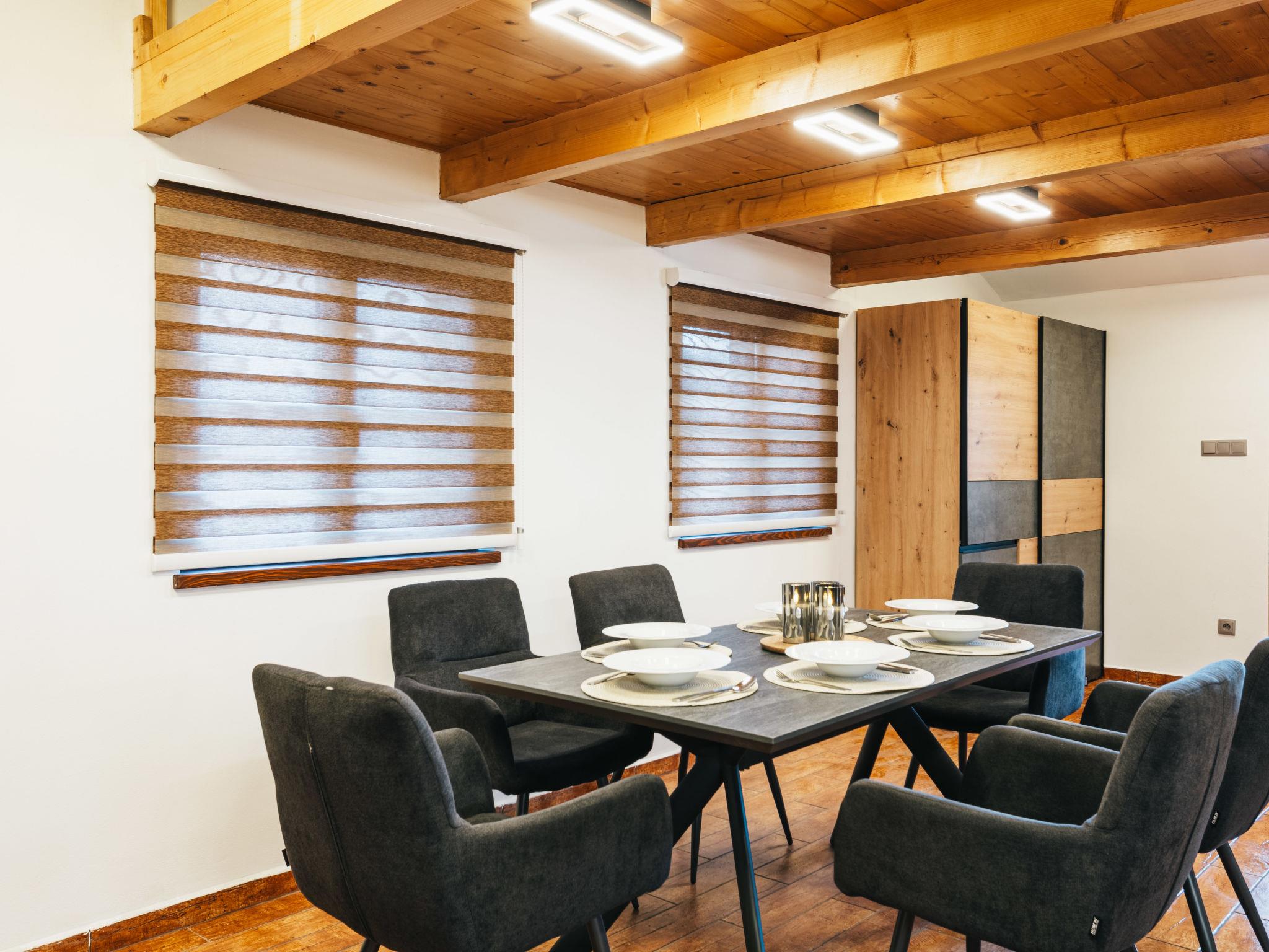 8-room house 225 m2, on the ground floor. Living room with Scandinavian wood stove and satellite TV. Exit to the terrace. 1 room with 1 bed. 1 room with 1 bed. 1 room with 1 double bed (180 cm). 1 room with 1 double bed (120 cm). Kitchen (oven, dishwasher, 4 ceramic glass hob hotplates, toaster, kettle, microwave, electric coffee machine). Sep. WC, bath/shower/WC. On the lower ground floor: living room with panoramic window with 1 double sofabed and TV. 1 room with 1 double bed. 1 room with 2 beds. Exit to the terrace. Kitchenette (oven, dishwasher, 4 induction hot plates, toaster, kettle, microwave, electric coffee machine) with dining table. Shower/WC. 2 terraces. Terrace furniture. Facilities: Internet (WiFi, free). Please note: suitable for families. Non-smoking house. 1 small pet/ dog allowed.