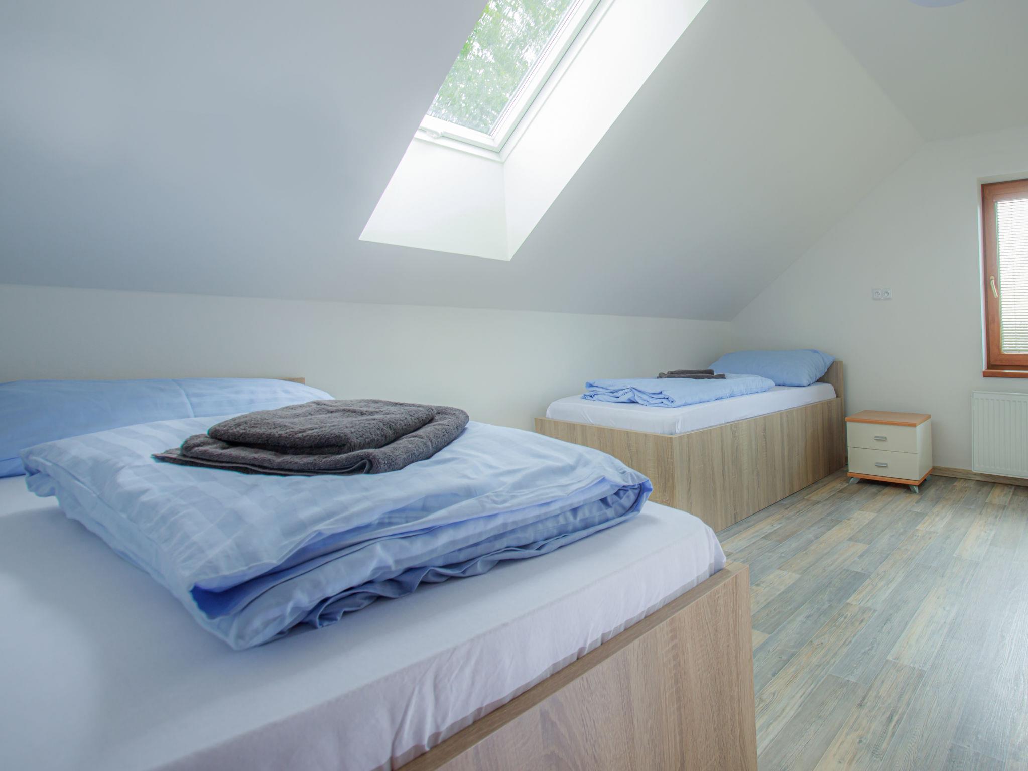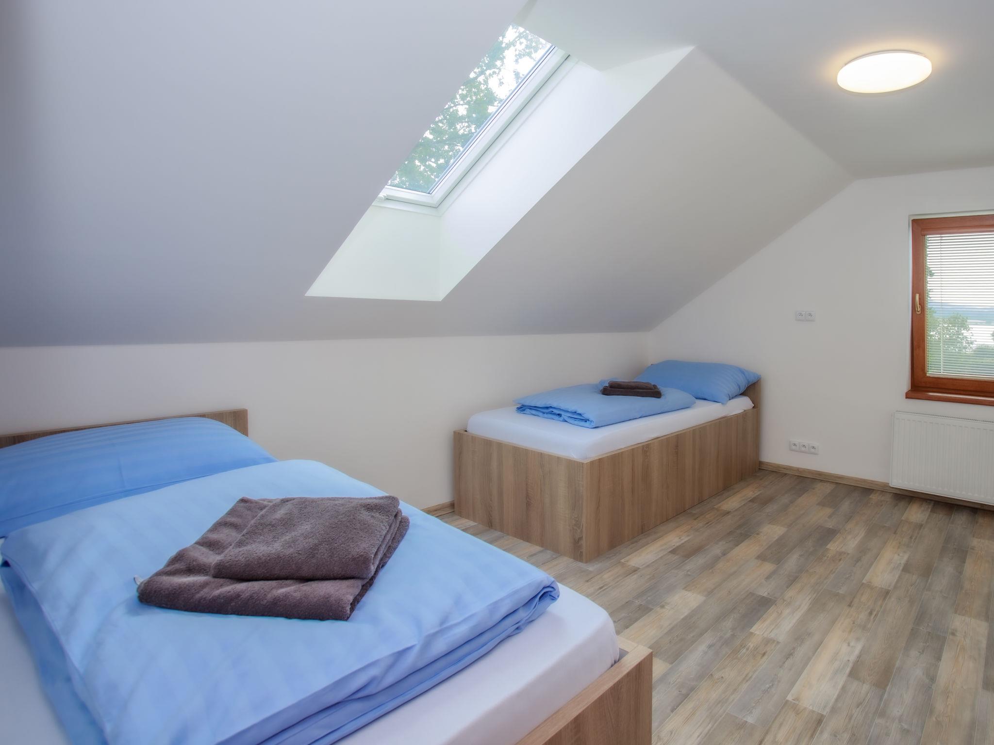In a popular recreation area by the Dehtár pond suitable for swimming and surfing, child friendly, modern cottage "Dehtáre", 2 storeys, detached, built in 2018. Outside the resort, 300 m from the lake, in the countryside. Private: property 100 m2 (fenced). Terrace, garden furniture, barbecue (swing, sandbox). In the complex: storage room for bicycles. Parking on the premises. Grocery 2 km, supermarket 15 km, restaurant 2 km, bus stop "Žabovresky, Dehtáre" 660 m, grass beach 300 m, bathing lake "Dehtár" 300 m. Golf course (18 hole) 13 km, tennis 13 km, riding stable 500 m. Nearby attractions: Holašovice (UNESCO) 10 km, Ceské Budejovice 12 km, Hluboká nad Vltavou, Zámek Kratochvíle 15 km, Dívcí kámen 22 km, Ceský Krumlov, Trebon 35 km, Lipenská prehrada 50 km.