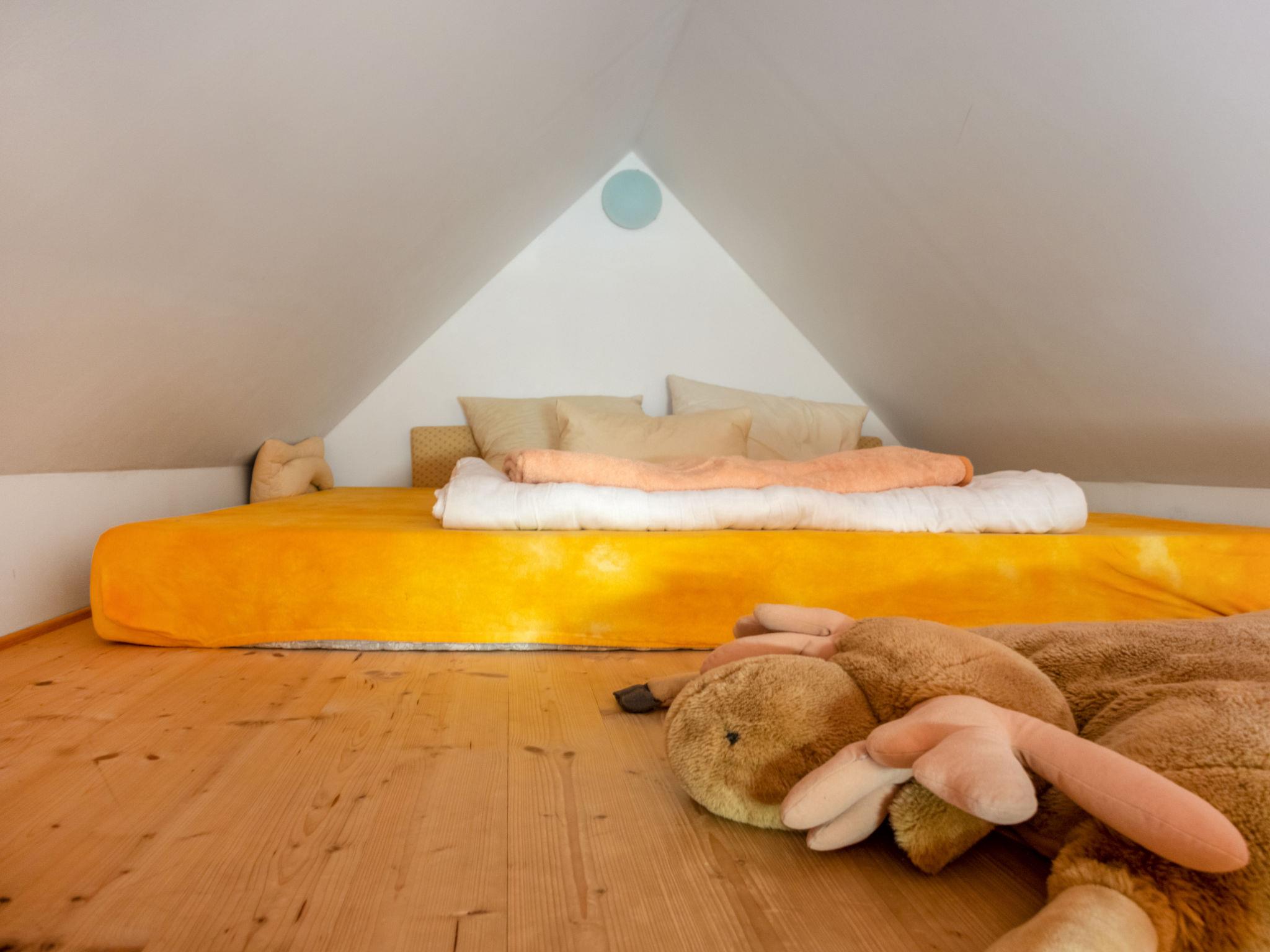 4-room semi-detached house 100 m2 on 3 levels. Renovated in 2006, beautiful and stylish furnishings: living/dining room with dining table, satellite TV and wood-burning stove. Upper floor: living/sleeping room with sloping ceilings with 1 double bed, dining table, satellite TV and air conditioning. Living/sleeping room with 1 double bed, dining table and satellite TV. 1 room with 2 beds and air conditioning. Kitchenette (2 hot plates, toaster, kettle, microwave, electric coffee machine). 2 showers/WC. Electric heating. Top floor: (ladder) gallery with sloping ceilings with 2 sleeping facilities (200 cm, length 240 cm). (ladder) gallery with 2 sleeping facilities (200 cm, length 240 cm). Kitchenette (2 hot plates, toaster, kettle, microwave, electric coffee machine). Patio. Barbecue, box-room. Facilities: washing machine, children's high chair, baby cot. Internet (WiFi, free). Please note: suitable for families. Non-smokers only. Private entrance. Instead of an enclosed bedroom, some sleeping areas are located in an open-plan area (gallery, alcove, etc.).