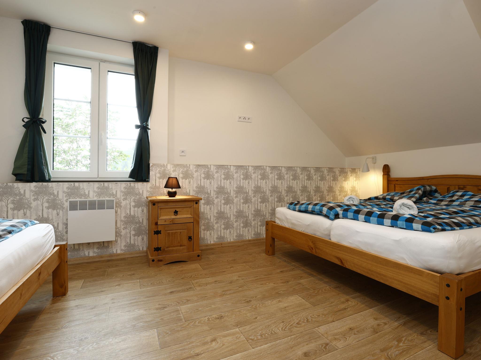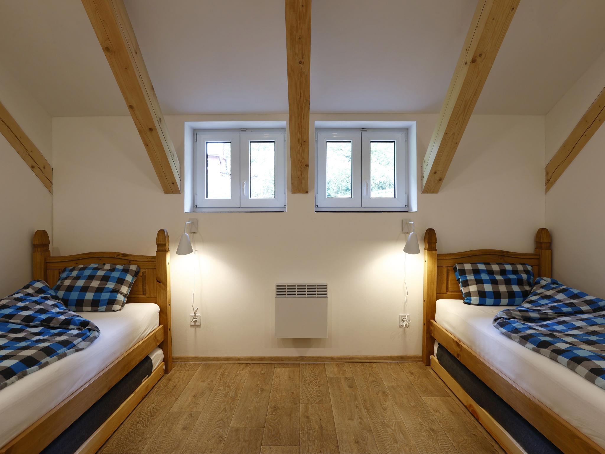 Child friendly, modern apartment block "Pod Mariánskými schody". 10 apartments in the property. 5 km from the skiing area, 100 m from the river. For shared use: property. Garden furniture, barbecue, fireplace, children's playground (slide, sandbox). In the complex: hot tub, table tennis, billiard table, playroom, table football, trampoline, storage room for bicycles, storage room for skis, central heating system, washing machine, ski boot dryer. Parking on the premises, extra. Shop 2 km, supermarket 7 km, restaurant 2.5 km, bar 2.5 km, bakery 2.5 km, bus stop "Desná centrum" 2.5 km, railway station "Desná centrum" 2 km. Walking paths from the house 500 m, ski lift 6 km, ski rental 6 km, ski school 6 km, children's ski school 6 km, cross country ski track. Nearby attractions: Protržená prehrada 6 km, Mariánské schody 400 m, Rozhledna Svetlý vrch 2 km, Skokanské mustky Desná 850 m, Vodopády na Cerné Desné 5 km, Riedlova hrobka Desná 3 km. Well-known ski regions can easily be reached: ski area Albrechtice 6 km, ski area Cerná rícka 6 km, ski area Špicák 7 km. Well-known lakes can easily be reached: prehrada Souš 7.5 km. Hiking paths: Jizerka 16 km, Mariánská hora 2 km. Please note: suitable for families.
