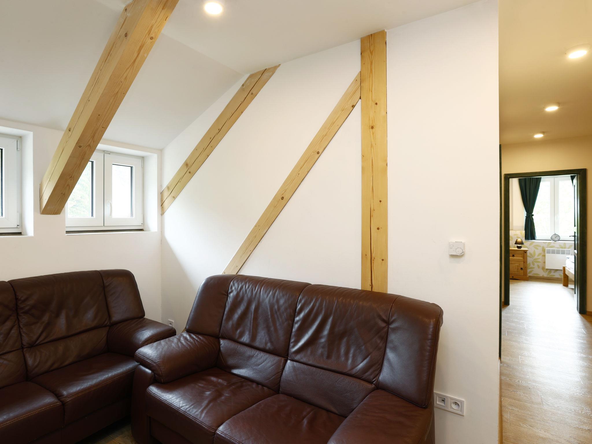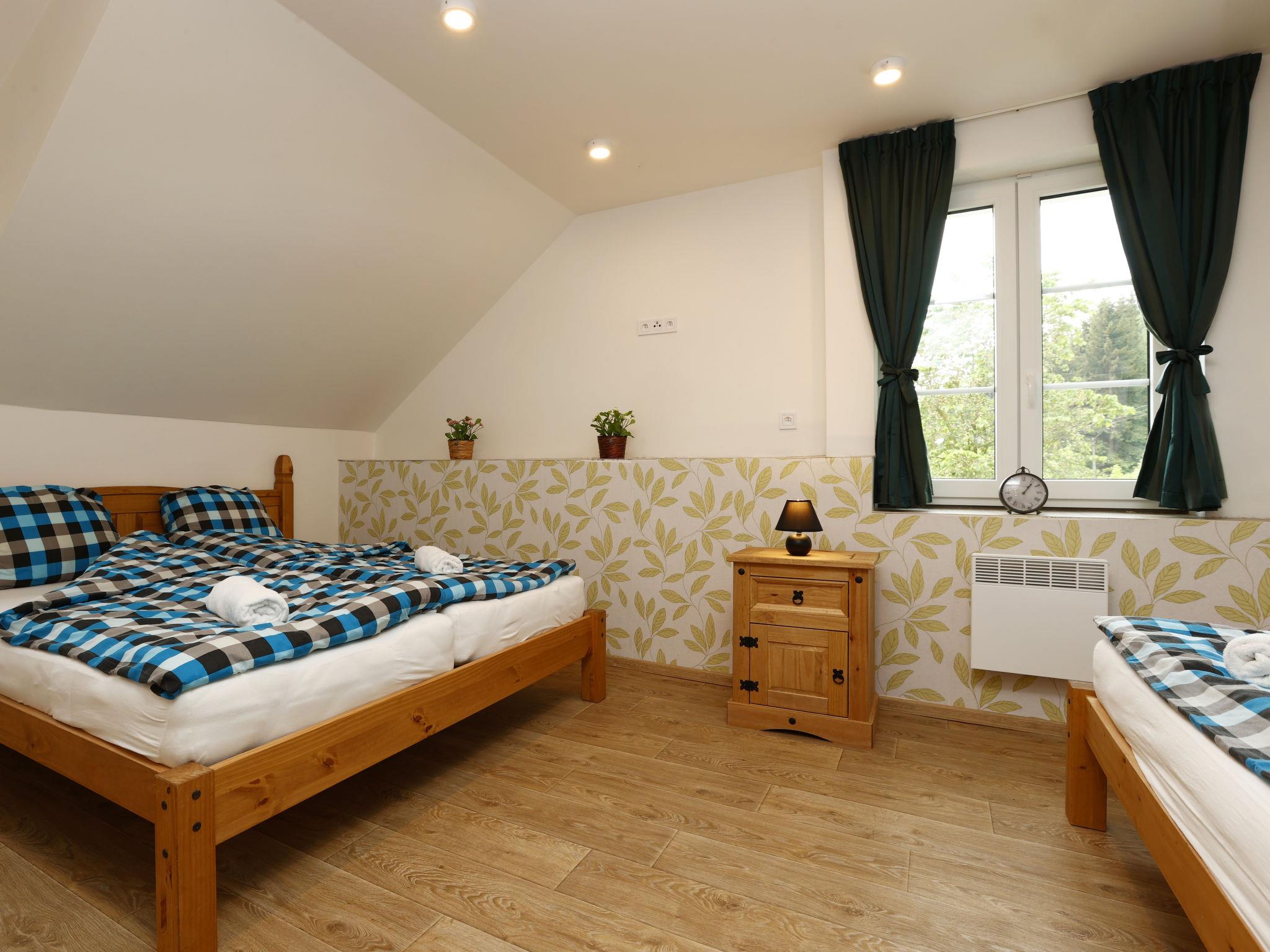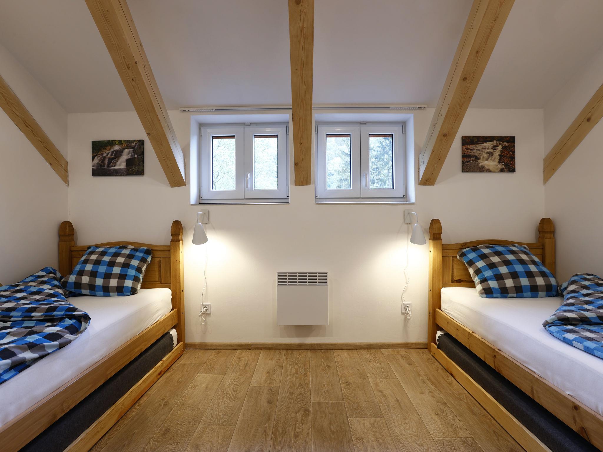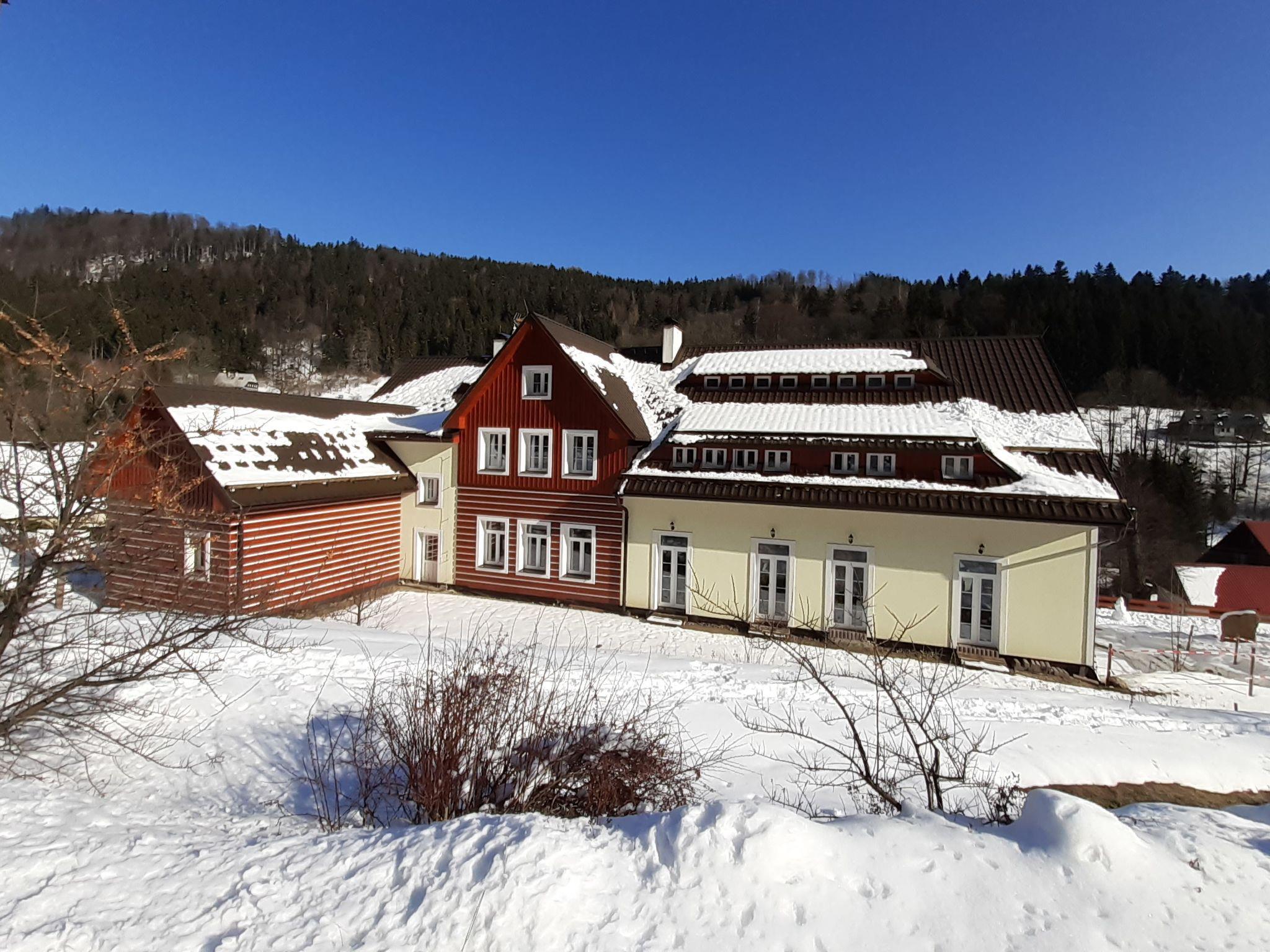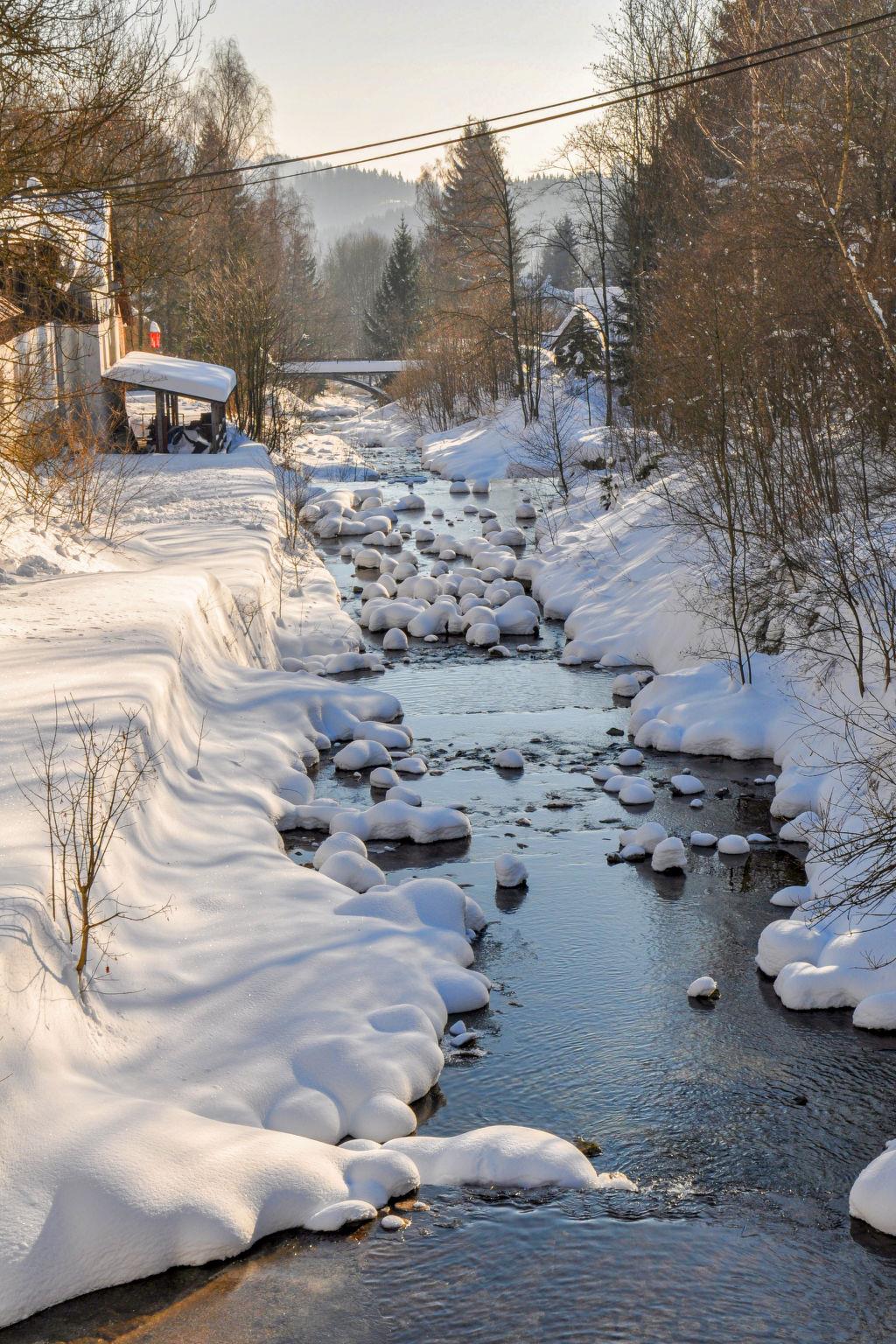 Child friendly, modern apartment block "Pod Mariánskými schody". 10 apartments in the property. 5 km from the skiing area, 100 m from the river. For shared use: property. Garden furniture, barbecue, fireplace, children's playground (slide, sandbox). In the complex: hot tub, table tennis, billiard table, playroom, table football, trampoline, storage room for bicycles, storage room for skis, central heating system, washing machine, ski boot dryer. Parking on the premises, extra. Shop 2 km, supermarket 7 km, restaurant 2.5 km, bar 2.5 km, bakery 2.5 km, bus stop "Desná centrum" 2.5 km, railway station "Desná centrum" 2 km. Walking paths from the house 500 m, ski lift 6 km, ski rental 6 km, ski school 6 km, children's ski school 6 km, cross country ski track. Nearby attractions: Protržená prehrada 6 km, Mariánské schody 400 m, Rozhledna Svetlý vrch 2 km, Skokanské mustky Desná 850 m, Vodopády na Cerné Desné 5 km, Riedlova hrobka Desná 3 km. Well-known ski regions can easily be reached: ski area Albrechtice 6 km, ski area Cerná rícka 6 km, ski area Špicák 7 km. Well-known lakes can easily be reached: prehrada Souš 7.5 km. Hiking paths: Jizerka 16 km, Mariánská hora 2 km. Please note: suitable for families.