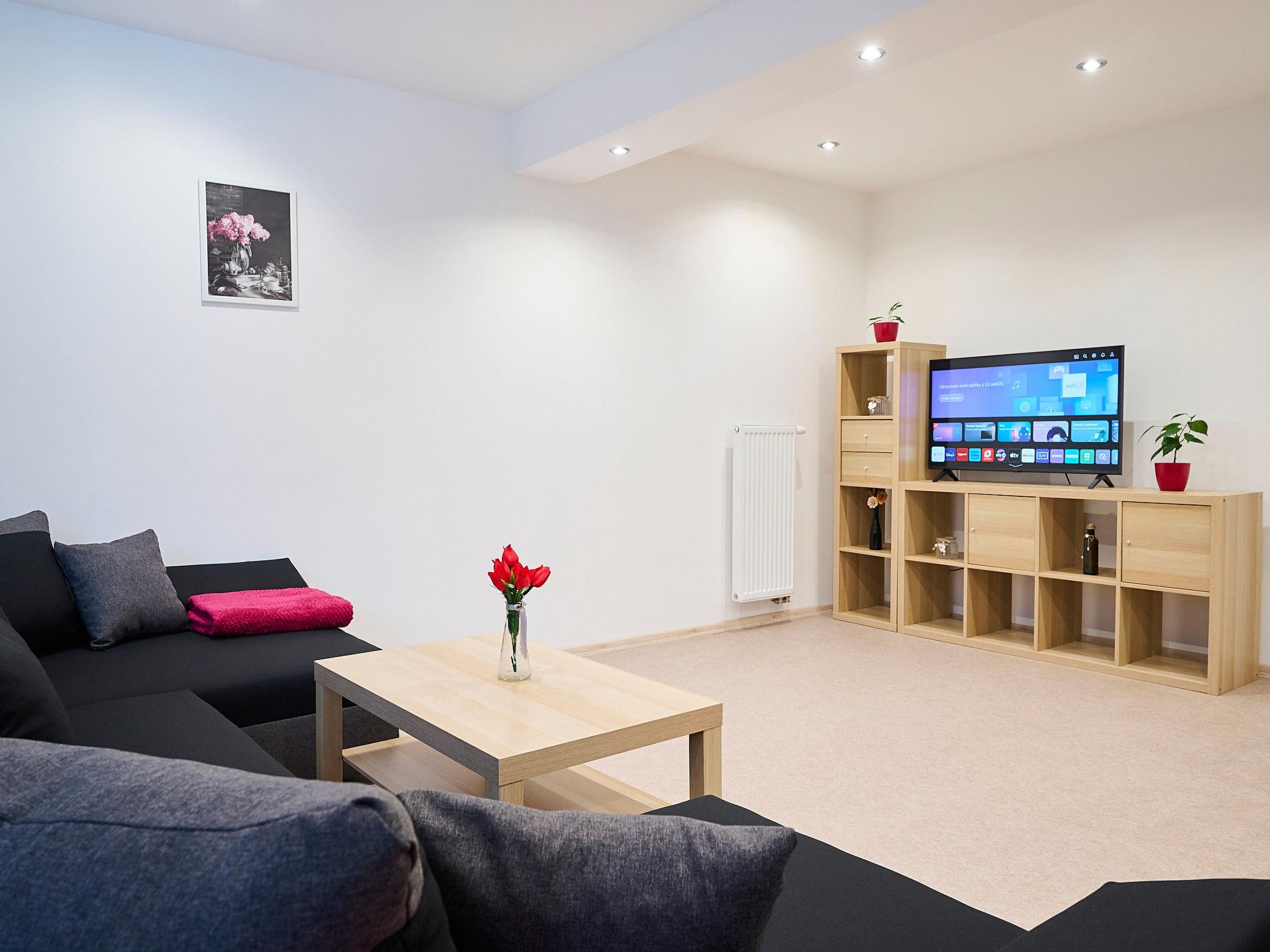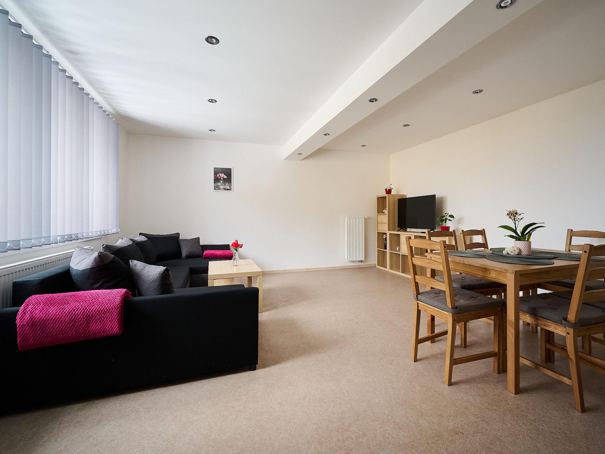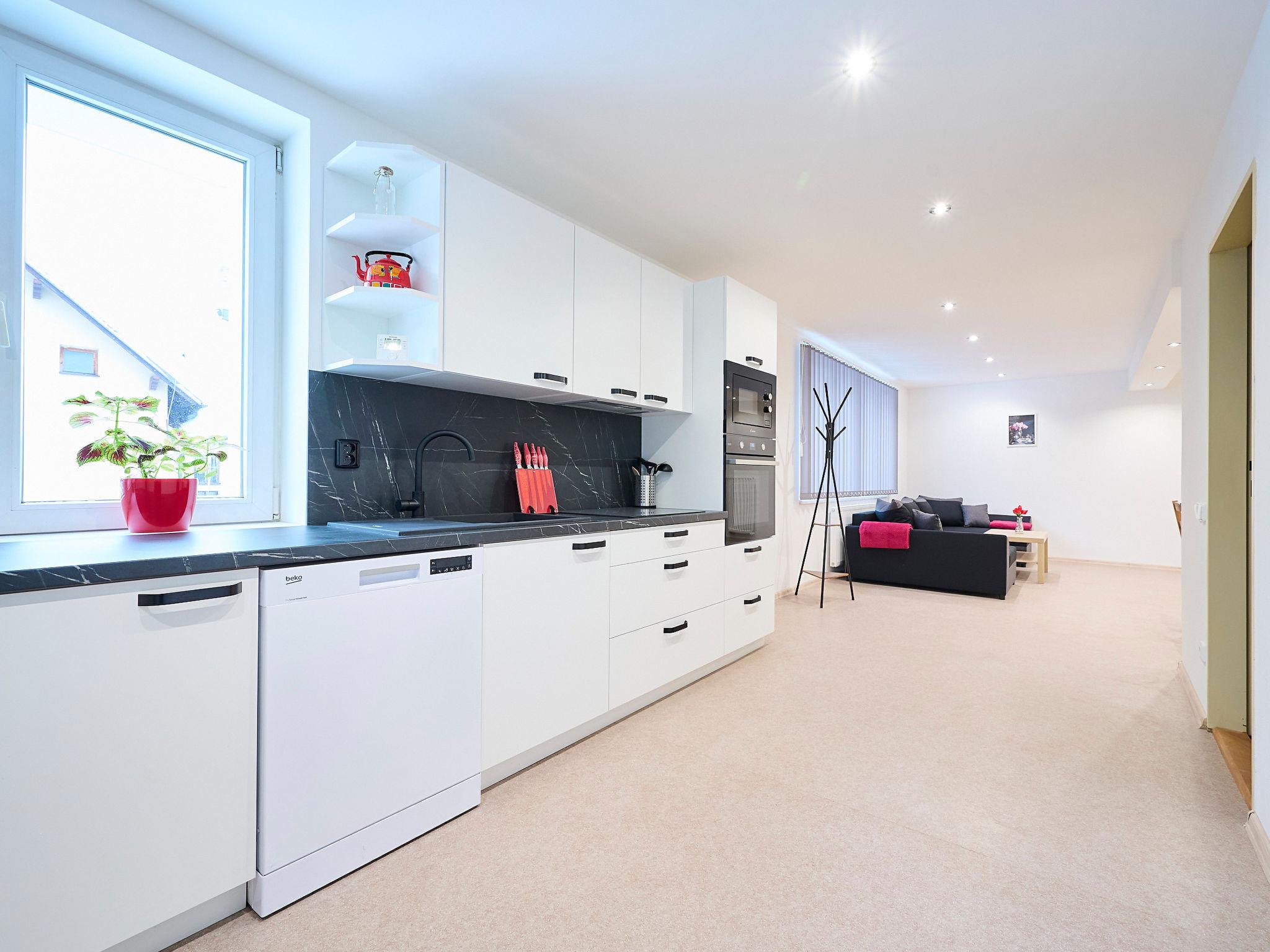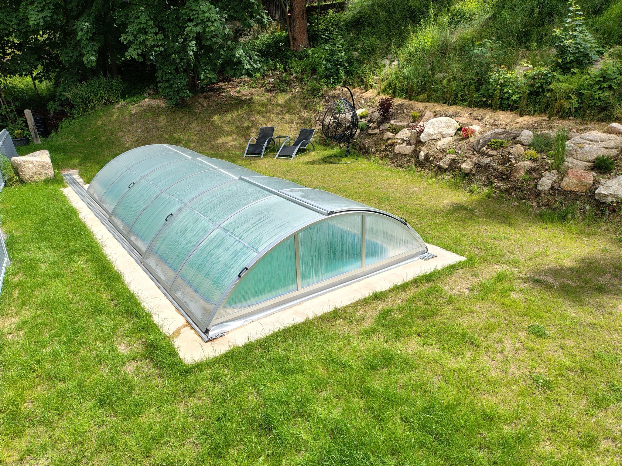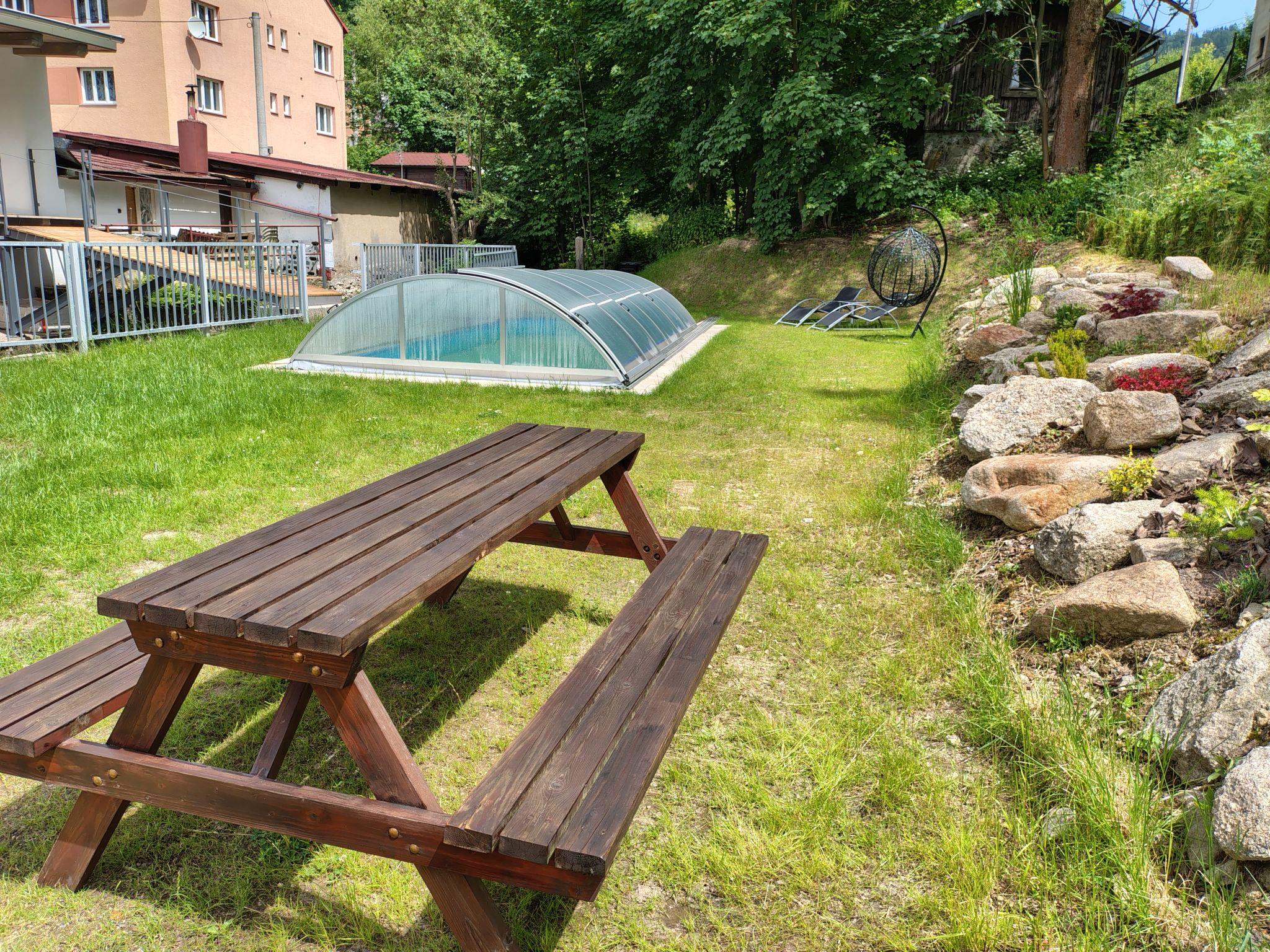 Large, child friendly, modern apartment house "U Dzina", 2 storeys, renovated in 2023. In a sunny position, 2.5 km from the skiing area. For shared use: garden with lawn for sunbathing, swimming pool (7 x 3 m, seasonal availability: 01.Jun. and 30.Sep.) with shutter cover. Boccia, pergola, garden furniture, barbecue, children's playground. In the complex: billiard table, playroom, table football, boutique, kiosk, storage room for bicycles, sun terrace, roof terrace, storage room for skis. Parking (for 7 cars). Supermarket 1.7 km, restaurant 1.5 km, bar, café 10 m, bus stop "Desná Sklár" 550 m, railway station "Dolní Polubný" 550 m. Golf course (9 hole) 15 km, minigolf 6 km, ski lift 2.5 km, ski rental 2.5 km, ski school 2.5 km, cross country ski track 6 km. Nearby attractions: vodopády na Cerné Desné 6 km, Štepánka 6.5 km, Svetlá 5 km, vodopády Mumlava 15 km, Giganteria Piechowice(Pl) 33 km, Bežecký lyžarský areál Jakuszyce(Pl) 15 km. Well-known ski regions can easily be reached: Cerná Rícka 2.5 km, U Cápa 6 km, Tanvaldský Špicák 7 km. Hiking paths: Jizerka 10 km, protržená prehrada 13 km. Please note: suitable for families.
