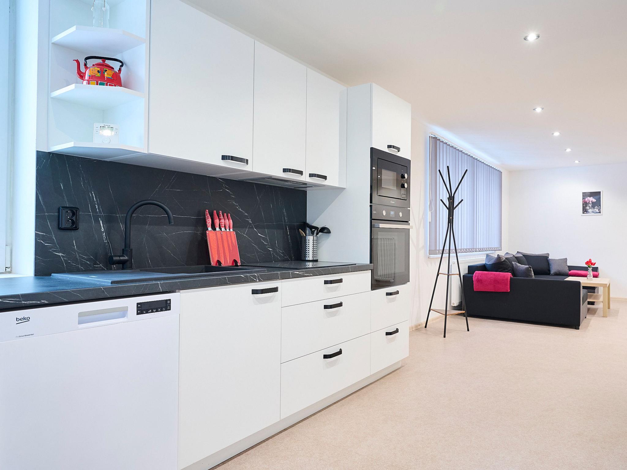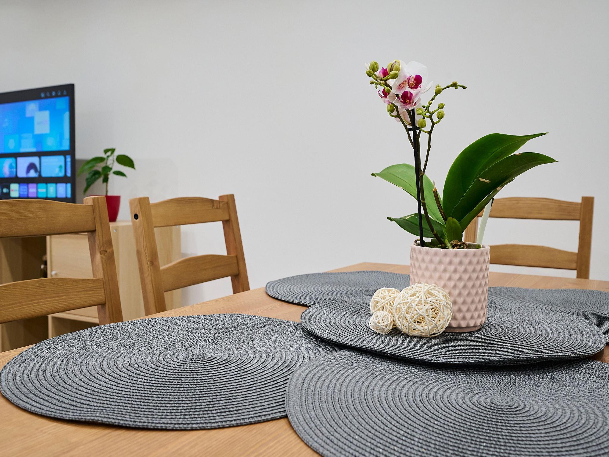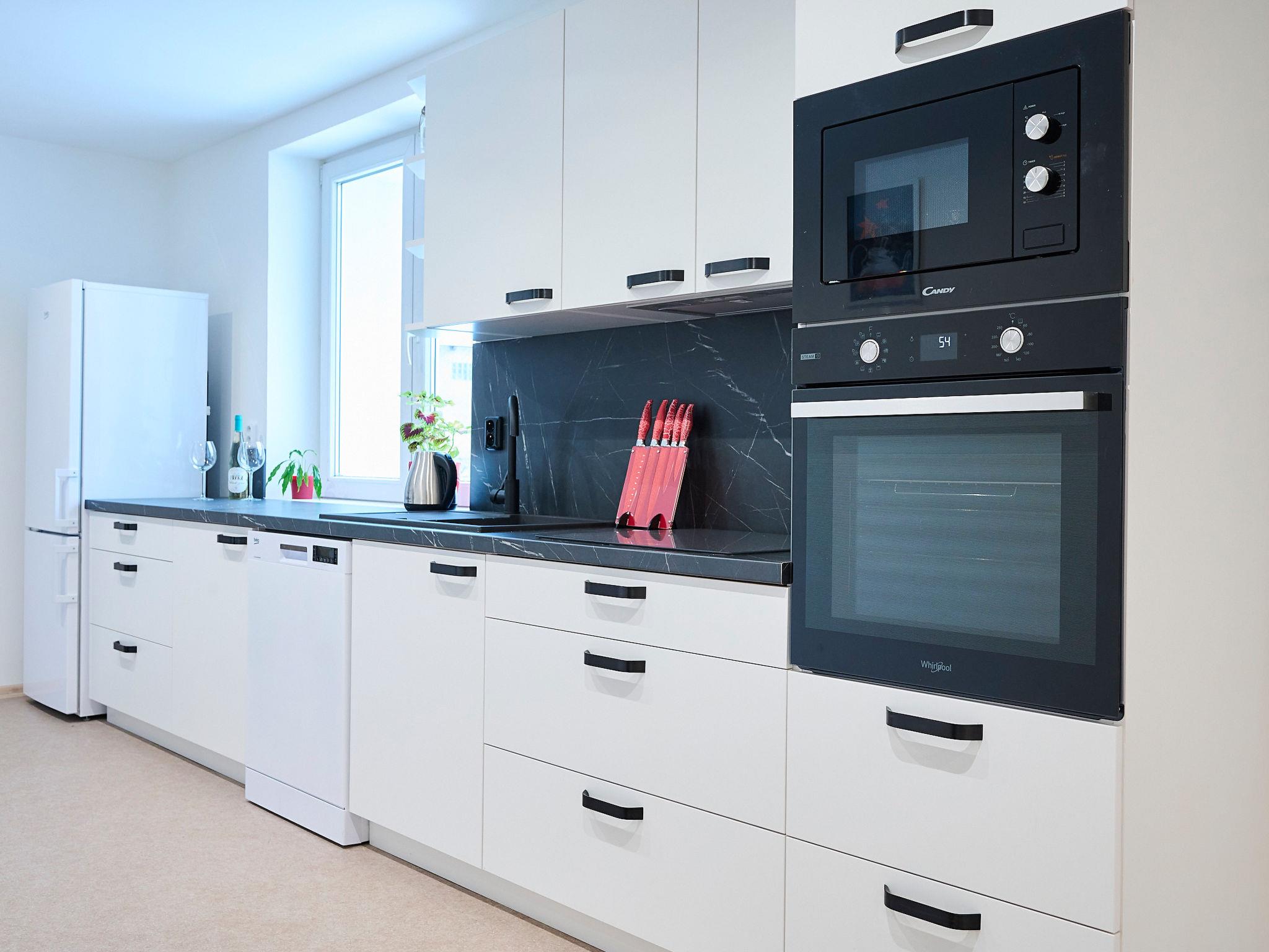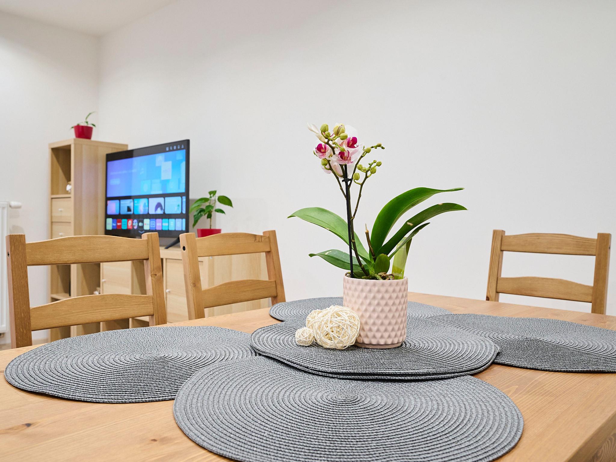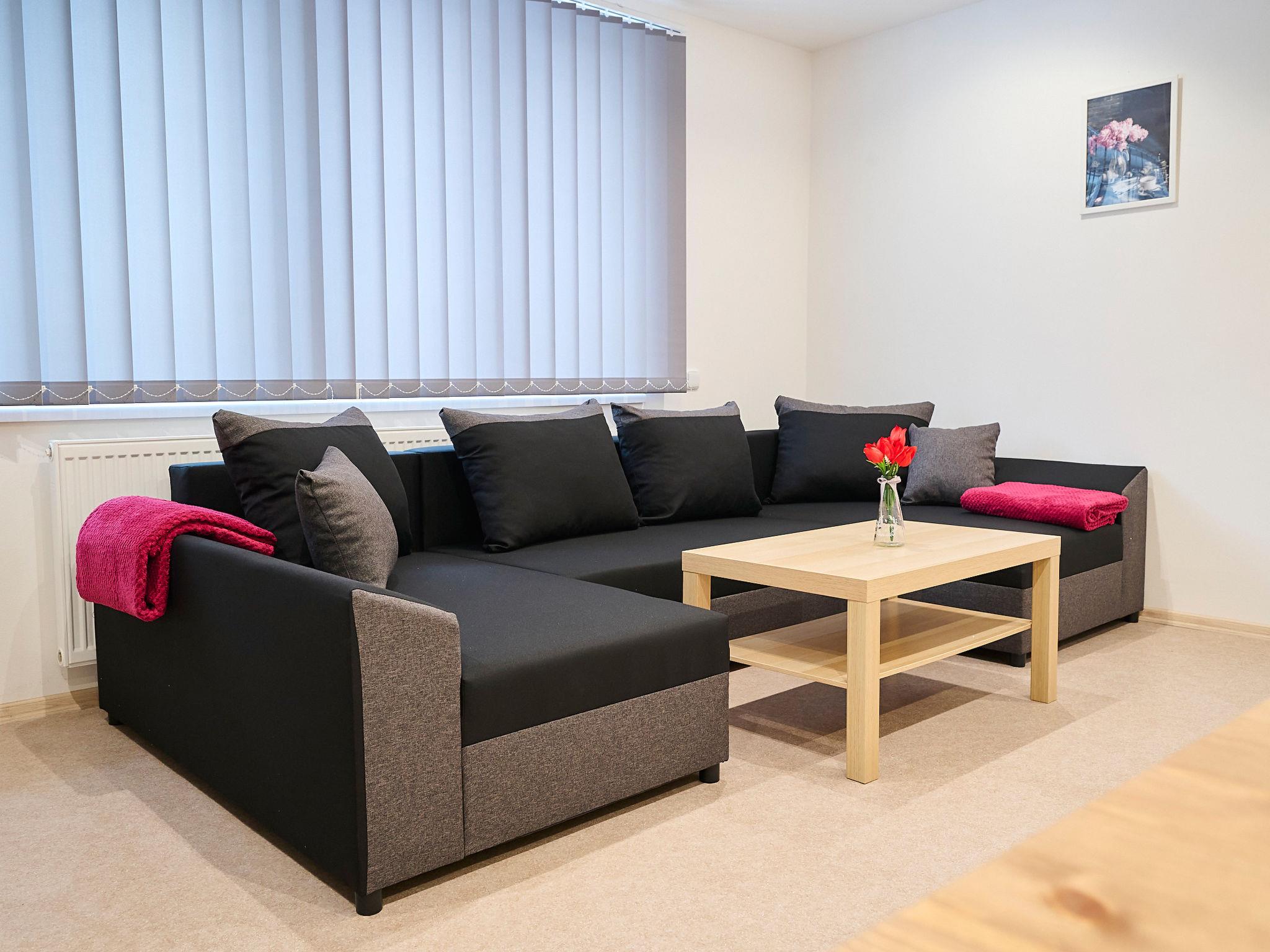 2-room apartment 100 m2 on 1st floor. Object suitable for 2 adults + 2 children. Very beautiful and modern furnishings: large living/dining room with dining table and TV. 1 room with 1 x 1 bunk beds, 1 double bed. Large kitchen (oven, dishwasher, 4 ceramic glass hob hotplates, kettle, microwave, freezer). Shower, sep. WC. Heating. Box-room. Facilities: Internet (WiFi). Parking. Please note: suitable for families. Non-smokers only.