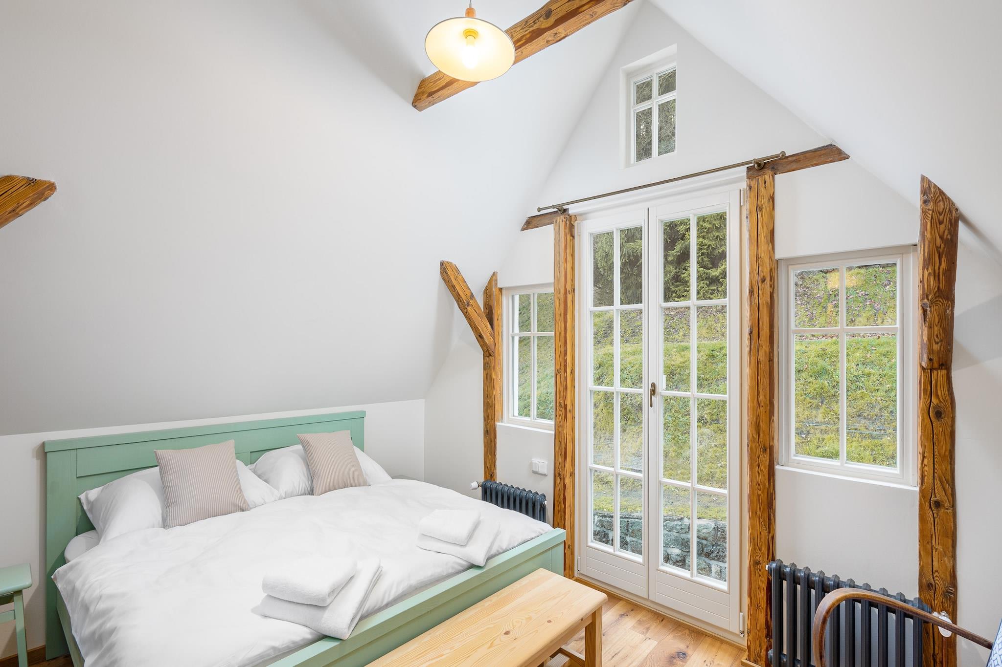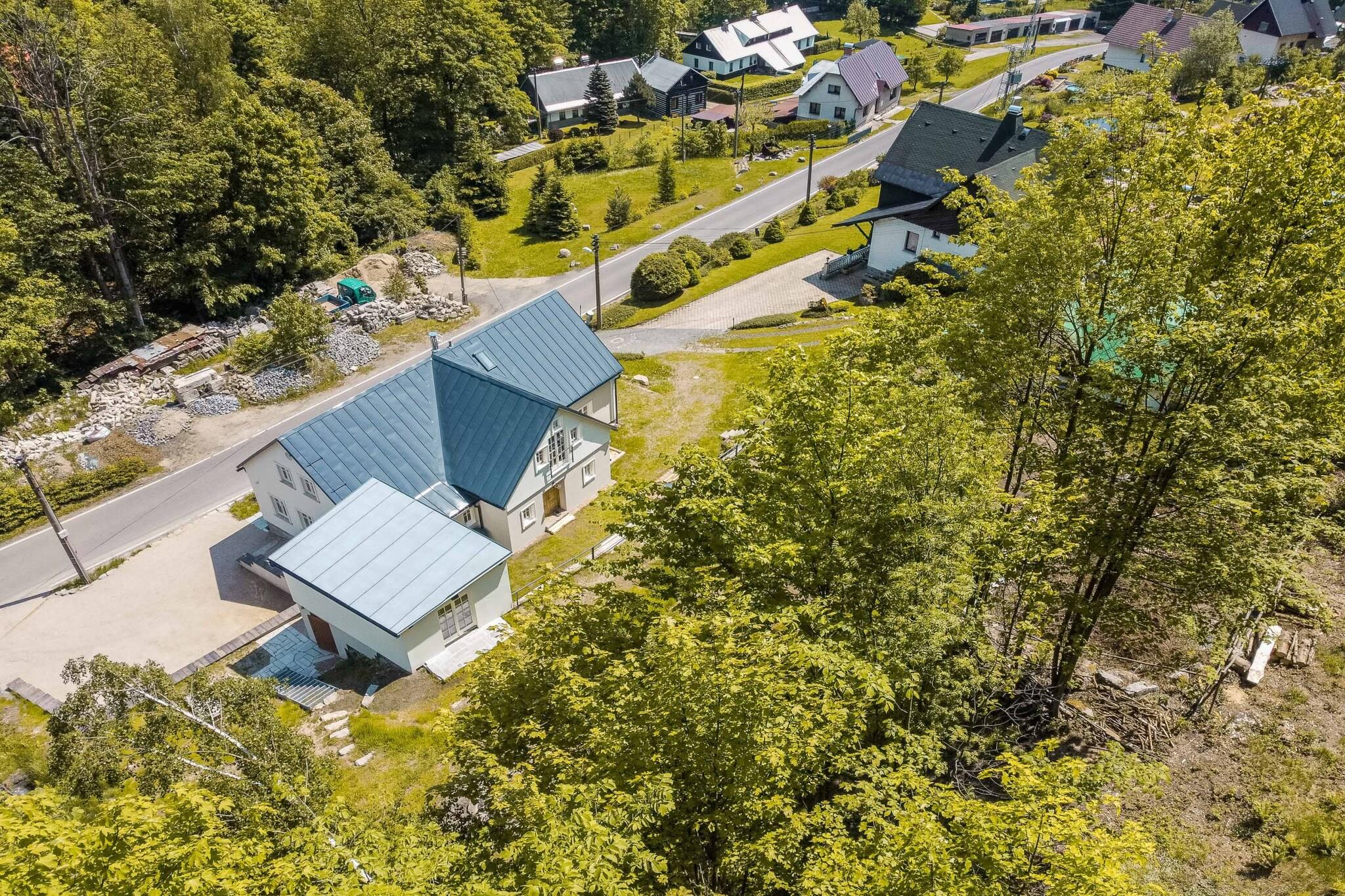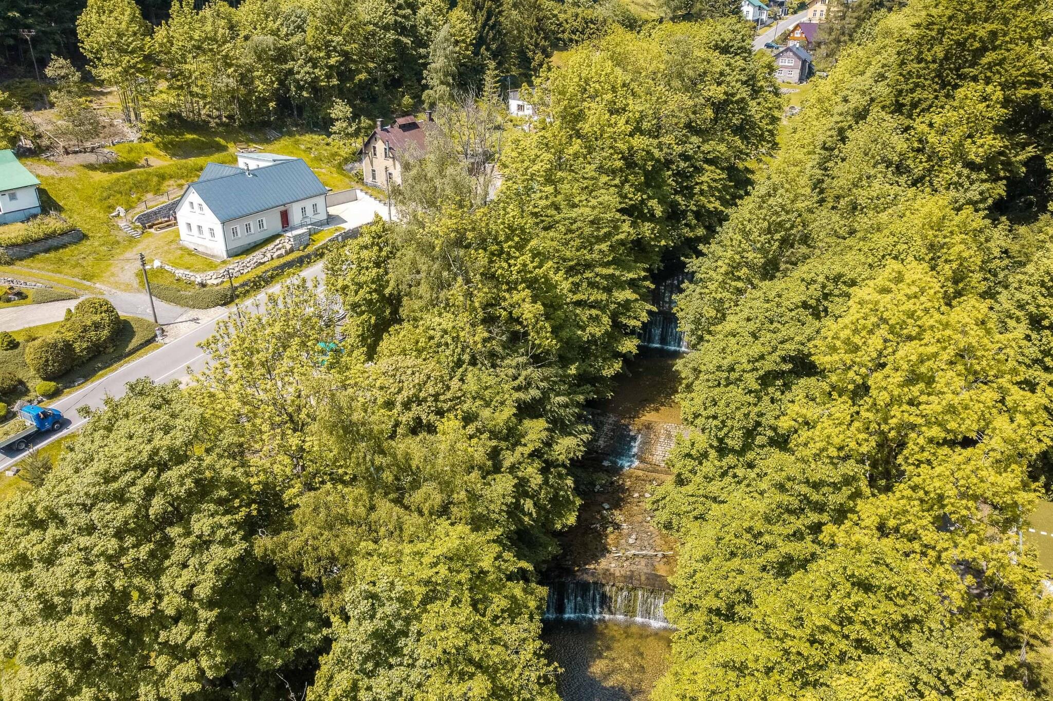 Dette charmerende traditionelle sommerhus, beliggende i hjertet af Jizera-bjergene, er perfekt til familier, vennegrupper og sportsentusiaster. Sommerhuset kan rumme op til 8 voksne og 6 børn, med værelser med dobbeltsenge og enkeltsenge, ideelt til familier eller små grupper. Nyd et fredeligt tilflugtssted omgivet af natur, uden distraktioner fra et fjernsyn, men med pålidelig WiFi. For ekstra luksus tilbyder vinkælderen et udvalg af økologiske tjekkiske vine og regionale produkter. Det omkringliggende område er perfekt til udendørs eventyr. Hytten ligger kun 2 km fra Jizerská magistrála, en populær langrendsrute, og kun 4 km fra skisportsstedet Tanvaldský Špicák. I de varmere måneder kan gæsterne nyde vandre- og cykelruter med Protržená-dæmningen 5 km derfra og den maleriske landsby Jizerka 10 km derfra. Sommerhuset er omgivet af en terrasseret have, der passer perfekt sammen med skoven, og en å løber foran, perfekt til en forfriskende dukkert. Indenfor byder hytten på et luksuriøst opholdskøkken, et legeområde for børn med brætspil og legetøj samt et wellnessområde med finsk sauna til 8 personer. Afslapningsmulighederne omfatter også en massageservice mod et tillægsgebyr. For dem med elektriske køretøjer er der en 11 kW oplader tilgængelig mod et gebyr. Ud over hovedhuset er en stilfuld duplex lejlighed til to personer tilgængelig i lavsæsonen, der tilbyder et privat køkken og badeværelse, ideel til par, der søger privatliv og komfort.