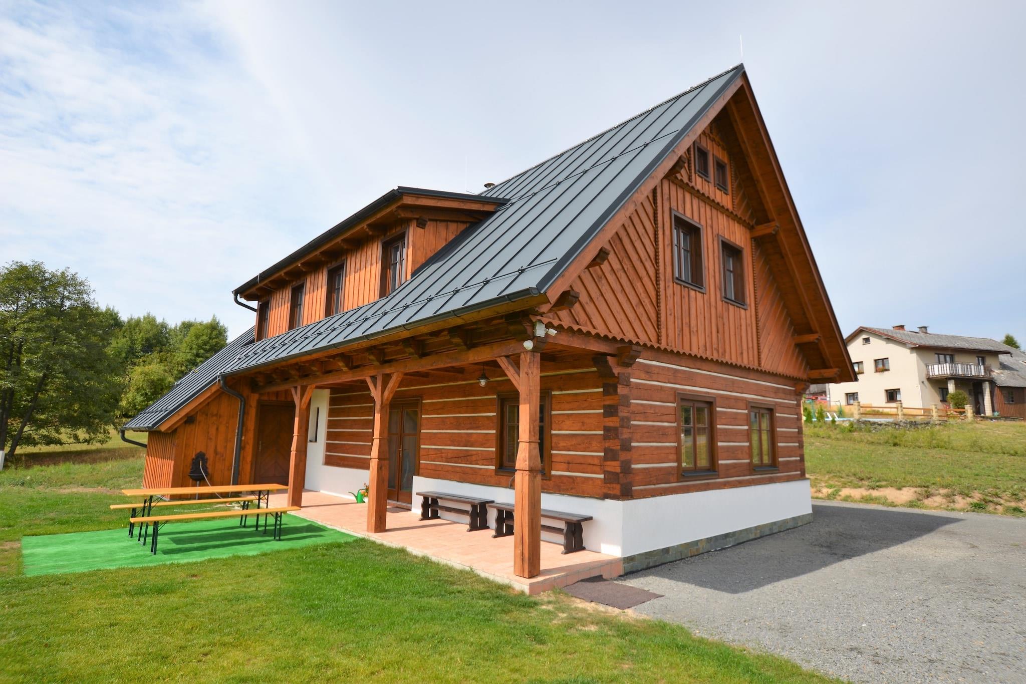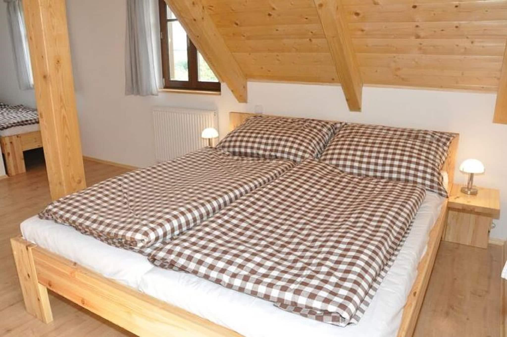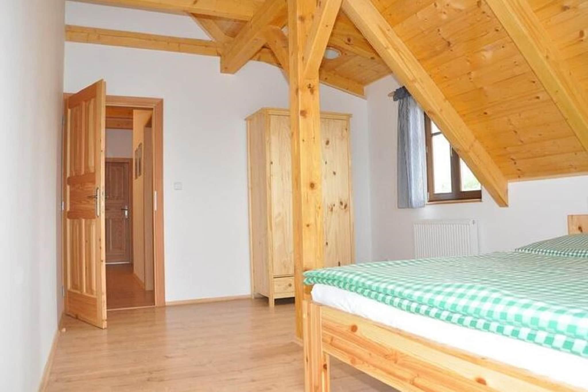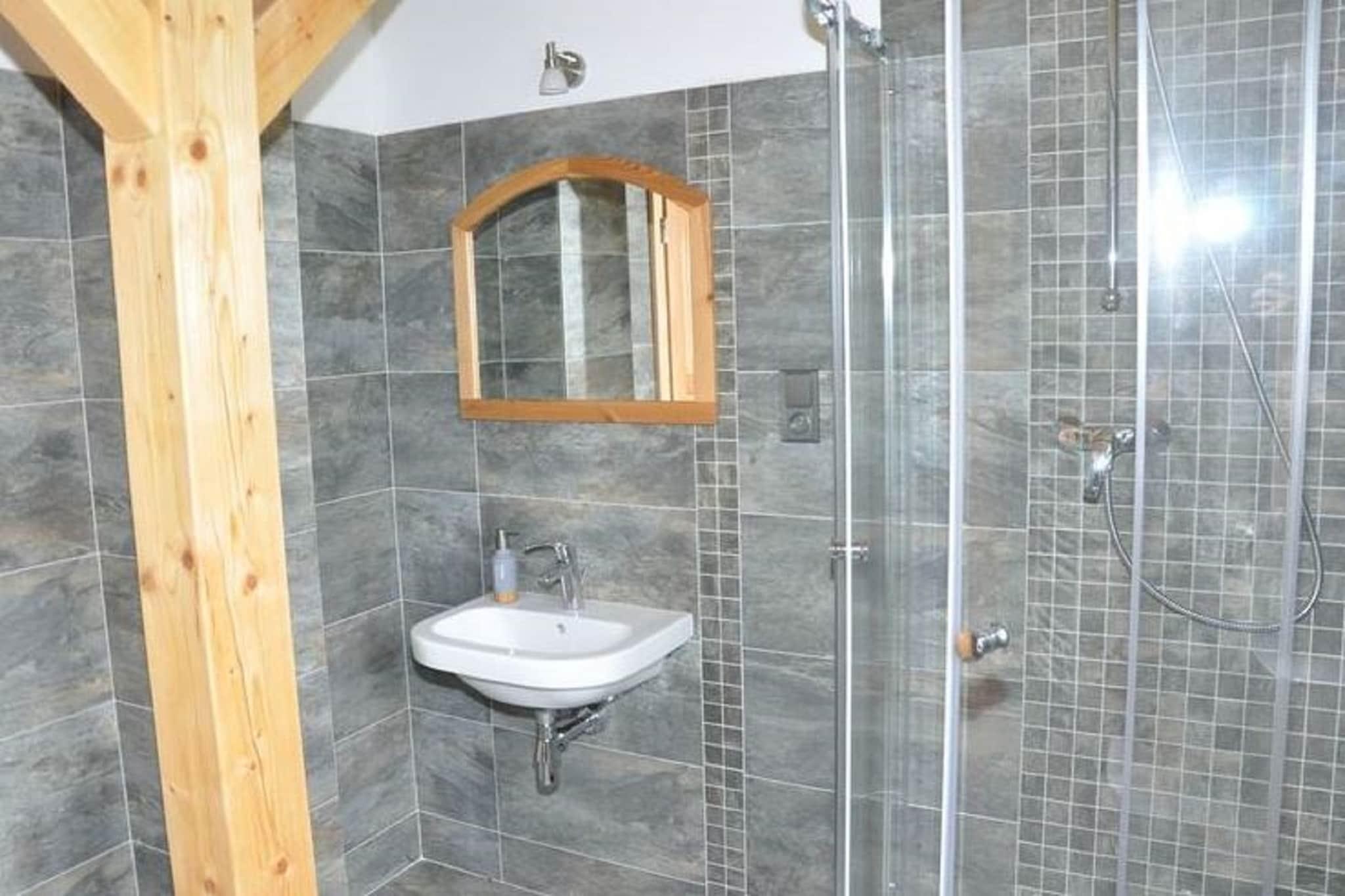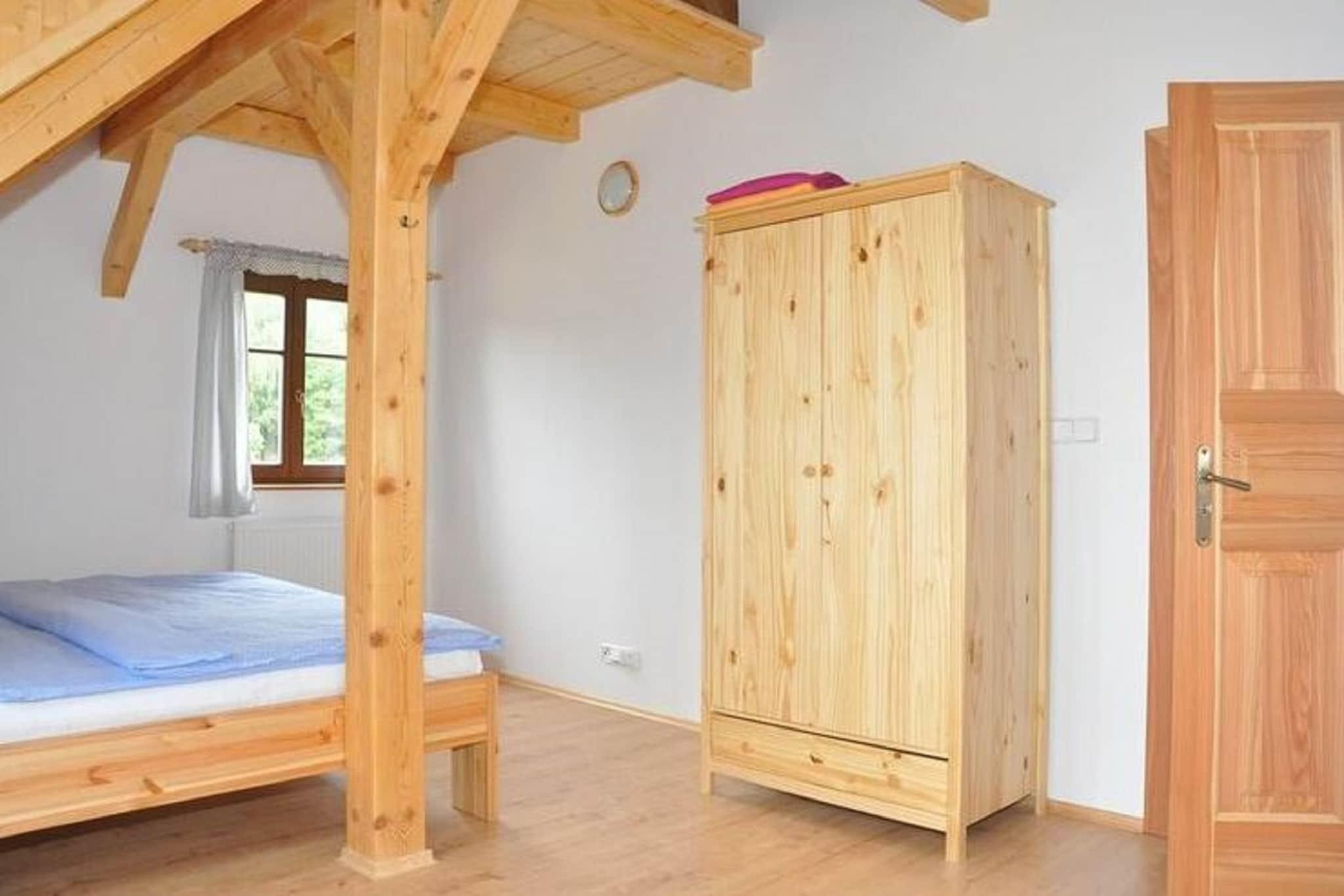 Velkommen til Holiday House Zdenek, et rummeligt træ-retræte i udkanten af ??den rolige landsby Dlouhý. Fra terrassen og haven kan du nyde en flot udsigt over Kozákov-bjerget og panoramaet over Giant Mountains. Interiøret er gennemtænkt designet med varme træmøbler, en pejs, der sætter en hyggelig atmosfære, og et veludstyret køkken ideelt til at tilberede måltider til familie eller venner. Med fem soveværelser, to badeværelser, tre toiletter og en privat sauna byder boligen på komfort og plads til, at grupper kan slappe af sammen. Denne placering er perfekt for udendørsentusiaster. Om vinteren ligger Kozákov-skiløjpen kun 3 km derfra, mens populære feriesteder i Giant Mountain som Vysoké og Horní Mísecky er inden for rækkevidde. Sommeren inviterer til vandreture gennem Bohemian Paradise, cykling gennem skovstier kun 100 m fra huset, eller dagsture til Prag, kun 100 km væk. Floden Jizera, 4 km fra ejendommen, er fantastisk til fiskeri, mens nærliggende swimmingpools og naturlige steder holder både voksne og børn underholdt året rundt. Efter en dag udendørs kan du vende tilbage for at slappe af i saunaen eller nyde en grill i den rummelige private have. For at spise kan du udforske det nærliggende Železný Brod (4 km), der tilbyder traditionelle tjekkiske restauranter, eller afhente forsyninger fra Smrcí kun 1 km væk for et hjemmelavet måltid. Uanset om man samles ved pejsen med familien eller nipper til vin på terrassen med udsigt over bjergene, kombinerer House Zdenek komfort, beliggenhed og autentisk tjekkisk charme for et mindeværdigt ophold.