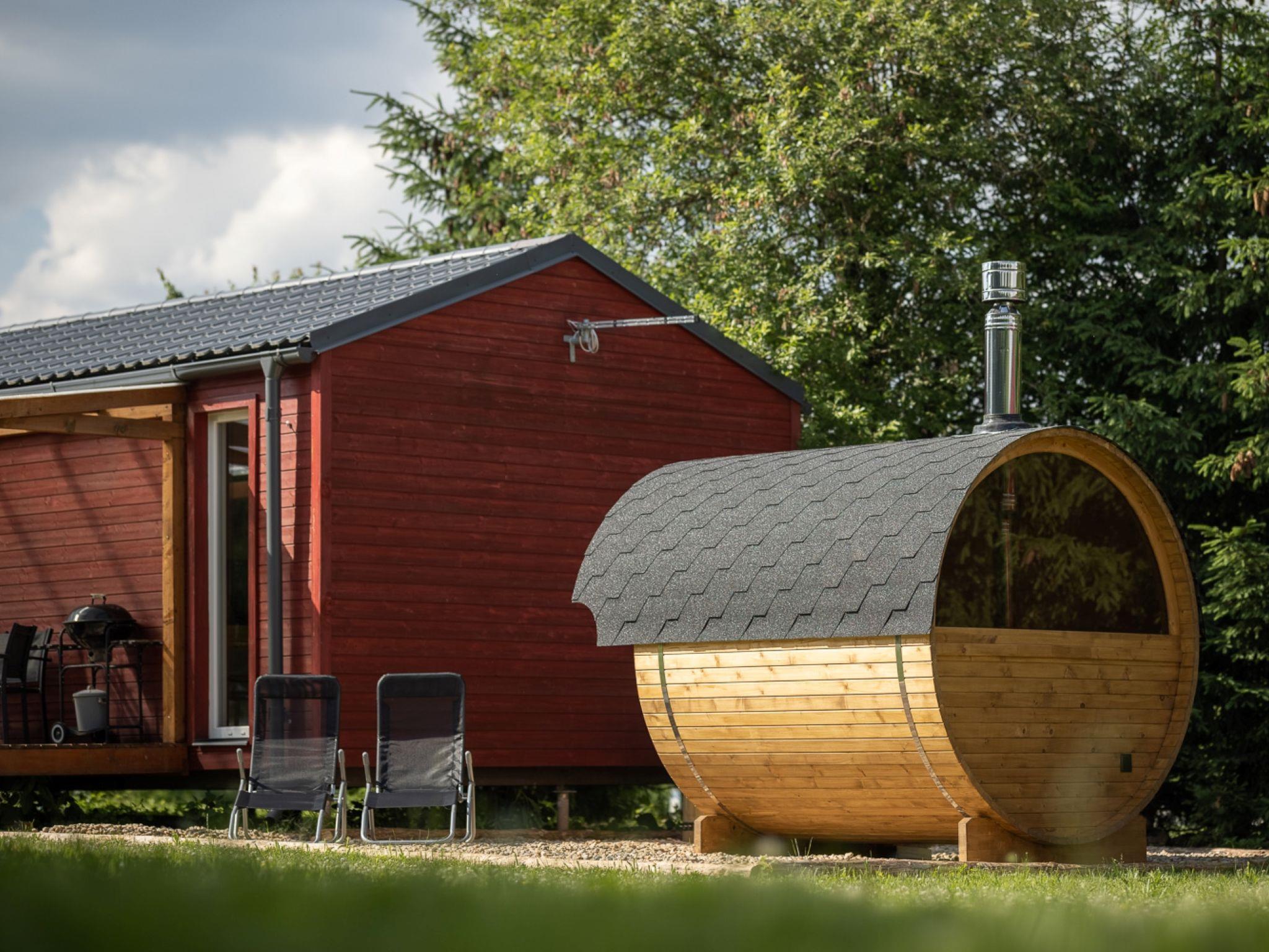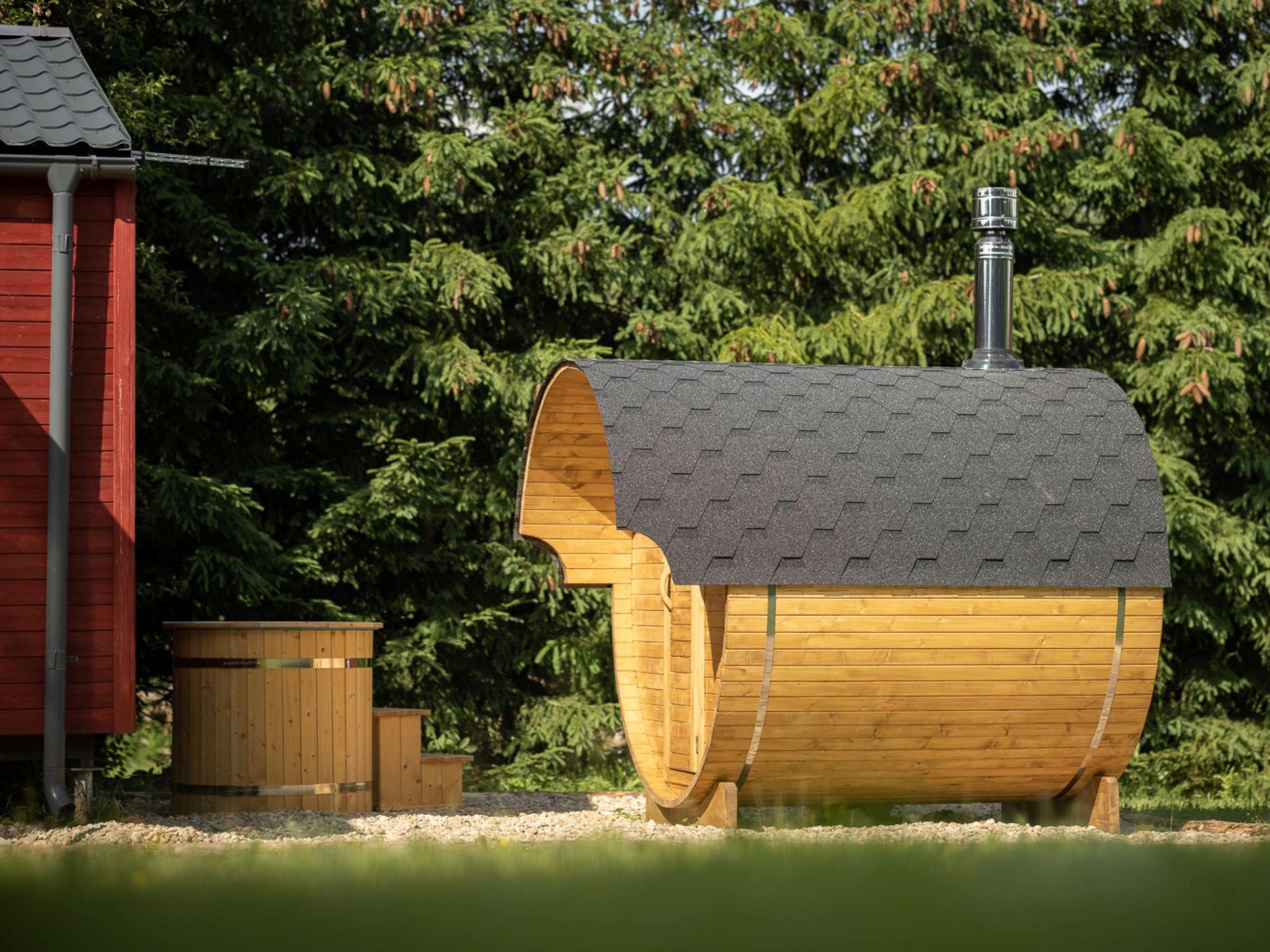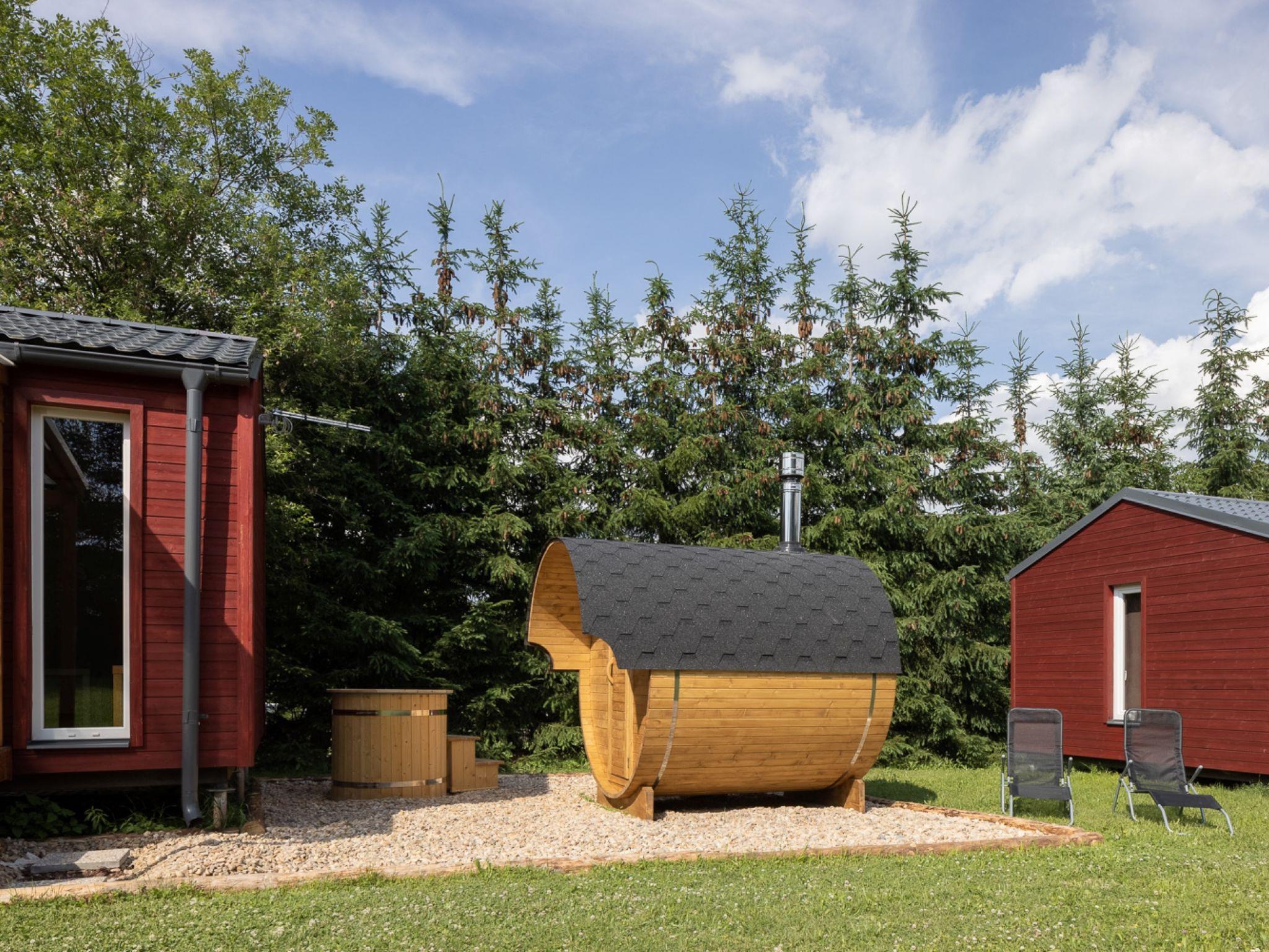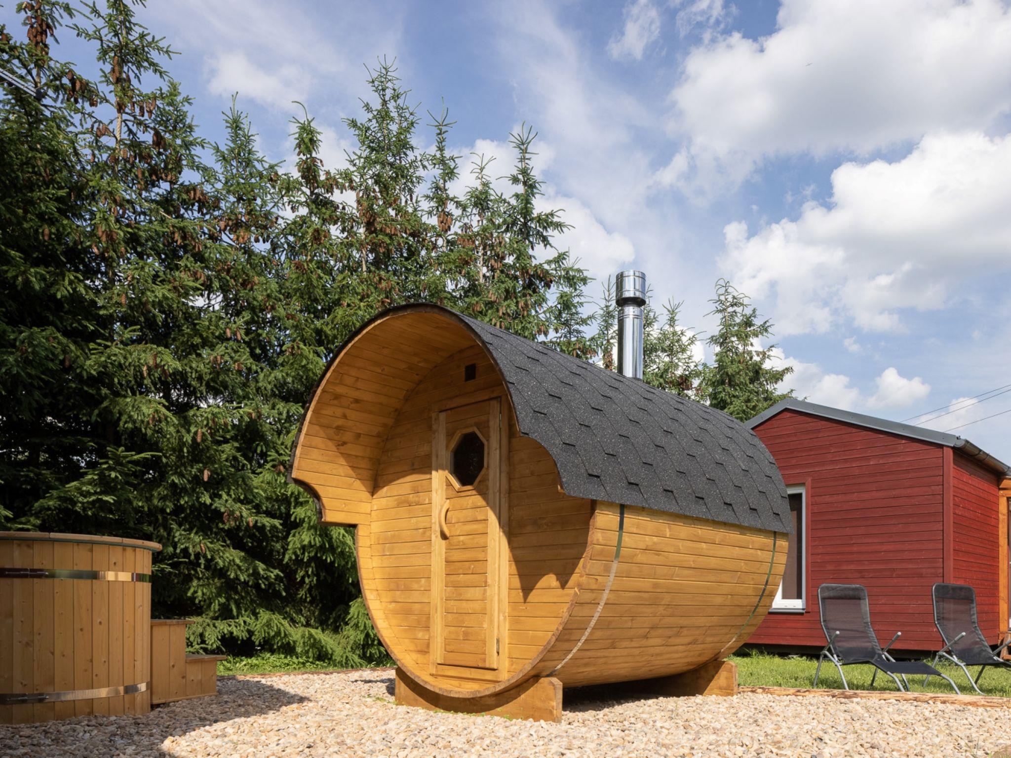 "Pod Lišcím kopcem 2+2 sauna", 2-room cottage. Living/sleeping room with 1 double sofabed and TV. Exit to the terrace. 1 room with 1 double bed. Kitchenette (4 ceramic glass hob hotplates, kettle, microwave) with dining table. Shower/WC. Terrace. Terrace furniture. Facilities: Internet (WiFi, free). Please note: suitable for families. Non-smoking house. Maximum 1 pet/ dog allowed.