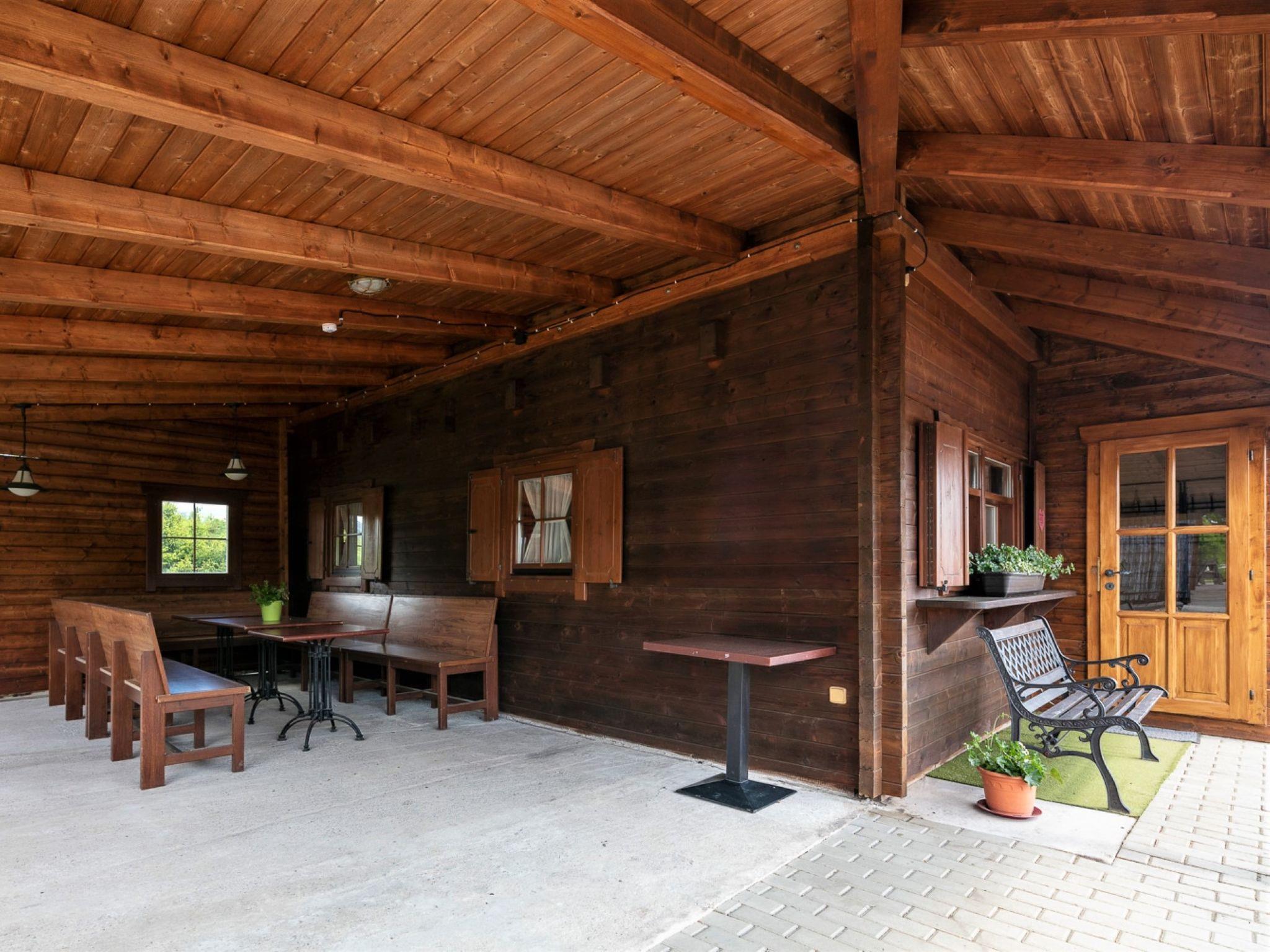 "Pod Lišcím kopcem 4+4", 3-room house on 2 levels. Cosy furnishings: living room with TV. Exit to the terrace. Kitchenette (2 ceramic glass hob hotplates, kettle, microwave) with dining table. Bath/WC. Upper floor: 1 room with 1 double sofabed and 1 double bed. 1 room with 1 double sofabed and 1 double bed. Sep. WC. Terrace. Terrace furniture. Facilities: Internet (WiFi, free). Please note: suitable for families. Non-smoking house. Maximum 1 pet/ dog allowed.
