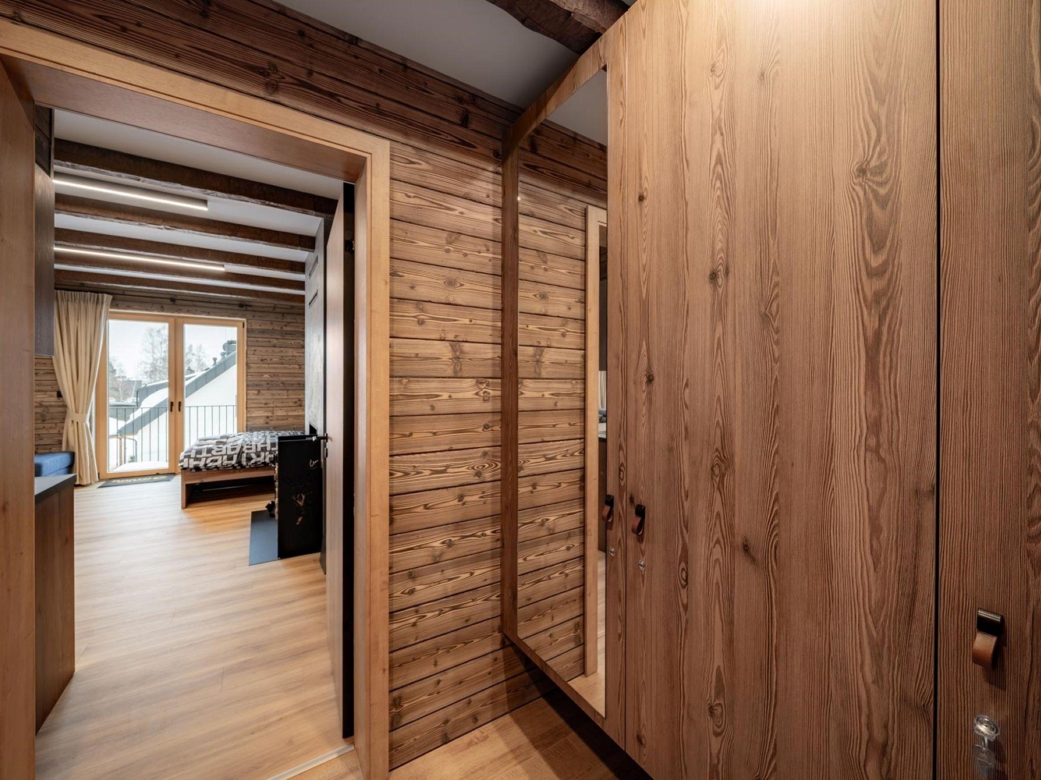 "Dolní Morava", 1-room apartment 45 m2 on 1st floor. Cosy and wooden furniture furnishings: entrance hall. Living/sleeping room with 1 x 2 bunk beds, 1 double bed and TV. Exit to the balcony. Kitchenette (oven, dishwasher, 4 ceramic glass hob hotplates, kettle, microwave, electric coffee machine) with dining table. Shower/WC. Electric heating. Balcony. Balcony furniture. Facilities: Internet (WiFi, free). Parking. Please note: suitable for families. Non-smokers only.