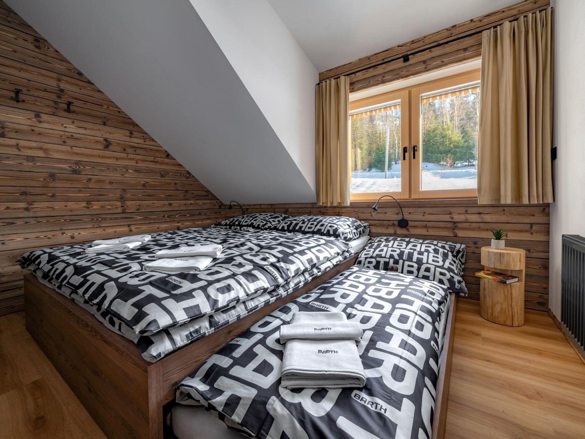 "Dolní Morava", 2-room apartment 61 m2 on 1st floor. Cosy and wooden furniture furnishings: entrance hall. Living room with TV. Exit to the balcony. 1 room with 2 x 2 bunk beds, 1 double bed. Kitchenette (oven, dishwasher, 4 ceramic glass hob hotplates, kettle, microwave, electric coffee machine) with dining table. Shower/WC. Electric heating. Balcony. Balcony furniture. Facilities: Internet (WiFi, free). Parking. Please note: suitable for families. Non-smokers only.