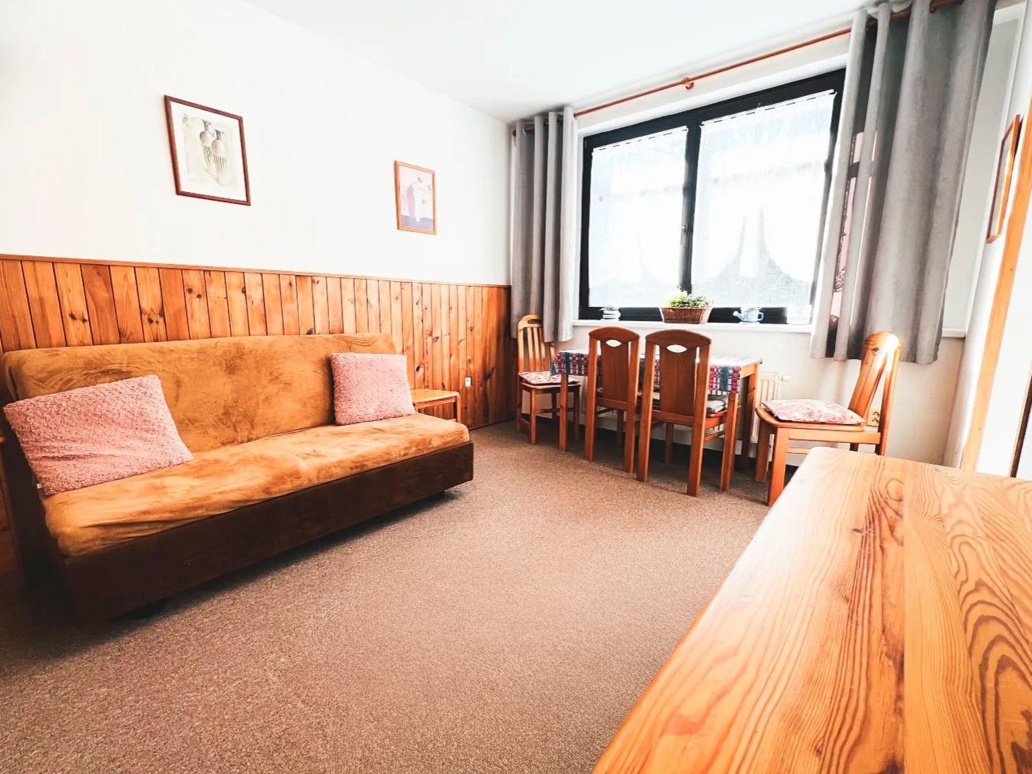 This bright studio apartment is nestled in the green coniferous forest landscape along the western tip of the imposing Czech Giant Mountains. Located in the quiet Klondaj district of the picturesque Harrachov ski resort, it offers ideal accommodation for a relaxing ski holiday. Hikers and nature lovers will also find their money's worth here outside of the winter months.