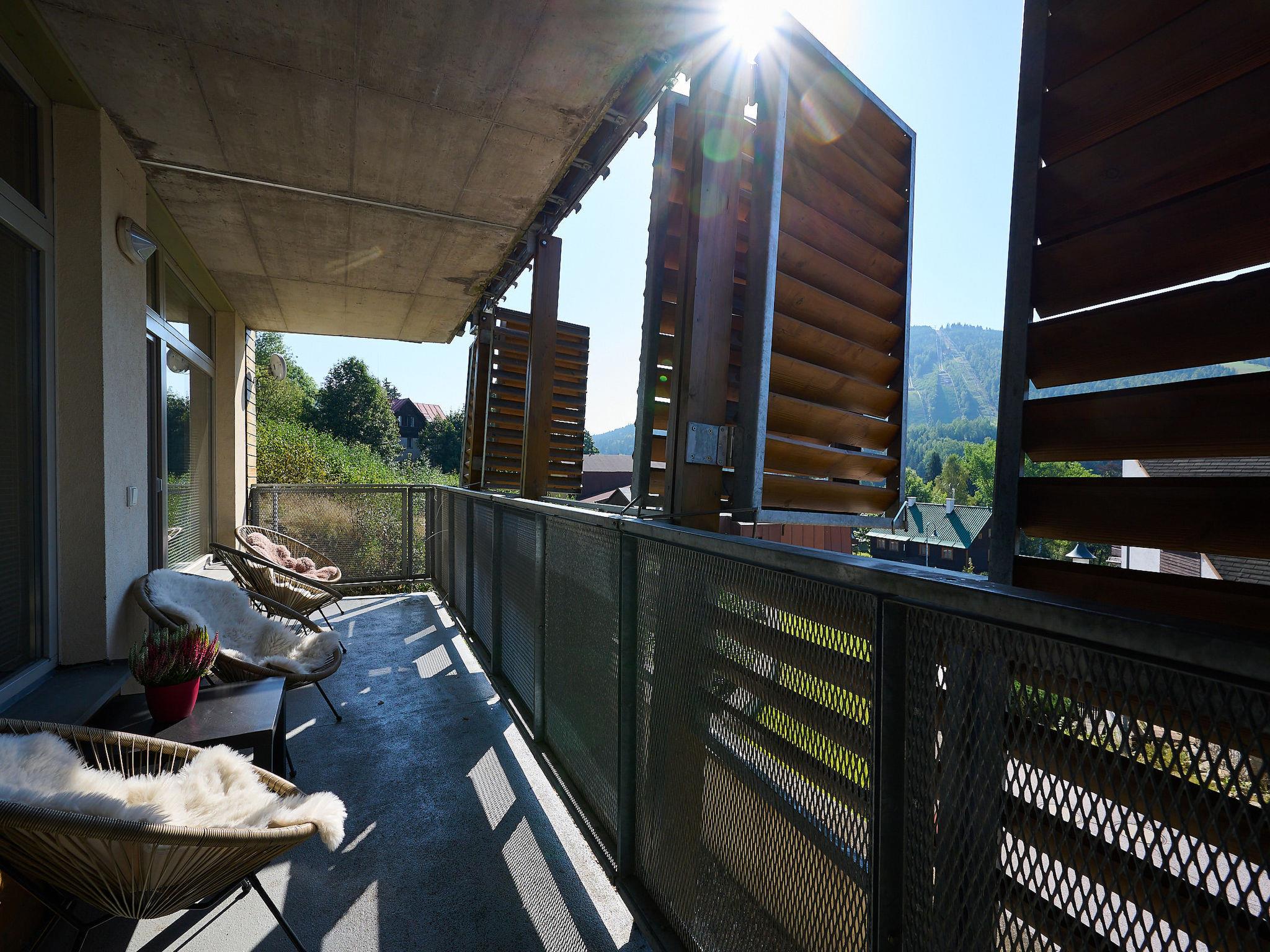 Harrachov: Modern, cosy apartment block "Certovka", 5 storeys. In the centre of Harrachov, 200 m from the skiing area. In the house: lift, central heating system. Single garage. Supermarket 500 m, restaurant, bar, café 80 m, bus stop "Harrachov,Centrum" 100 m, railway station "Harrachov" 4 km. Golf course (9 hole) 4 km, cable car, ski rental 200 m, ski bus stop 100 m, ski school, children's playground 200 m. Nearby attractions: Ski muzeum, skokanské mustky, Šindelka 1.2 km, Rybárna 2 km, Hornické muzeum 2.5 km, Mumlavské vodopády 3 km, Dvoracky 10 km, Vosecká bouda 12 km, pramen Labe 13 km, Dinopark (PL) 14 km, Termy Cieplickie (PL) 30 km. Well-known ski regions can easily be reached: Harrachov 500 m, Hilbert 300 m, Rokytnice nad/Jiz 20 km. Hiking paths: Western City Karpacz(PL) 40 km, Park miniatury Kowary, Karpacz (PL) 40 km, Giganteria Piechowice(PL) 23 km. The keys‘ handover takes place by the agency Interhome Harrachov.