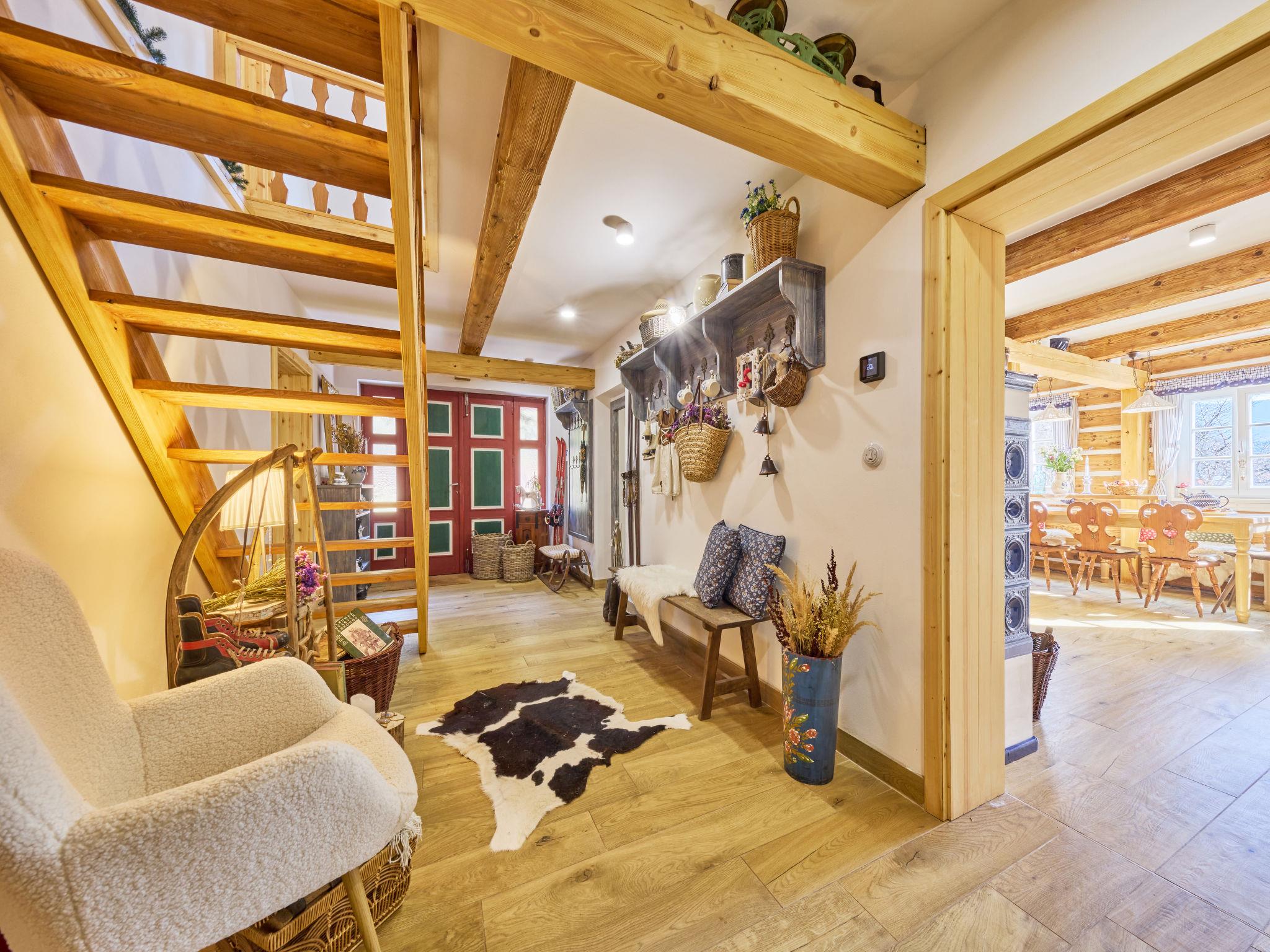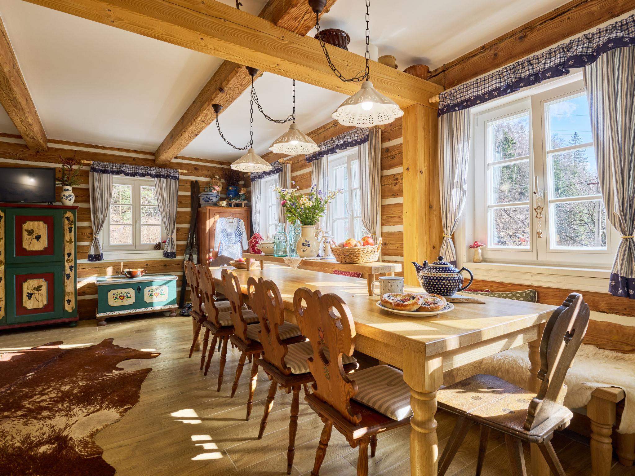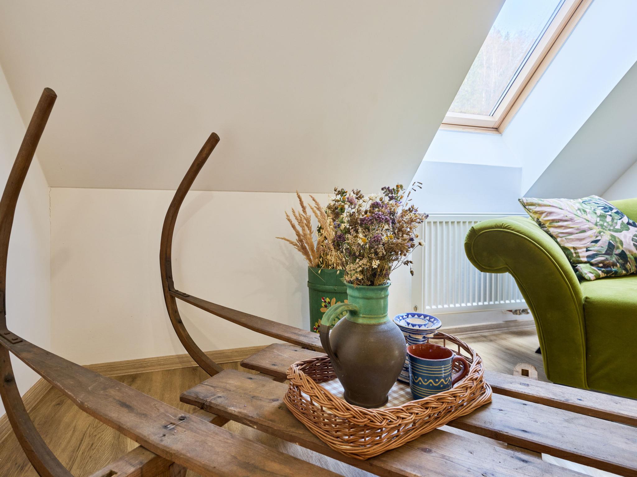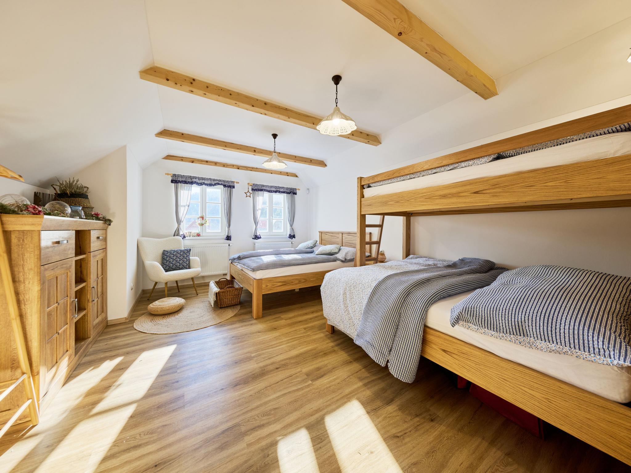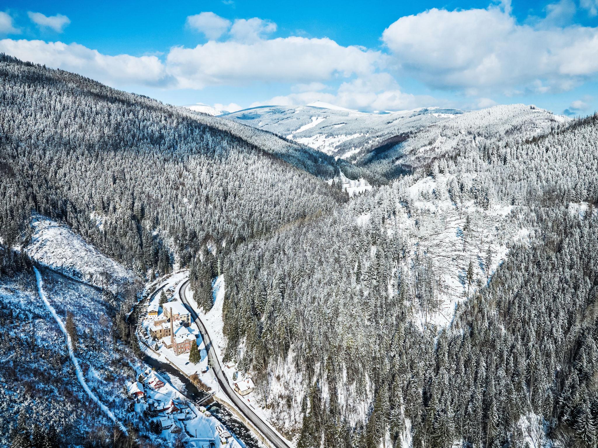 Temný Dul 3 km from Janské Lázne: Very beautiful, rustic country house "Charming Mountain Lodge & Wellness", 2 storeys, detached, built in 1850, renovated in 2023. In a quiet, sunny position, 100 m from the edge of the forest, 2.5 km from the skiing area, directly by the river. Private: garden (not fenced). Patio, fireplace. In the house: WiFi, sauna, storage room for skis, central heating system, laundry, washing machine, tumble dryer. Parking at the house. Grocery 1.5 km, restaurant 900 m, bus stop "Svoboda nad Úpou - Maršov" 400 m, railway station "Svoboda nad Úpou" 3 km, park "Farmapark Muchomurka" 3 km, outdoor swimming pool 7 km, indoor swimming pool 4.5 km. Golf course (18 hole) 9 km, tennis 4 km, minigolf 1.6 km, walking paths from the house, cycle lane 500 m, cable car 5 km, ski lift 2.5 km, gondola lift 5 km, skisport facilities 5 km, slopes 2.5 km, ski rental 3500 km, ski bus stop 200 m, ski school 5 km, children's ski school 5 km, sled run 6 km, cross country ski track 1.5 km, children's playground 800 m. Nearby attractions: Pohádková výstava 1.5 km, Svoboda n. Ú. 2.5 km, hrádek Aichelburg 4 km, Janské Lázne Spa 5 km, Stezka korunami stromu 6 km, Pec pod Snežkou, Relaxpark, bobová dráha 10 km, Trutnov, Malá Úpa 14 km, Vrchlabí 20 km, Zoo Dvur Králové, Adršpach, Karpacz 35 km. Well-known ski regions can easily be reached: Svoboda nad Úpou 2.5 km, Janské Lázne 3.5 km, Cerná Hora – Pec, Portášky, Mladé Buky 7 km, Malá Úpa 16 km, Špindleruv Mlýn 40 km. Hiking paths: Krkonošský národní park. Please note: suitable for families.