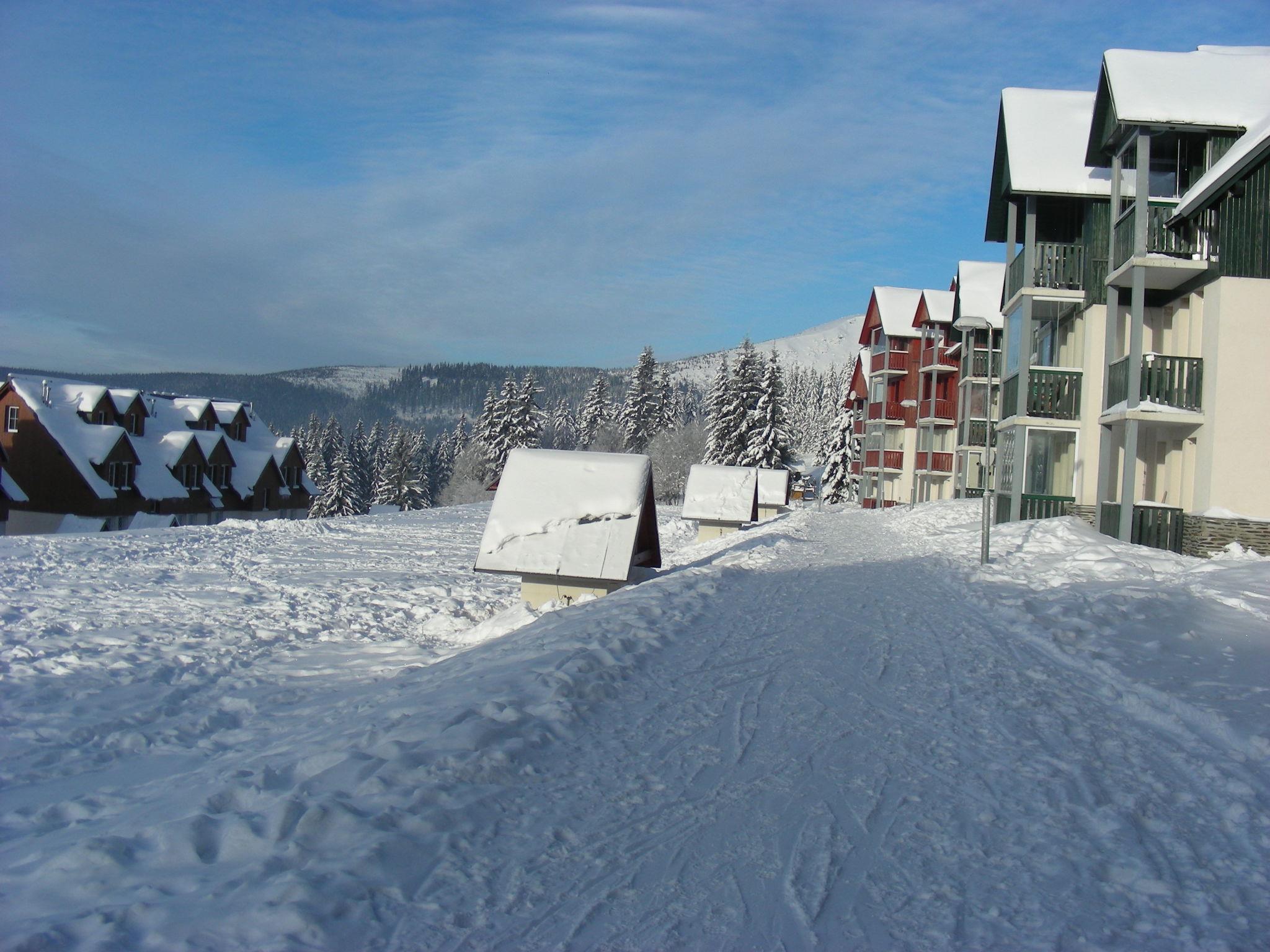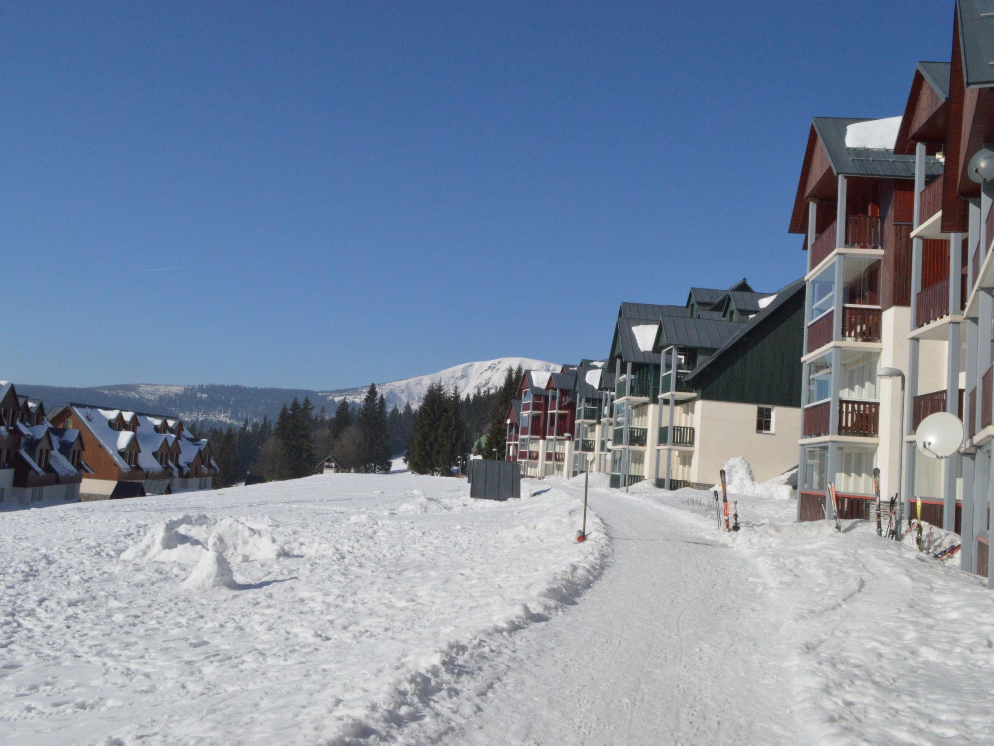 Modern, beautiful apartment house 1'000 m a.s.l.. 20 apartments in the residence. 10 m from the centre of Horní Mísecky, 9 km from the centre of Vítkovice, 20 km from the centre of Jilemnice, 50 m from the skiing area. For shared use: property, communal covered parking. Shop 9 km, supermarket 20 km, restaurant 200 m, bus stop "Vítkovice, Horní Mísecky" 150 m. Walking paths from the house, cycle lane 50 m, chair lift 500 m, slopes 50 m, ski rental, ski school, children's ski school 500 m, cross country ski track 100 m, children's playground 500 m. Nearby attractions: Mohyla Hance a Vrbaty, Zlaté návrší 3 km, Pancavský vodopád, Pramen Labe 5 km, Jilemnice 20 km, Harrachov 35 km. Well-known ski regions can easily be reached: Horní Mísecky, Špindleruv Mlýn, Rokytnice nad Jizerou. Well-known lakes can easily be reached: Vodní nádrž Labská. Hiking paths: Krkonošská magistrála, Bucharova cesta. Please note: no lift.