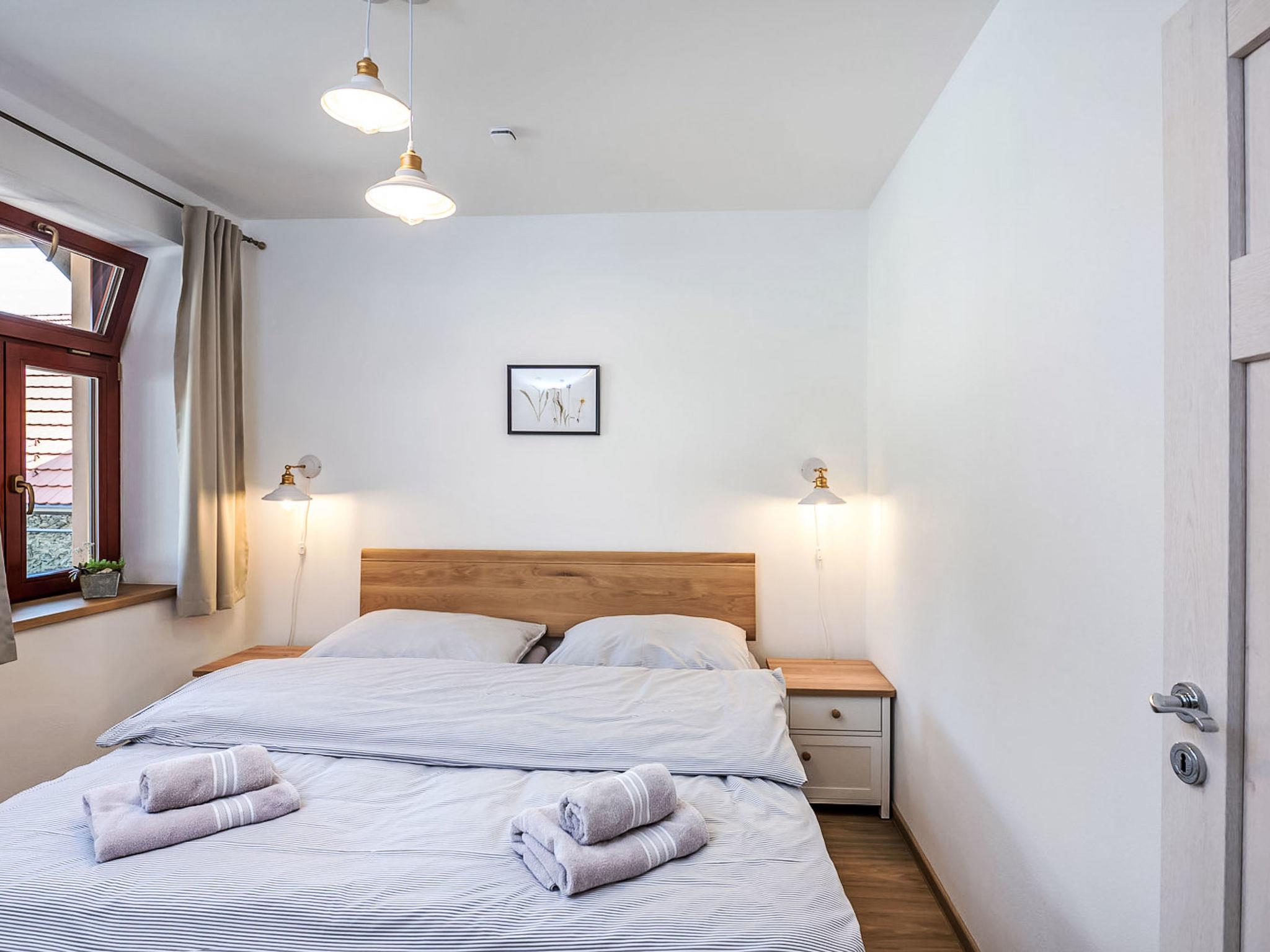 "Želnava", 3-room apartment 53 m2, on the ground floor. Spacious and bright, very beautiful and stylish furnishings: living/dining room with dining table. 1 room with 1 double bed. 1 room with 2 beds. Kitchenette (oven, 4 ceramic glass hob hotplates, kettle, microwave, electric coffee machine). Shower/WC. Terrace. Terrace furniture. Facilities: baby cot. Internet (WiFi, free). Suitable for families. Maximum 1 pet/ dog allowed.