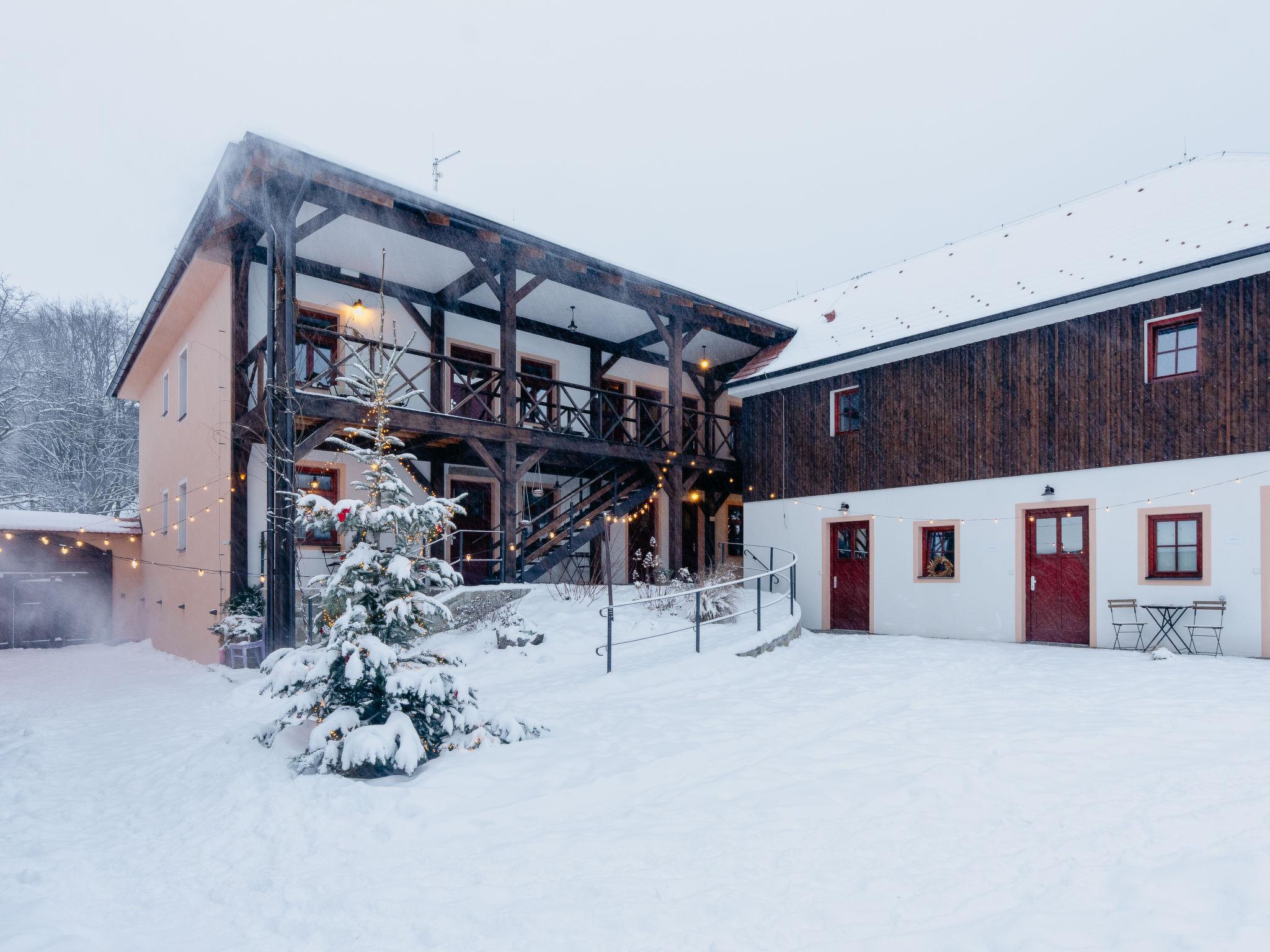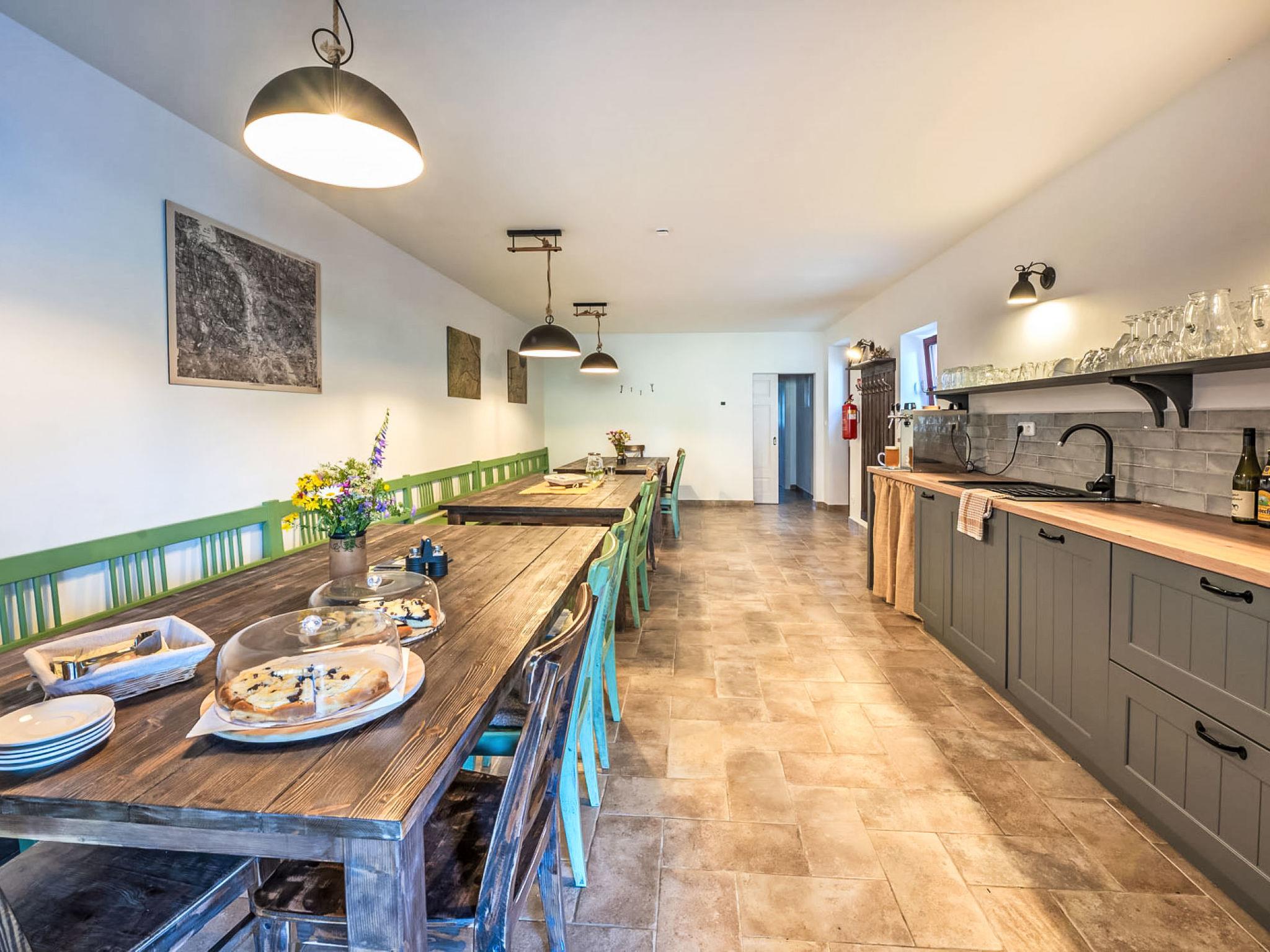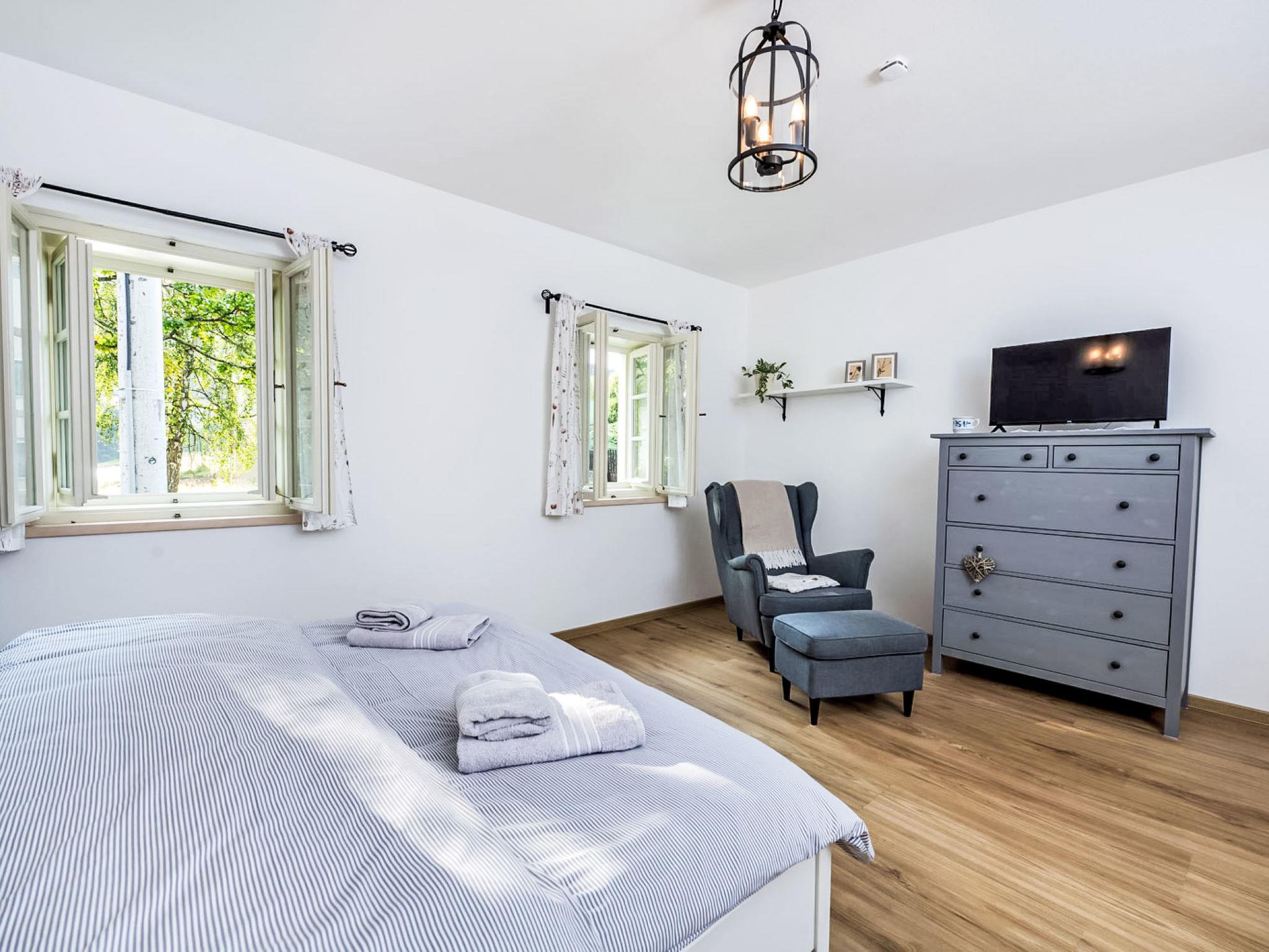 Pernek 4 km from Horní Planá: Very beautiful residence, 3 storeys, detached, renovated in 2024. 8 apartments in the property. 500 m from the edge of the forest, 1.8 km from the lake, 500 m from the stream, in the countryside. For shared use: property, natural pond. Terrace, fireplace. In the complex: lounge, sauna (extra). Storage room for bicycles, storage room for skis, central heating system. Parking on the premises. Supermarket 4 km, restaurant 4 km, bicycle rental 4 km, bus stop "Horní Planá, Pernek" 150 m, indoor swimming pool 22 km, bathing lake "Lipno" 1.8 km. Marina 29 km, minigolf 27 km, walking paths from the house 10 m, cycle lane 100 m, cross country ski track 5 km. Nearby attractions: Mini zoo 1 km, Plešné jezero 14 km, Frymburk aquapark 22 km, Lipno bikepark, aquaworld, bobová dráha, lanový park, Stezka korunami stromu, Království lesa 29 km, Ceský Krumlov (UNESCO) 32 km, Klášter Zlatá koruna, Rožmberk 39 km. Well-known ski regions can easily be reached: Frymburk 23 km, Lipno nad Vltavou 29 km, Hochficht 33 km, Sternstein 53 km, Mitterdorf 41 km. Well-known lakes can easily be reached: vodní nádrž Lipno 1.8 km. Hiking paths: Národní park Šumava, CHKO Šumava. Please note: suitable for families. Suitable for events. The sauna is combined (infrared and finnish), capacity: 4 guests.