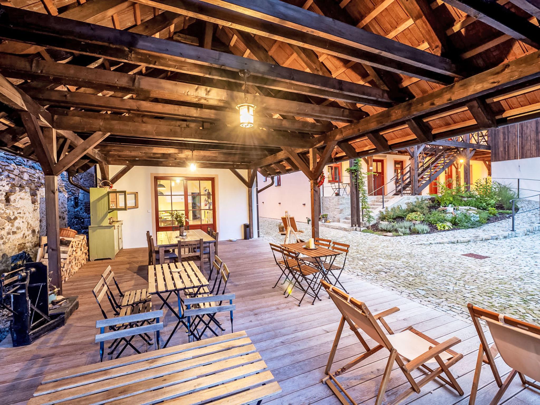 Pernek 4 km from Horní Planá: Very beautiful residence, 3 storeys, detached, renovated in 2024. 8 apartments in the property. 500 m from the edge of the forest, 1.8 km from the lake, 500 m from the stream, in the countryside. For shared use: property, natural pond. Terrace, fireplace. In the complex: lounge, sauna (extra). Storage room for bicycles, storage room for skis, central heating system. Parking on the premises. Supermarket 4 km, restaurant 4 km, bicycle rental 4 km, bus stop "Horní Planá, Pernek" 150 m, indoor swimming pool 22 km, bathing lake "Lipno" 1.8 km. Marina 29 km, minigolf 27 km, walking paths from the house 10 m, cycle lane 100 m, cross country ski track 5 km. Nearby attractions: Mini zoo 1 km, Plešné jezero 14 km, Frymburk aquapark 22 km, Lipno bikepark, aquaworld, bobová dráha, lanový park, Stezka korunami stromu, Království lesa 29 km, Ceský Krumlov (UNESCO) 32 km, Klášter Zlatá koruna, Rožmberk 39 km. Well-known ski regions can easily be reached: Frymburk 23 km, Lipno nad Vltavou 29 km, Hochficht 33 km, Sternstein 53 km, Mitterdorf 41 km. Well-known lakes can easily be reached: vodní nádrž Lipno 1.8 km. Hiking paths: Národní park Šumava, CHKO Šumava. Please note: suitable for families. Suitable for events. The sauna is combined (infrared and finnish), capacity: 4 guests.