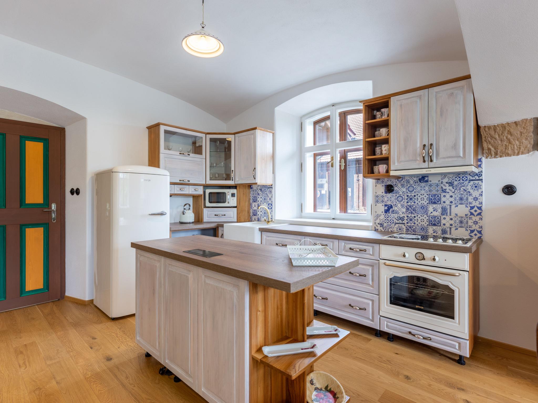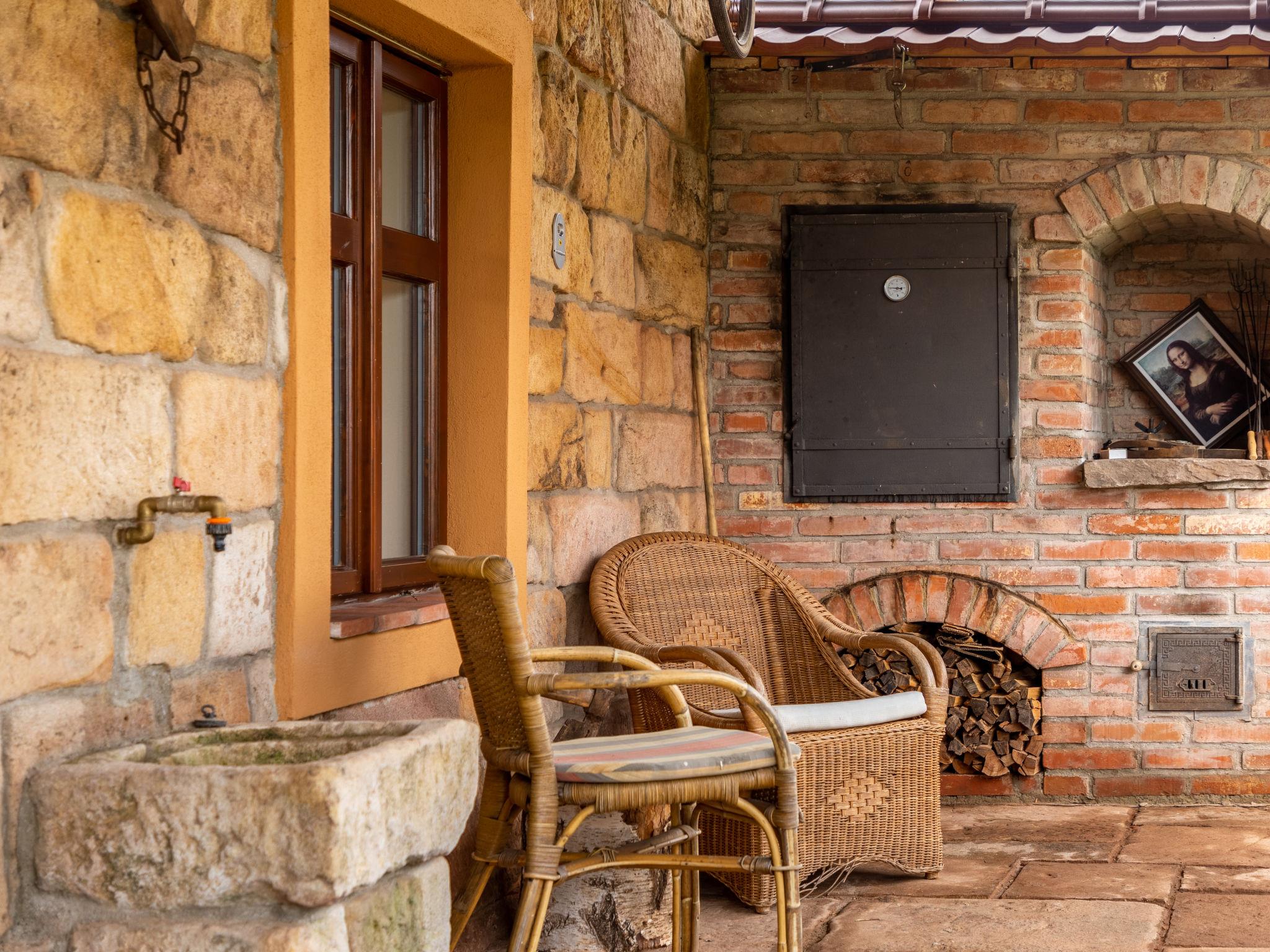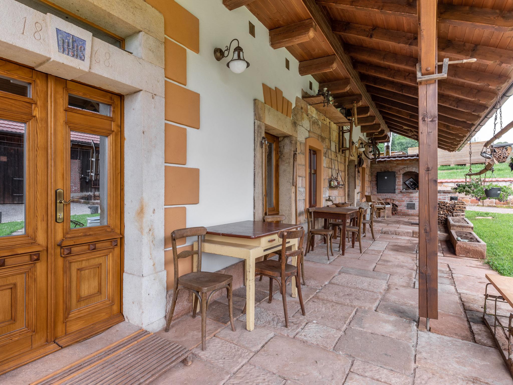 "Dolní Olešnice", 5-room farmhouse. Comfortable and stylish furnishings: living room with dining table, satellite TV and tiled stove. 1 room with 1 double bed. 1 room with 3 beds. 1 room with 2 beds. 1 room with 2 double sofabeds and satellite TV. Kitchenette (oven, dishwasher, 4 ceramic glass hob hotplates, toaster, electric coffee machine) with dining nook. Bath/shower, sep. WC, bath/shower/WC. Terrace. Terrace furniture. Facilities: washing machine, children's high chair, baby cot. Internet (WiFi, free). Please note: suitable for families. Non-smoking house.