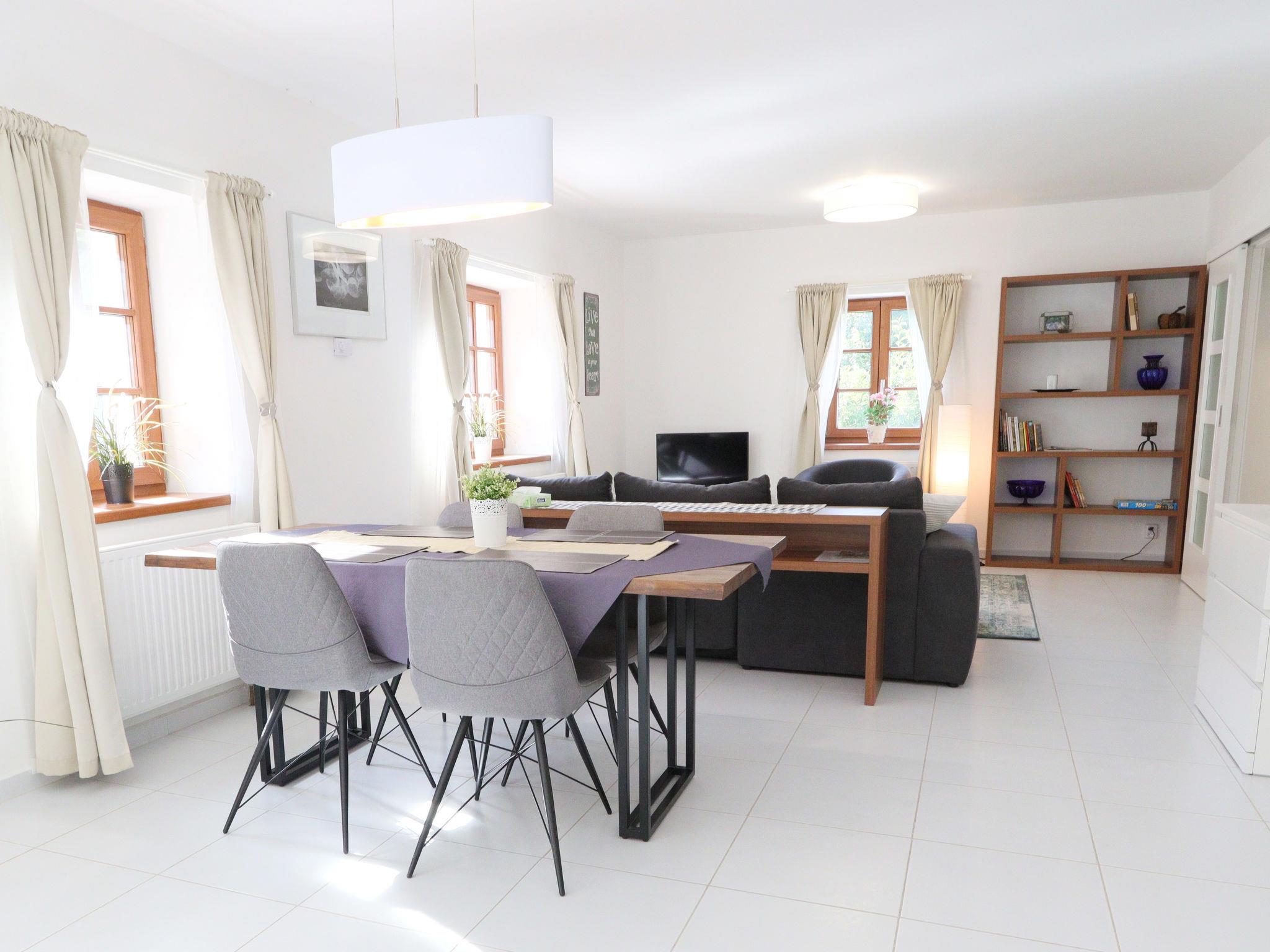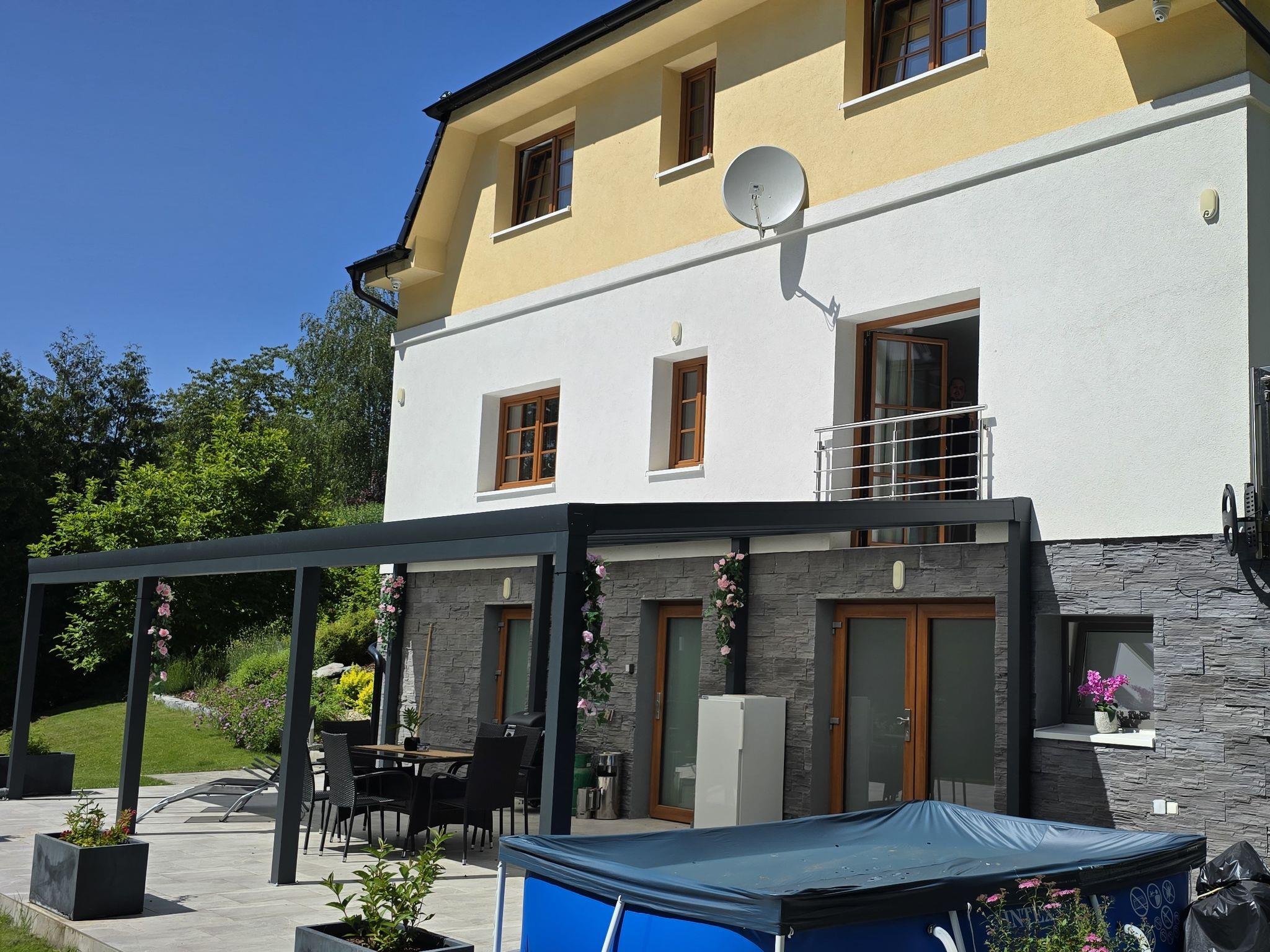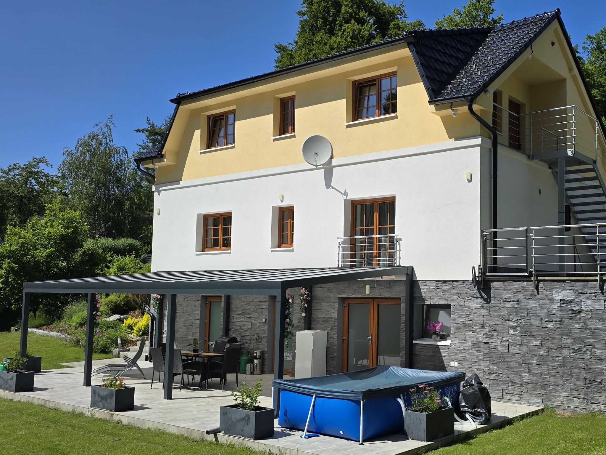 Bohuliby, 3 km from Jilové u Prahy: A cozy cottage in nature by the river Sazava, suitable for lovers of hiking, cycling and relaxation. Comfortable country house "Posázaví", 2 storeys, detached, renovated in 2021. Private: property 1'200 m2 (fenced), garden, swimming pool (above ground) (4 x 2 m, depth 80 cm, seasonal availability: 01.Jun. - 30.Sep.). Terrace, garden furniture, barbecue, fireplace. In the house: sauna (extra). Central heating system, washing machine. Parking (for 5 cars) at the house. Shop 2 km, supermarket 3 km, restaurant 4 km, bus stop "Bohuliby" 300 m, railway station "Luka pod Medníkem, Petrov" 2.5 km, outdoor swimming pool 2 km, natural swimming pond 13 km. Ski lift 4 km. Nearby attractions: Posázavská stezka, Vyhlídka Treštibok, Štola sv. Josefa 3 km, Posázavský Pacifik / žel.viadukt Žampach 3.5 km, Aquapalace Praha 24 km, Zámek Jemnište 39 km, Hrad Ceský Šternberk 45 km. Well-known ski regions can easily be reached: Chotoun 4 km. Well-known lakes can easily be reached: vodní nádrž Vrané 13 km, vodní nádrž Štechovice 18 km. The owner does not accept any youth groups. Part of the house is closed and unoccupied. The house is divided into 2 apartments with own entrances. Deposit,local tax,energy consumption and sauna (on request) are payable on spot.