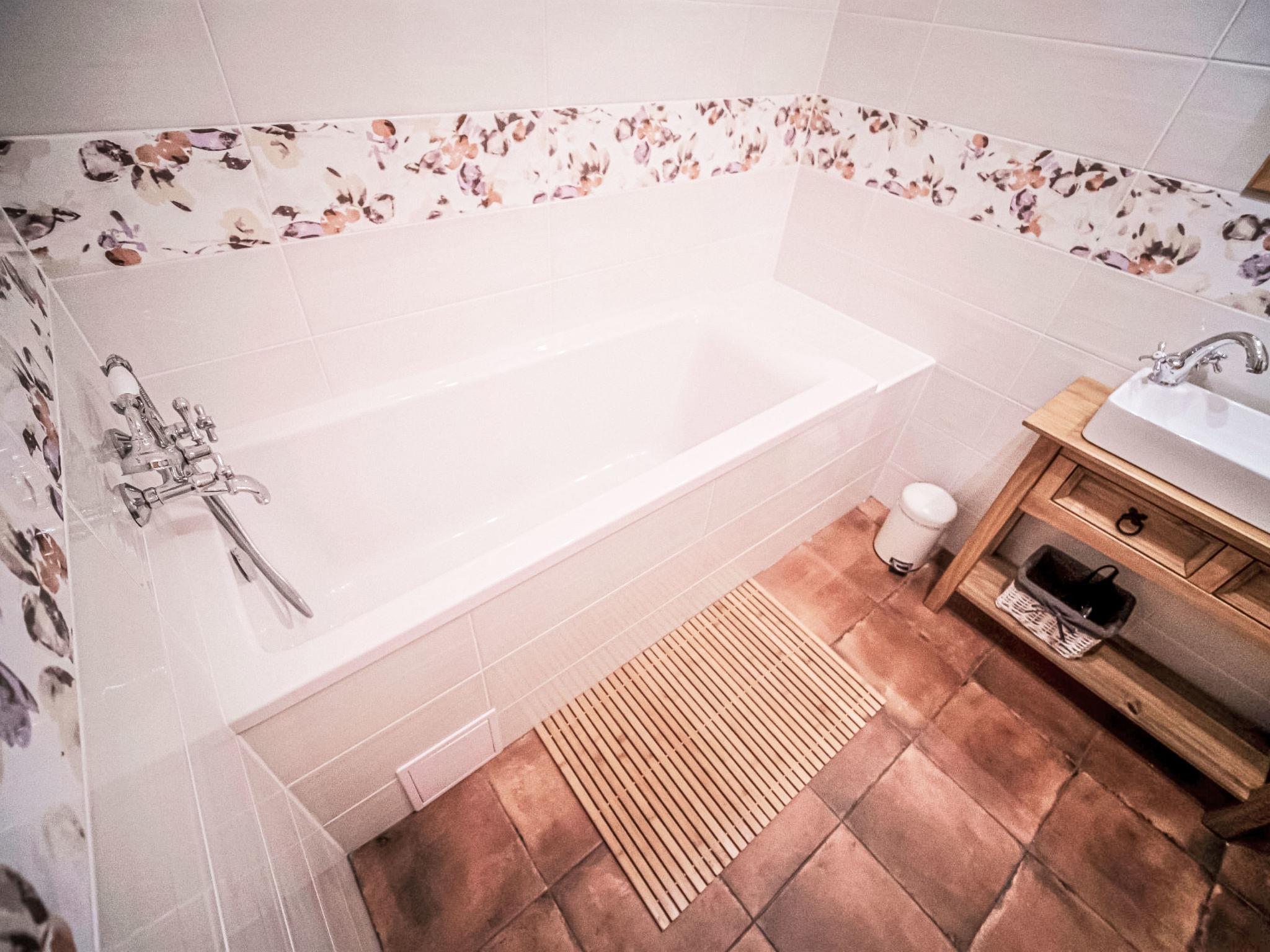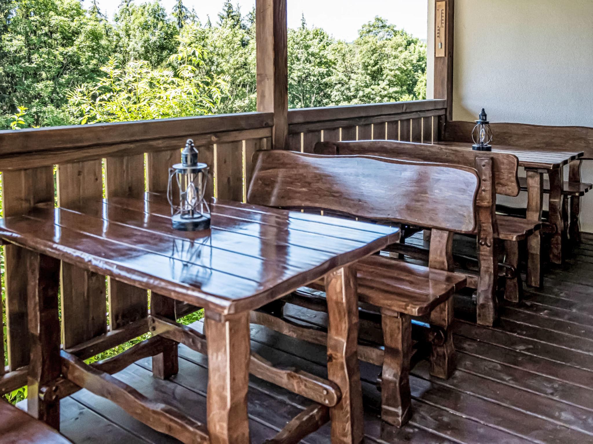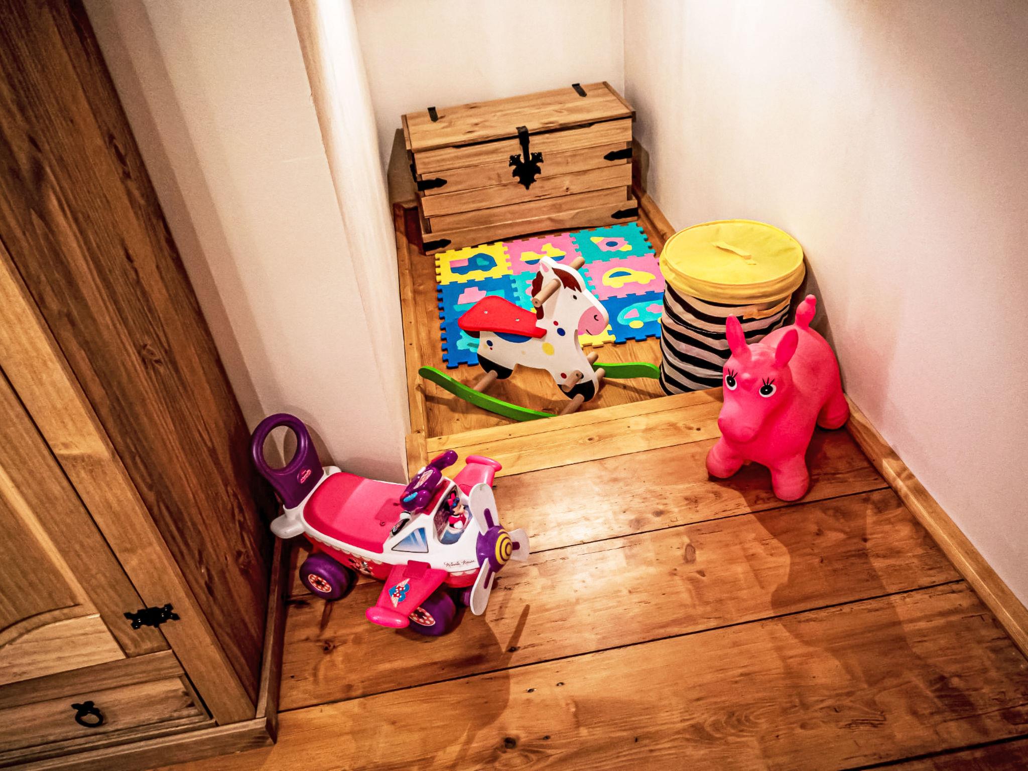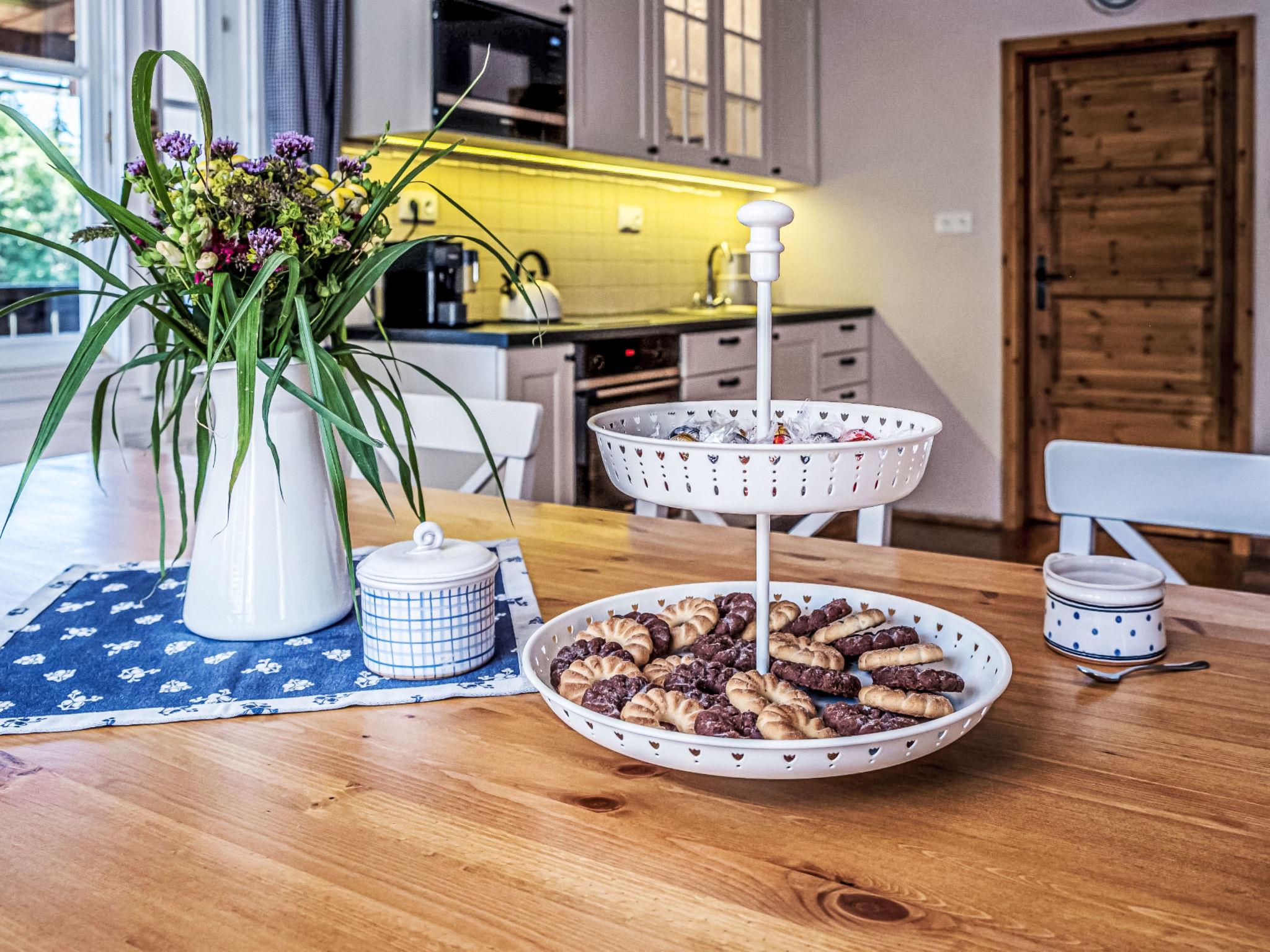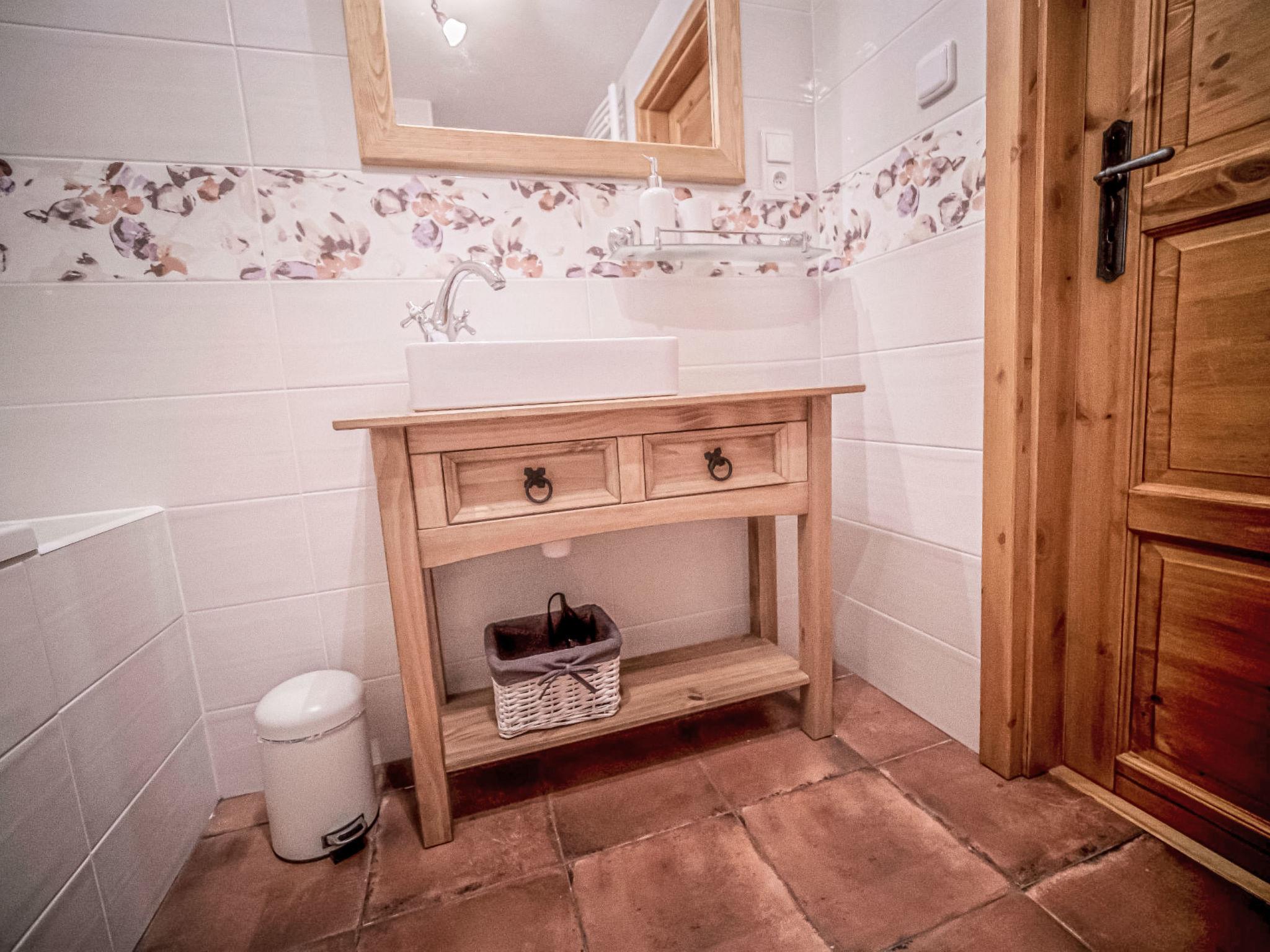 5-room cottage. Very beautiful and rustic furnishings: entrance hall with separate WC. Exit to the veranda. Open large living/dining room with 1 sofabed, dining table and wood-burning stove. Large, open kitchen (oven, dishwasher, 4 ceramic glass hob hotplates, toaster, kettle, microwave, freezer, electric coffee machine, Capsules for coffee machine (Nespresso)). Sep. WC, Sauna. 2nd upper floor: 1 room with 2 beds, 1 double bed and shower/WC. 1 room with 1 double bed and shower/WC. 1 room with 1 double bed and shower/WC. 1 room with 2 beds, 1 double bed and bath/WC. Wooden floors. Terrace furniture. View of the mountains, the garden and the forest. Facilities: washing machine, sauna, children's high chair, baby cot, hair dryer. Internet (WiFi, free). Please note: suitable for families. Non-smokers only. 1 pet/ dog allowed.