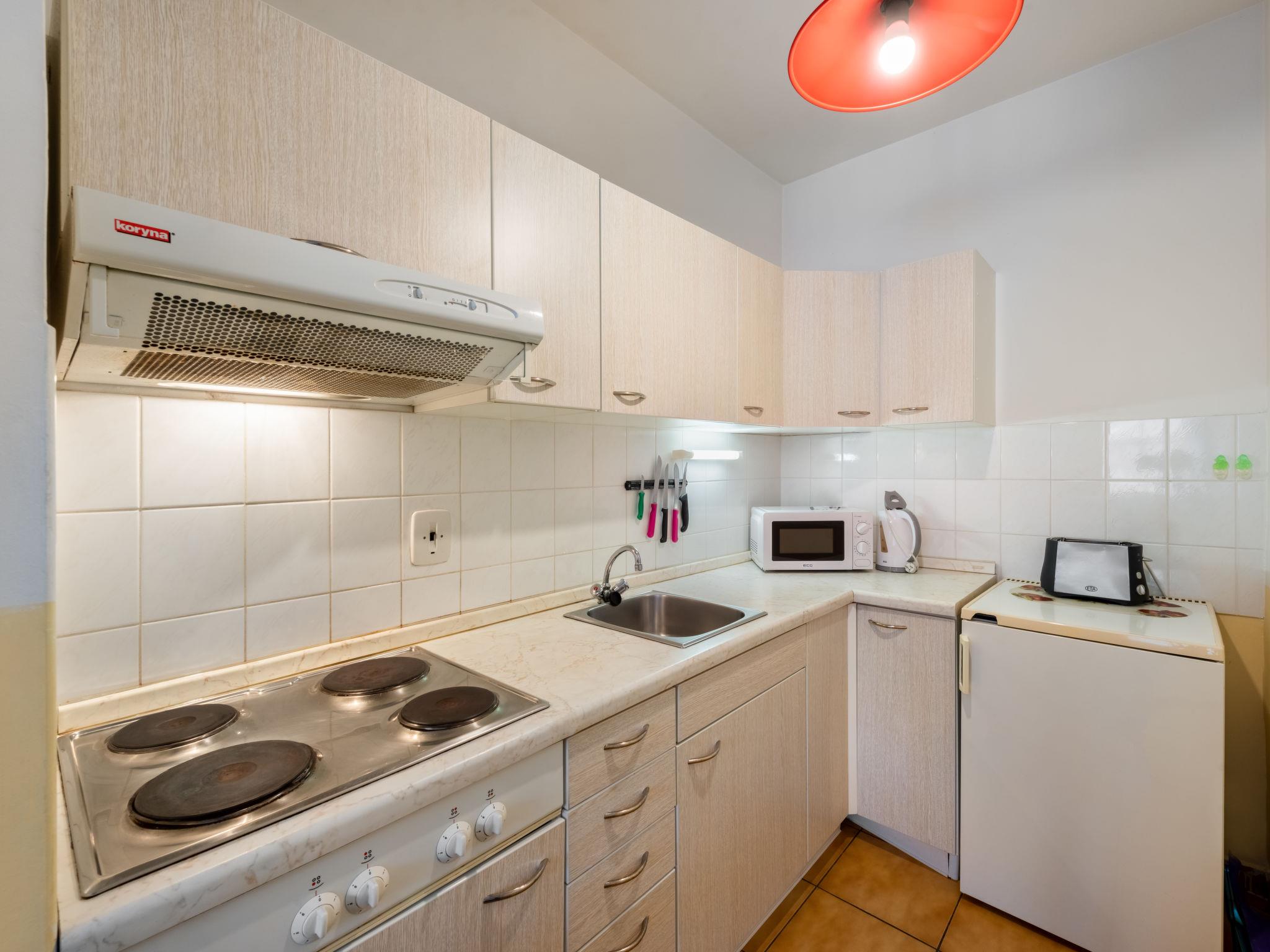 2-room apartment 51 m2 on 1st floor. Living/dining room 25 m2 with 1 double sofabed, satellite TV and hi-fi system. 1 room with 1 x 2 bunk beds, 1 double bed. Open kitchen (4 hot plates, toaster, kettle, microwave, electric coffee machine). Shower/WC. Electric heating. Facilities: Internet (WiFi, extra). Please note: suitable for families. Non-smokers only. Maximum 1 pet/ dog allowed.