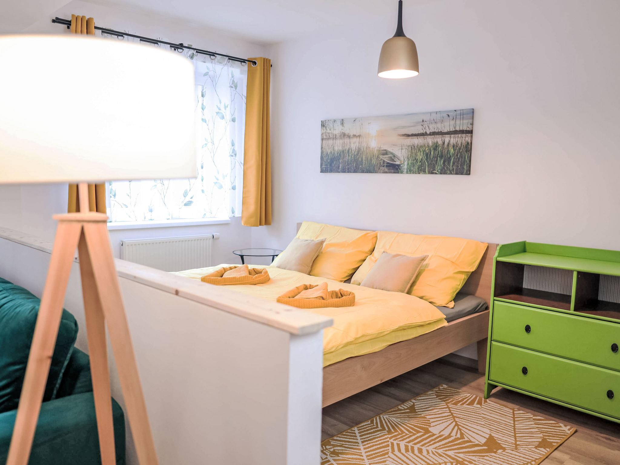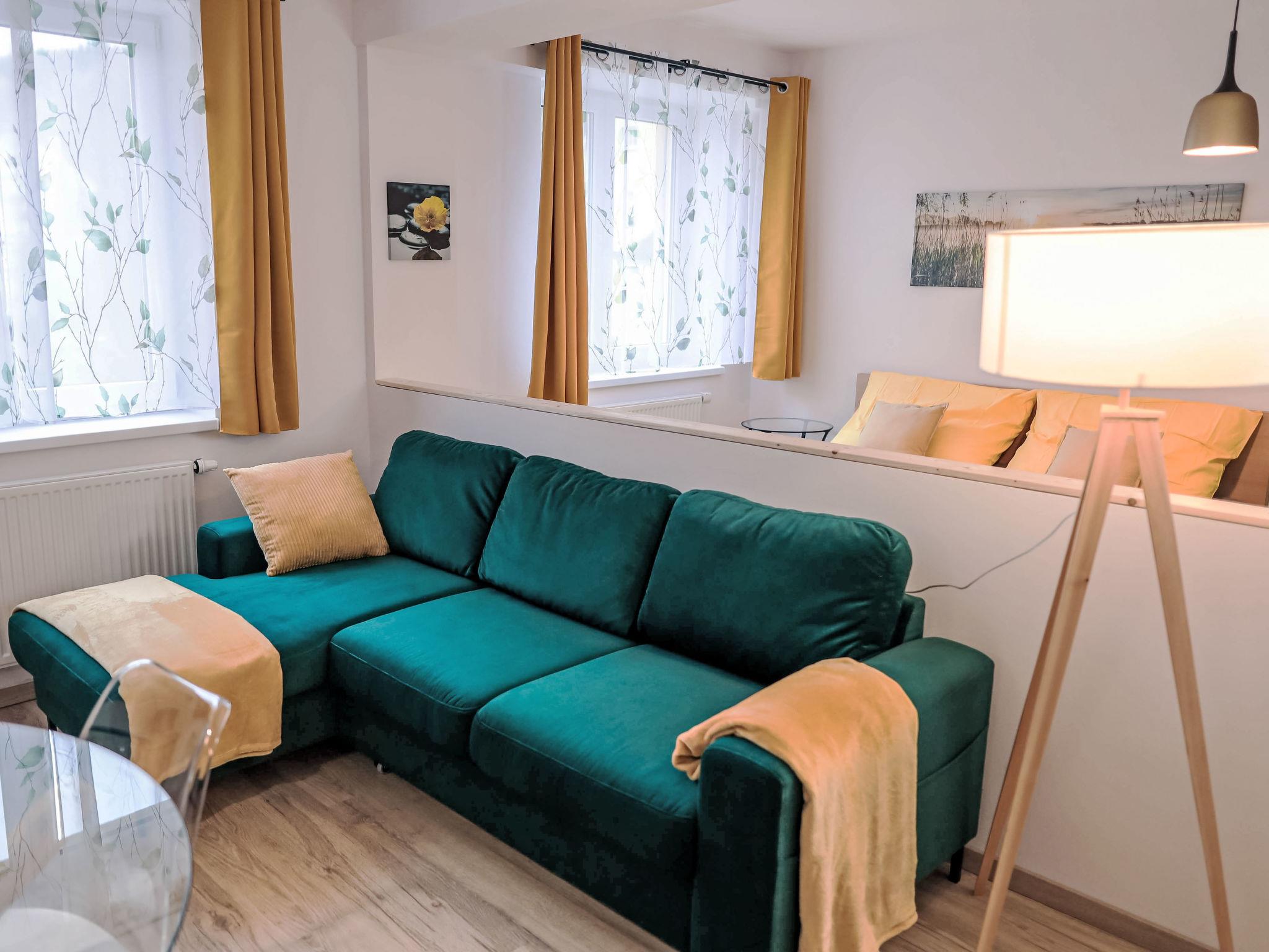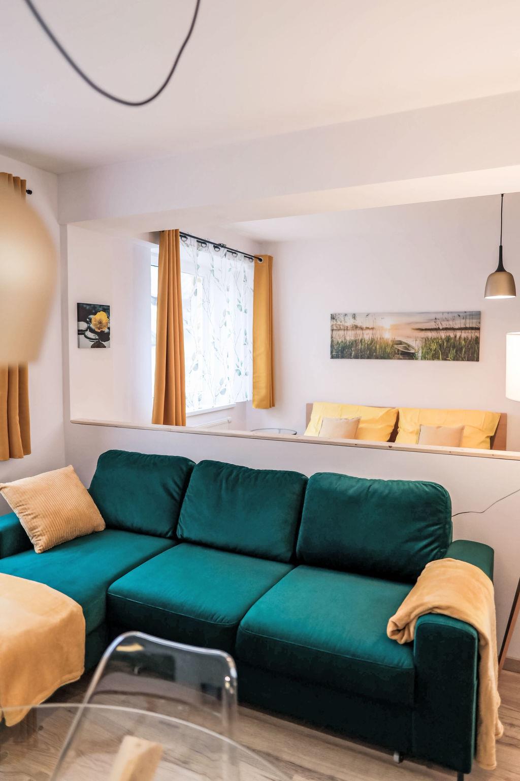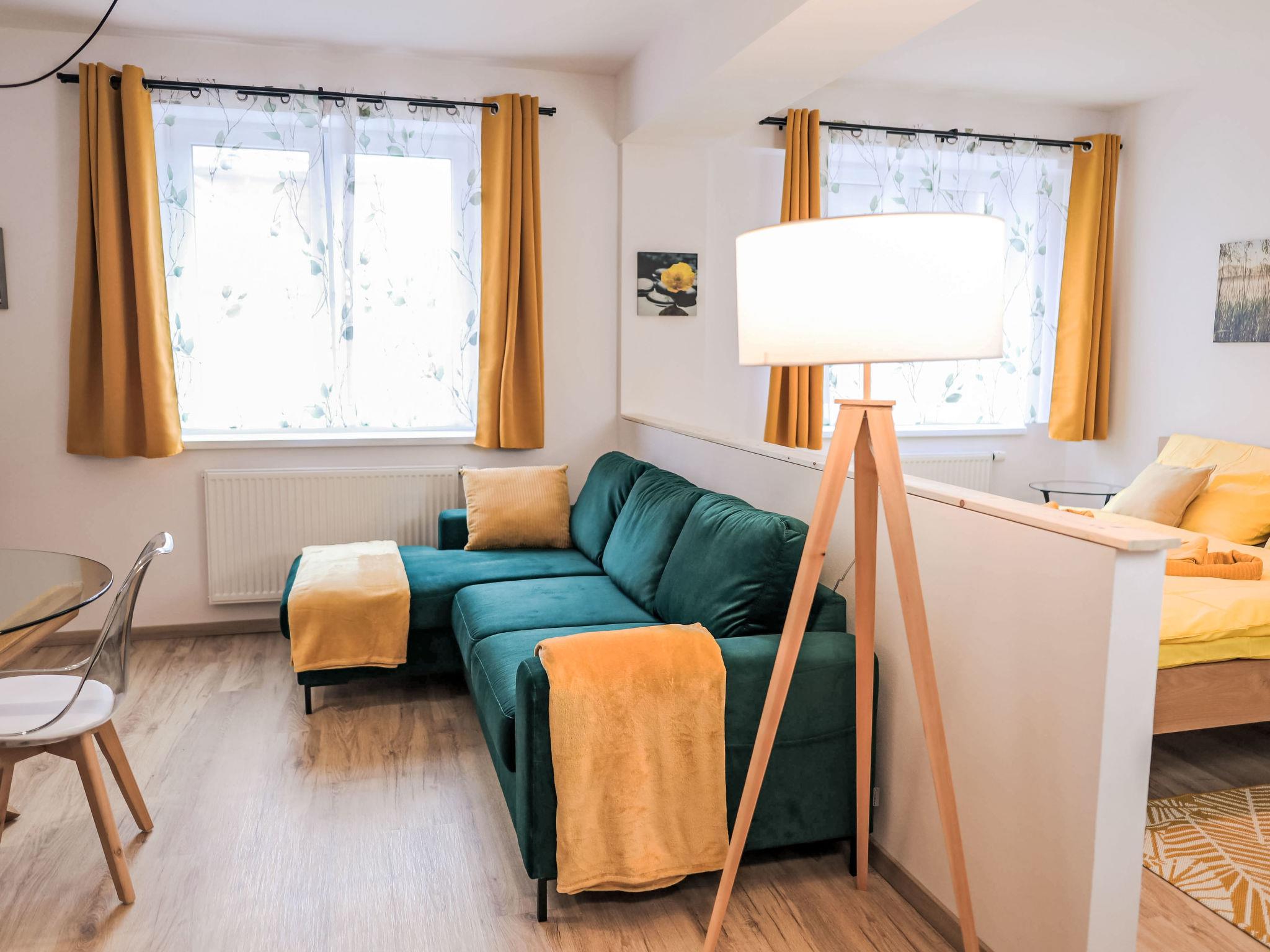 "Atom", 1-room apartment 40 m2 on 3rd floor. Living/sleeping room with 1 double sofabed, 1 double bed and TV. Kitchenette (2 hot plates, toaster, kettle, microwave, freezer). Shower/WC. Electric heating. View of the countryside. Facilities: hair dryer. Internet (WiFi, free). Parking at the house. Please note: suitable for families. Non-smokers only.