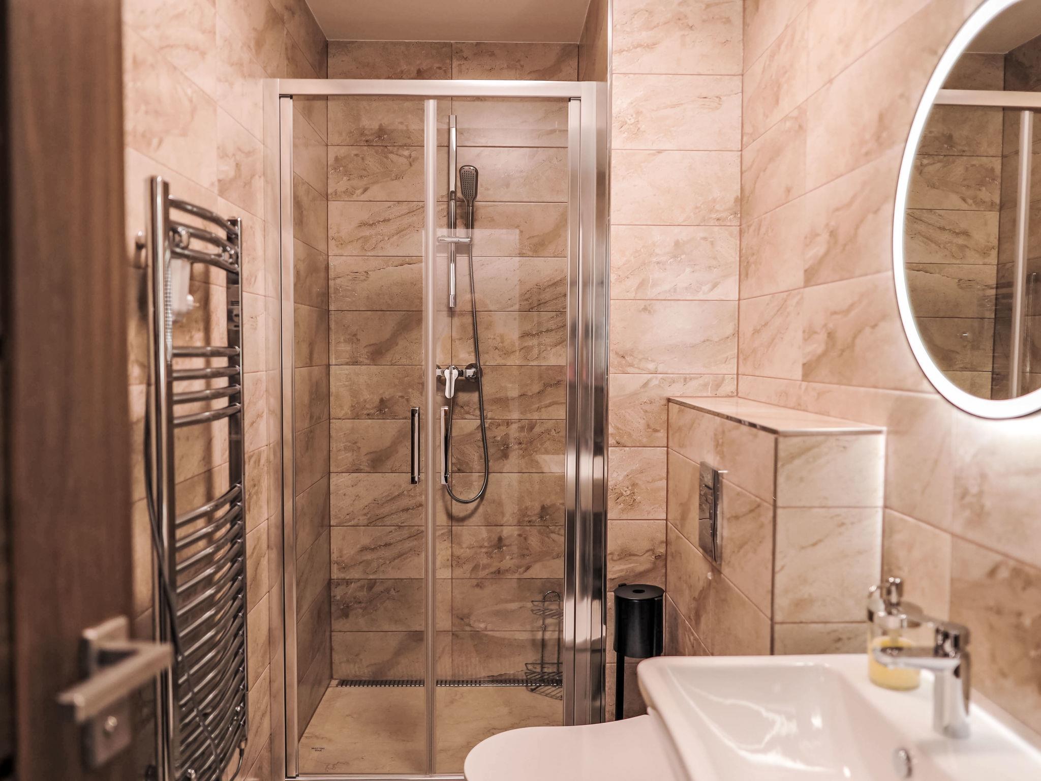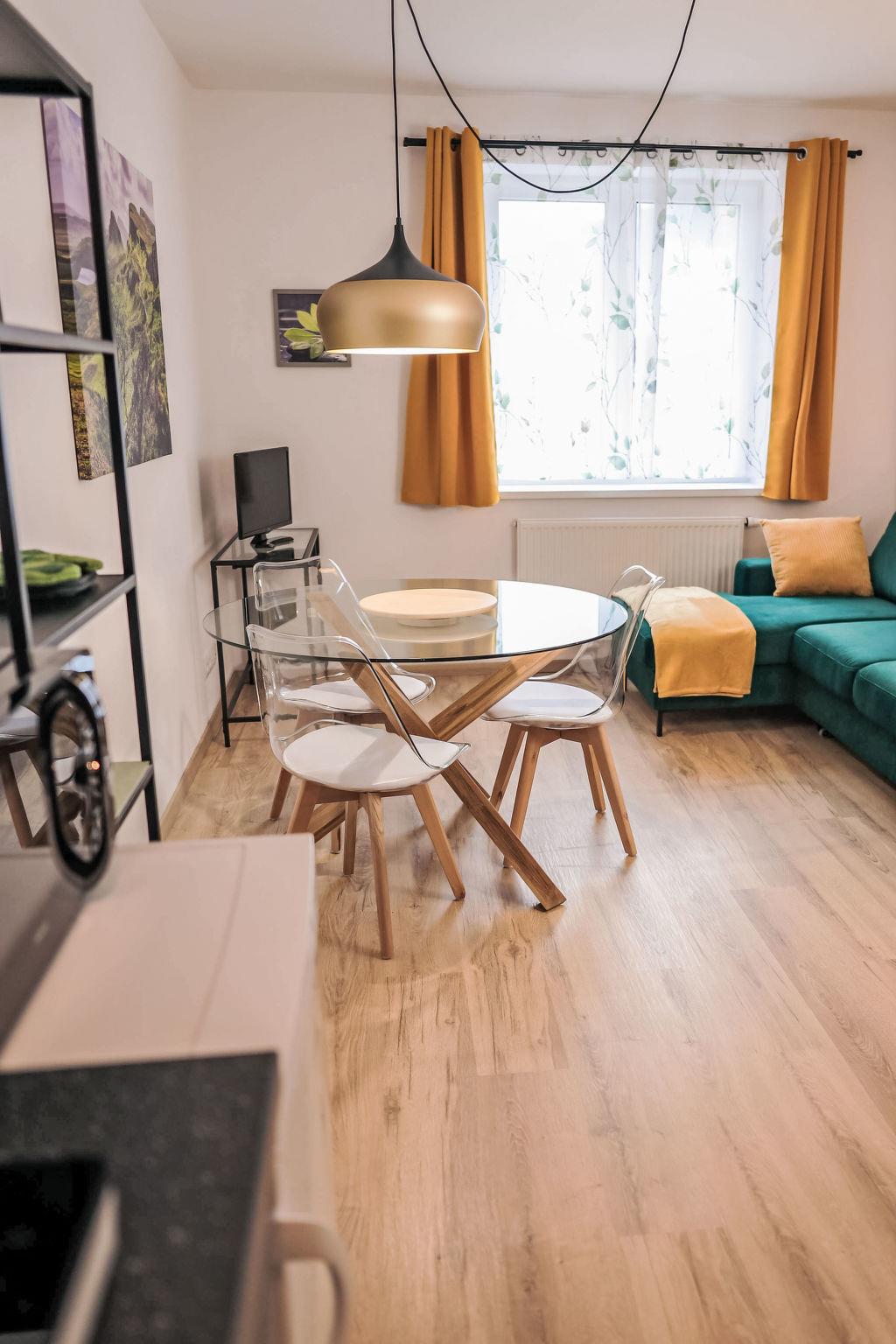 Modern apartment block, 4 storeys, built in 2023. In the centre of Jáchymov, 2.5 km from the skiing area. In the house: lift, central heating system. Breakfast on request (extra). Storeroom available. Parking at the house. Grocery 100 m, supermarket 150 m, shopping centre 6 km, restaurant 100 m, pub garden, bus stop "Jáchymov" 150 m, outdoor swimming pool 15 km, indoor swimming pool 150 m. Walking paths from the house 10 m, cycle lane, chair lift 2.5 km, slopes 2.5 km, ski rental 2.5 km, ski bus stop 30 m, ski school 2.5 km, cross country ski track 5 km, ice rink 6 km, children's playground 500 m. Nearby attractions: Aqua Centre Agricola 500 m, Spa&Wellness Centre 500 m, Boží Dar 8 km, Karlovy Vary 20 km, Oberwiesetnhal 13 km, Annaberg-Buchholz 33 m. Well-known ski regions can easily be reached: Klínovec 2.5 km, Plešivec 13 km, Fichtelberg 11 km. Hiking paths: Krušnohorská magistrála, Ježíškova cesta. Please note: baby equipment on request (extra). Smoking is prohibited in all areas of the building and, with the exception of the ground floor, the use of ski boots is also prohibited.
