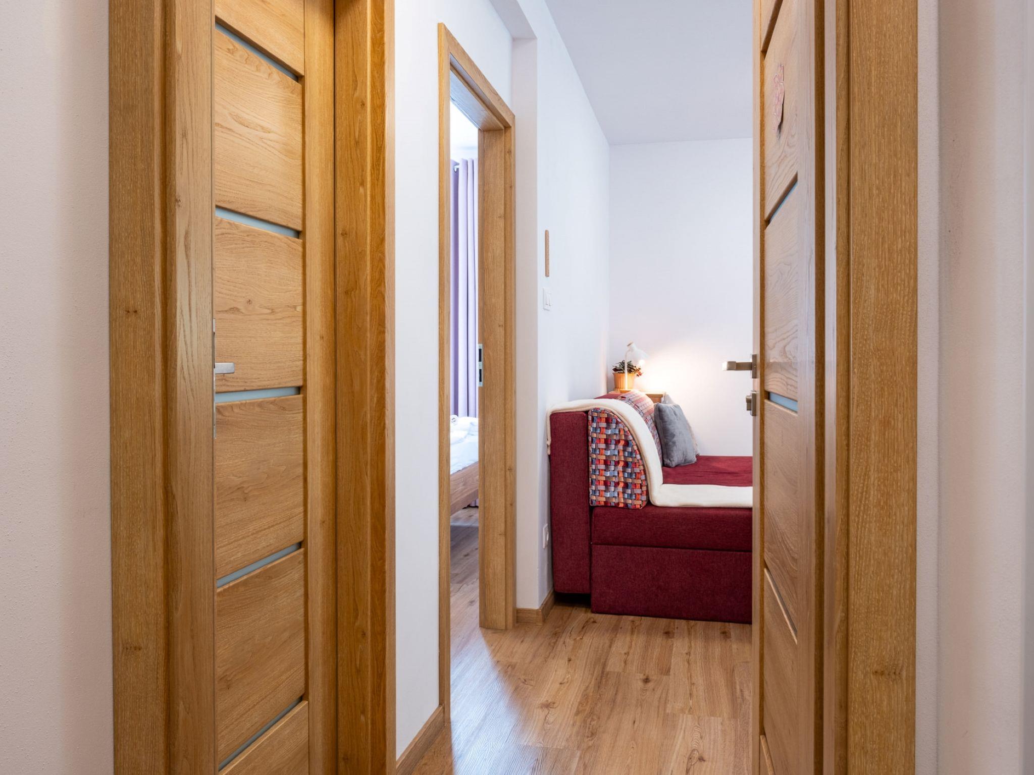 "Large Mandala & Sauna", 2-room apartment 48 m2. Very beautiful furnishings: living/dining room with 1 double sofabed, Scandinavian wood stove, dining table and TV (flat screen). 1 room with 1 double bed. Kitchenette (oven, dishwasher, 4 ceramic glass hob hotplates, toaster, kettle, microwave, electric coffee machine). Bath/bidet/WC. Heating, floor heating. Balcony. Balcony furniture. View of the mountains, the forest and the town. Facilities: sauna, hair dryer. Internet (WiFi, free). Parking (roofed, 1 car). Please note: suitable for families. Non-smokers only. Nespresso coffee machine. Bidet shower. Cellar with shoe dryer. Possibility of connection with apartment CZ3625.250.13.