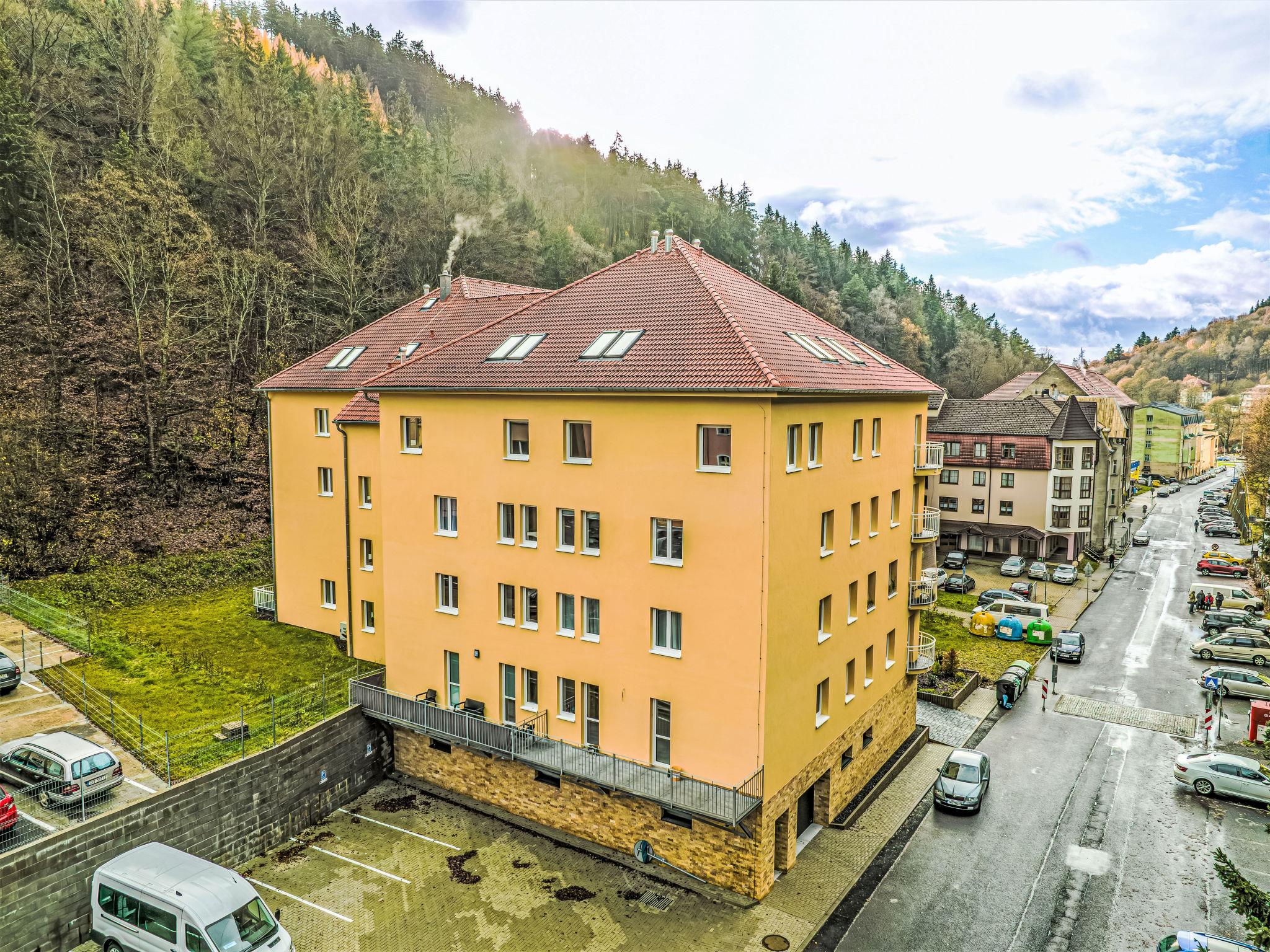 Modern apartment block, 4 storeys, built in 2023. In the centre of Jáchymov, 2.5 km from the skiing area. In the house: lift, central heating system. Breakfast on request (extra). Storeroom available. Parking at the house. Grocery 100 m, supermarket 150 m, shopping centre 6 km, restaurant 100 m, pub garden, bus stop "Jáchymov" 150 m, outdoor swimming pool 15 km, indoor swimming pool 150 m. Walking paths from the house 10 m, cycle lane, chair lift 2.5 km, slopes 2.5 km, ski rental 2.5 km, ski bus stop 30 m, ski school 2.5 km, cross country ski track 5 km, ice rink 6 km, children's playground 500 m. Nearby attractions: Aqua Centre Agricola 500 m, Spa&Wellness Centre 500 m, Boží Dar 8 km, Karlovy Vary 20 km, Oberwiesetnhal 13 km, Annaberg-Buchholz 33 m. Well-known ski regions can easily be reached: Klínovec 2.5 km, Plešivec 13 km, Fichtelberg 11 km. Hiking paths: Krušnohorská magistrála, Ježíškova cesta. Please note: baby equipment on request (extra). Smoking is prohibited in all areas of the building and, with the exception of the ground floor, the use of ski boots is also prohibited.