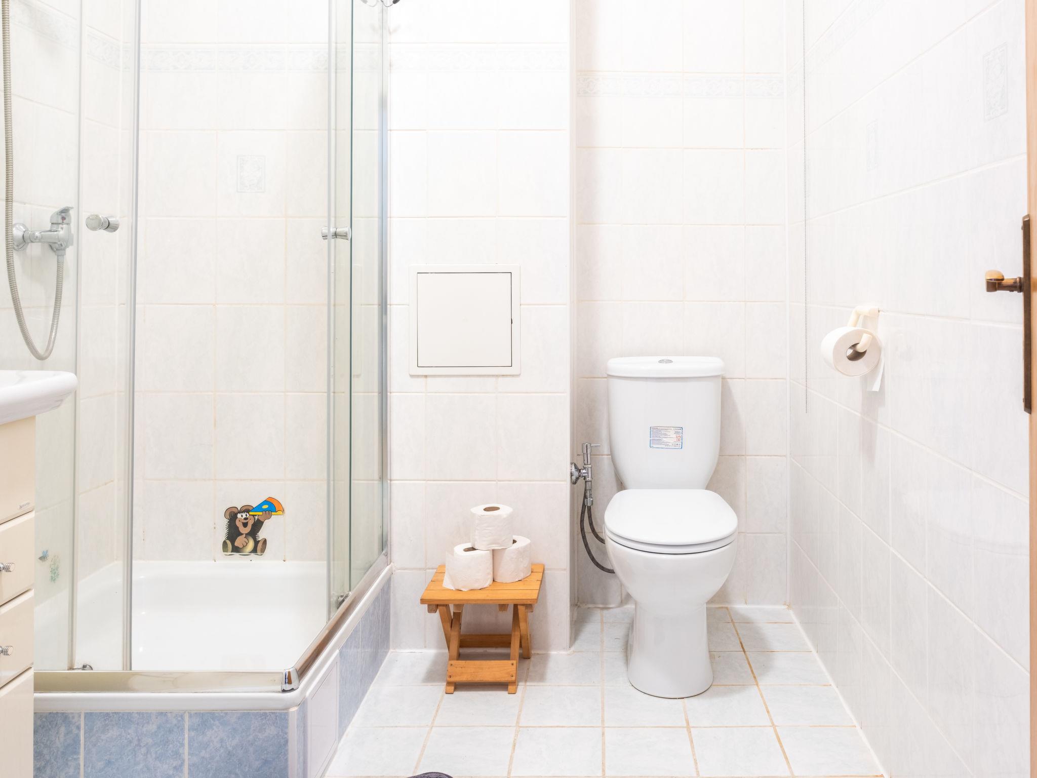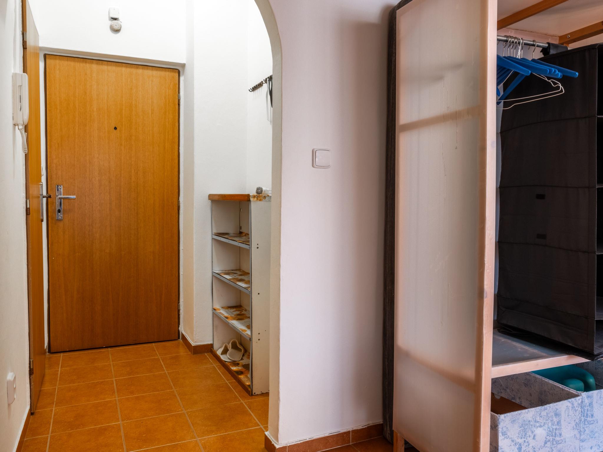 "ProFamily", 2-room apartment 45 m2 on 1st floor. Object suitable for 2 adults + 3 children. Simple furnishings: 1 room with 1 x 3 bunk beds, dining table and satellite TV. 1 room with 1 double bed. Kitchen (oven, 4 ceramic glass hob hotplates, kettle, microwave, freezer). Shower/WC. Facilities: Internet (WiFi, free). Parking space n 60. Please note: suitable for families. Non-smokers only. 1 small pet/ dog allowed.