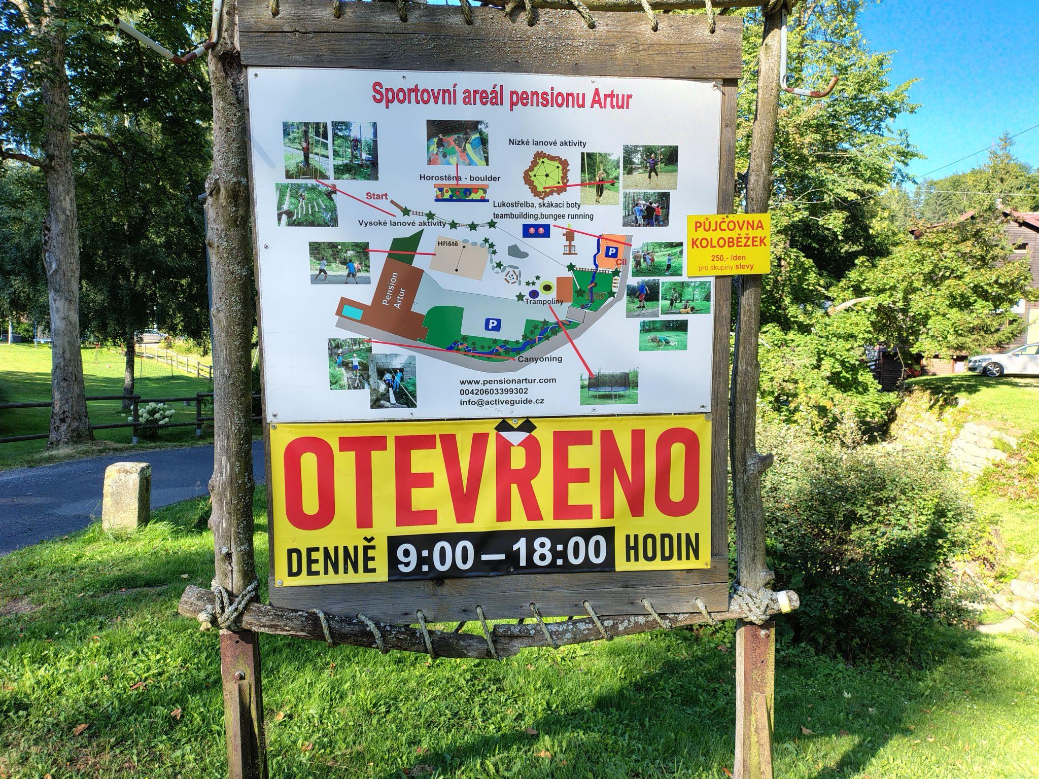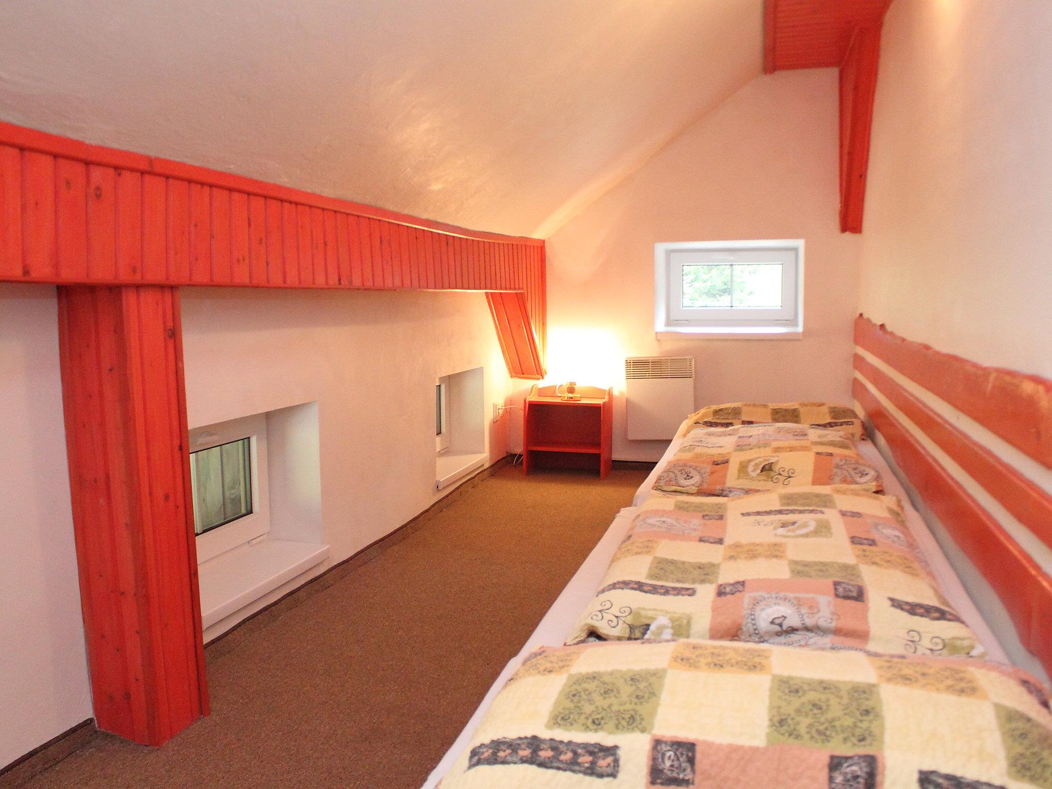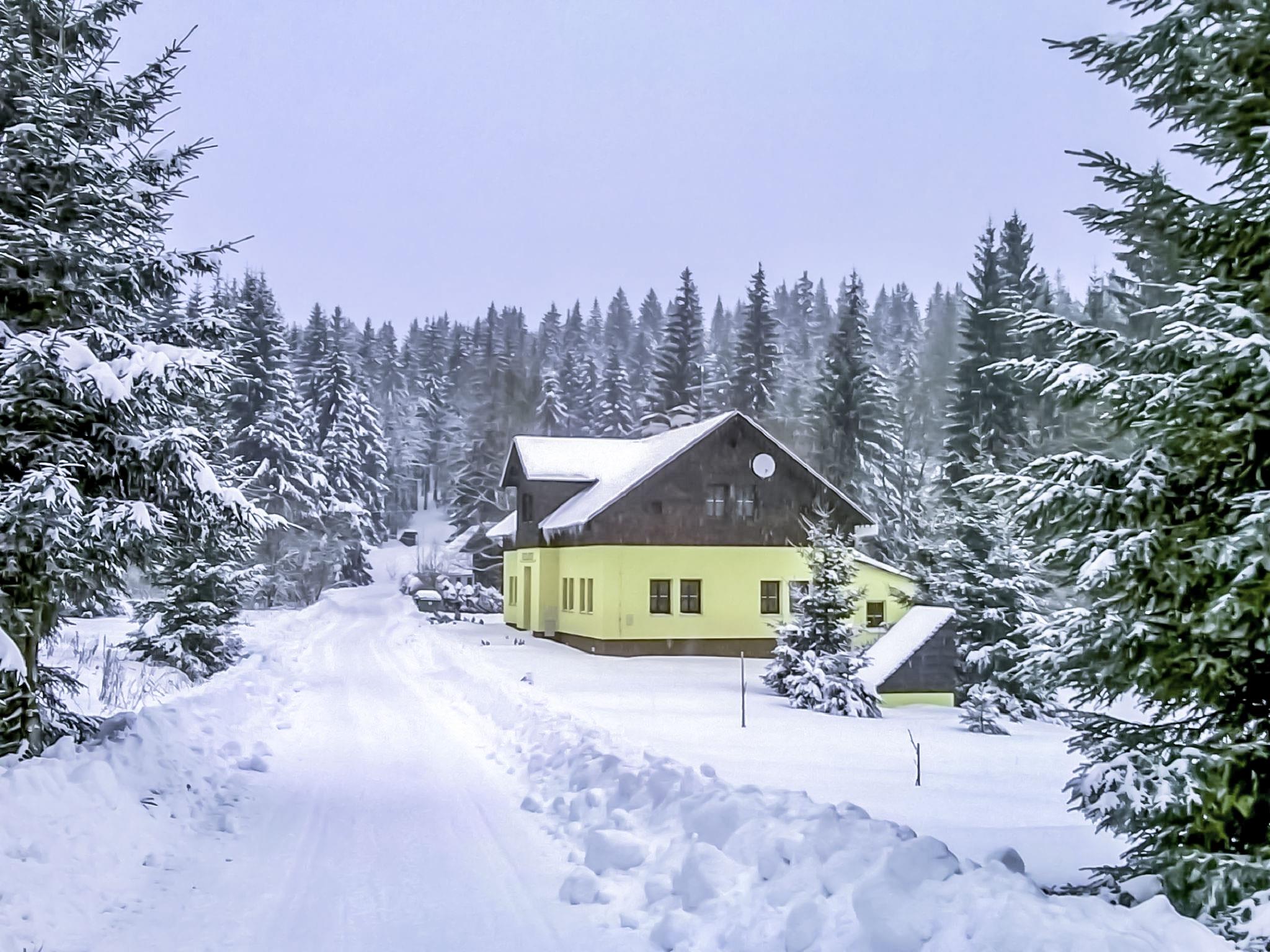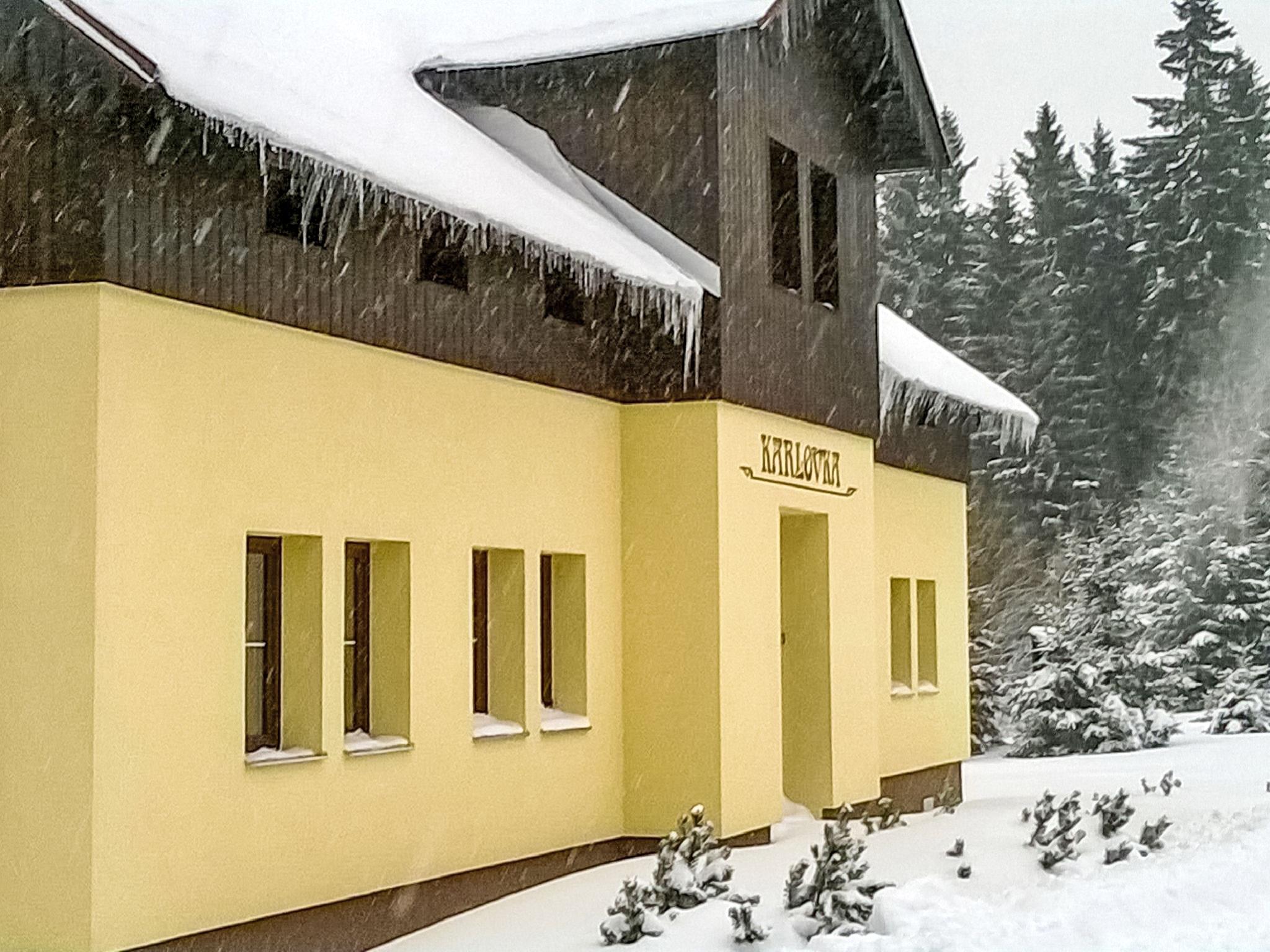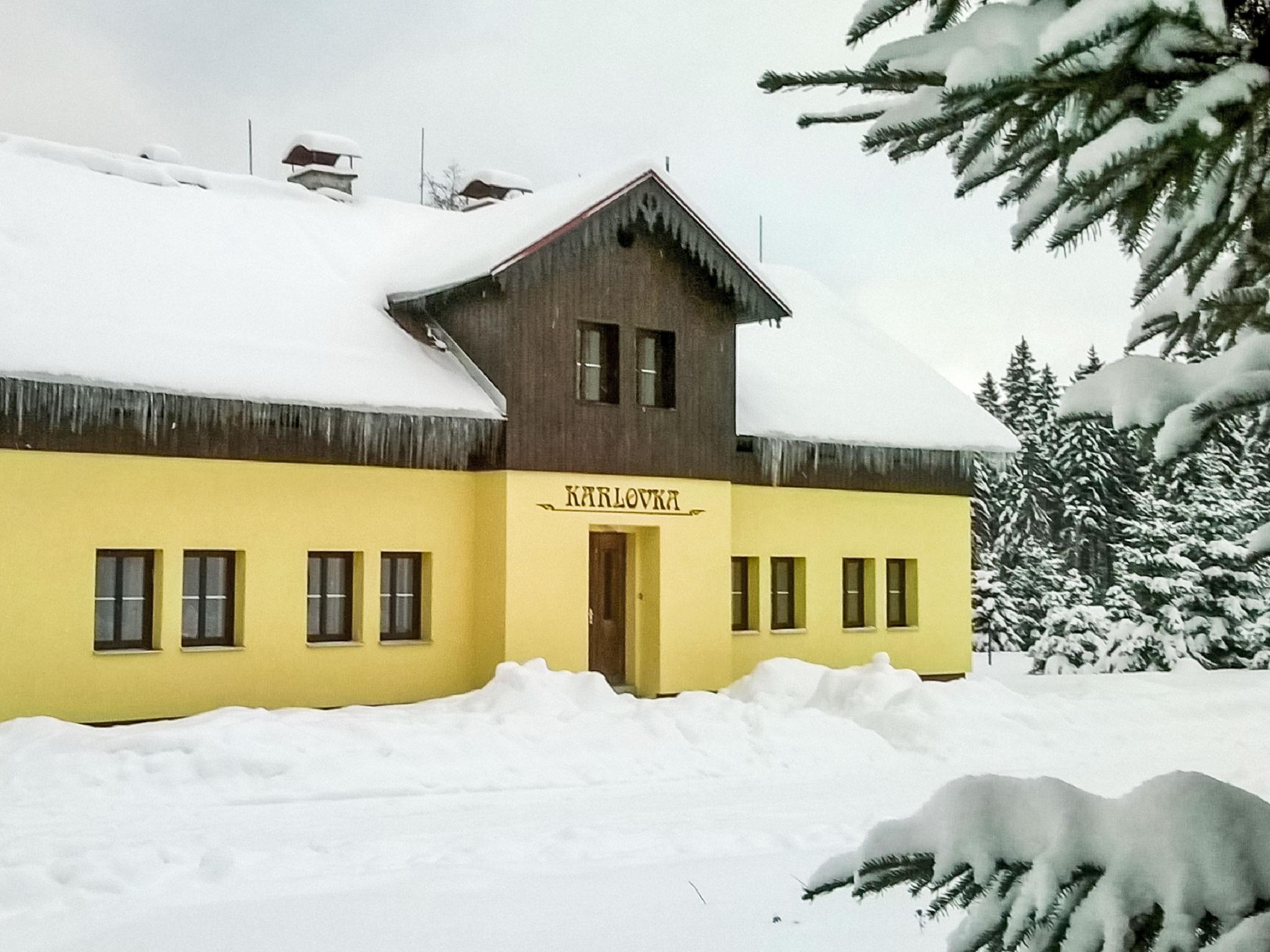 Karlov, 1 km from Janov nad Nisou: Large chalet "Karlovka", 2 storeys. Outside the resort, in a secluded, quiet, sunny position, 30 m from the edge of the forest, 50 m from the stream, in the countryside. Private: large garden with lawn. Patio, fireplace, children's playground. Motor access to the house. In Winter: please take snow chains. Parking at the house. Grocery 1 km, restaurant 1 km, bus stop 400 m. Skisport facilities, ski school 800 m, cross country ski track 200 m. Nearby cross country ski circuit "Magistral" (120 km). Cross country ski trail 950 km) nearby by the house. Ski area "Severak" 800 m. In summer, walking and bike paths. Area rich in Mushrooms. Small garden, barbecue area. Parking in fromt of the house. Electric heating.