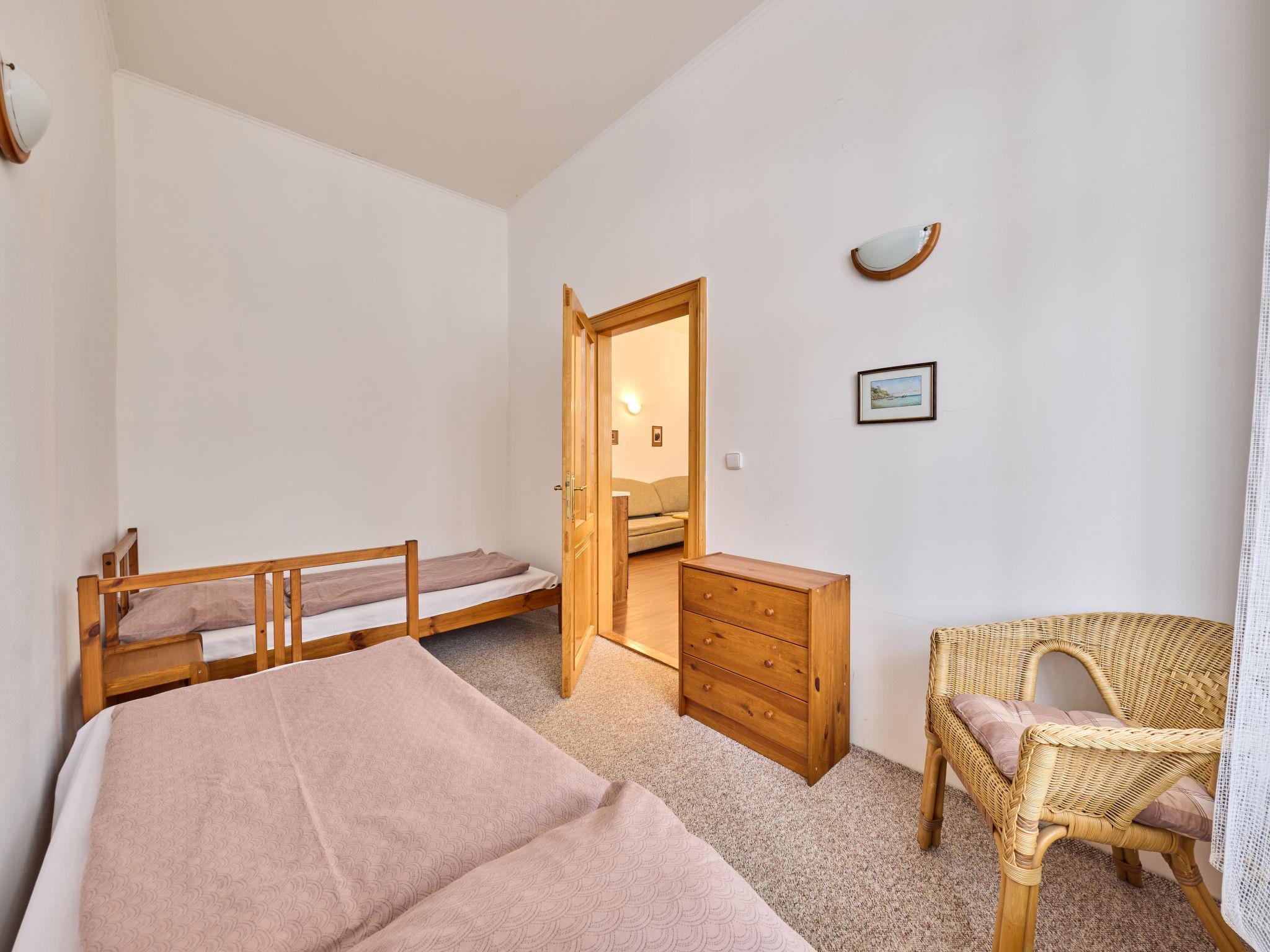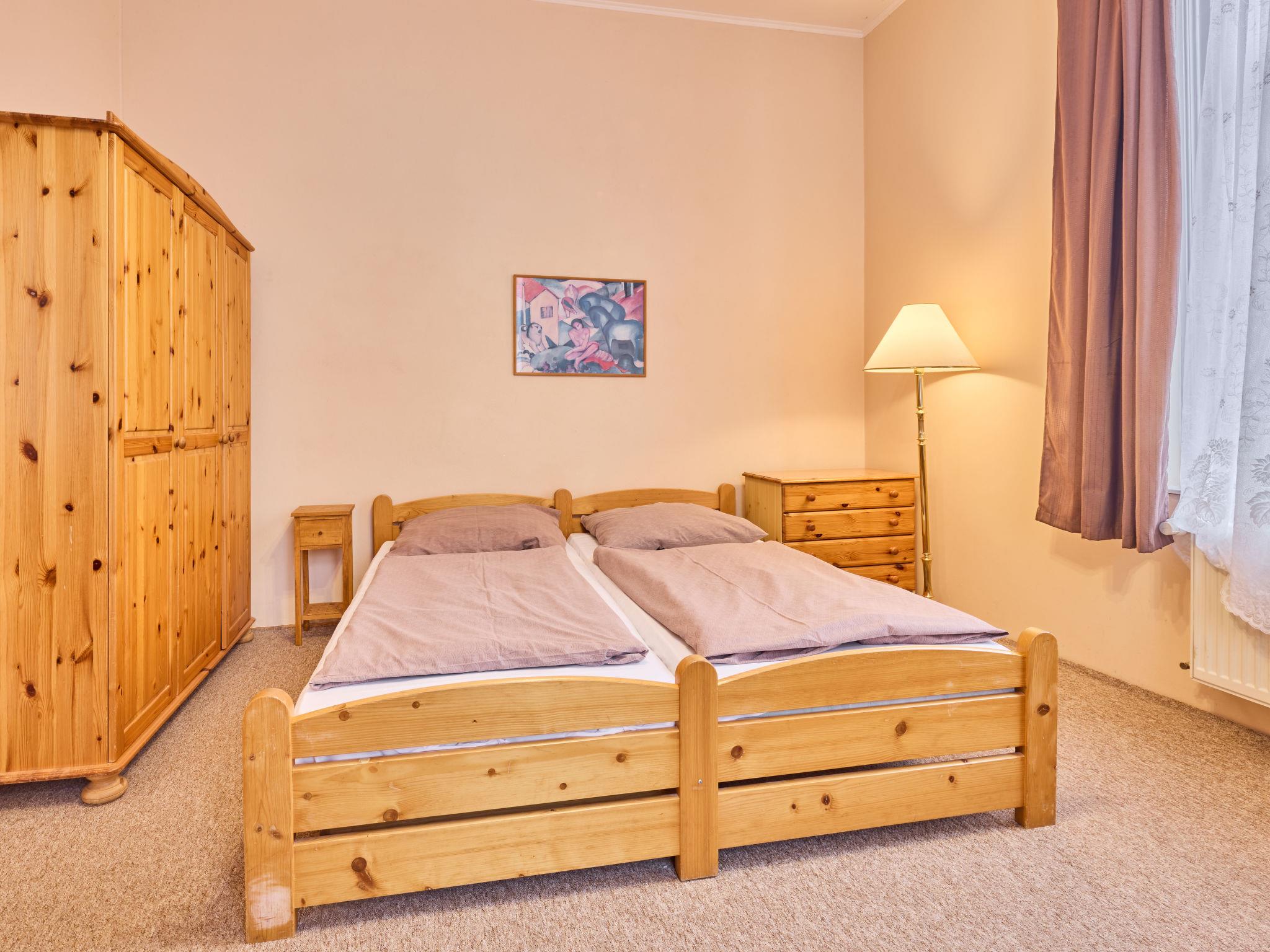 3-room apartment on the ground floor. Stylish and cosy furnishings: living/sleeping room with 1 double bed and shower/WC. Living/sleeping room with 2 beds. Kitchen-/living room (1 ceramic glass hob hotplate, kettle, freezer) with 1 sofabed. Wooden floors. Suitable for families. Maximum 1 pet/ dog allowed.