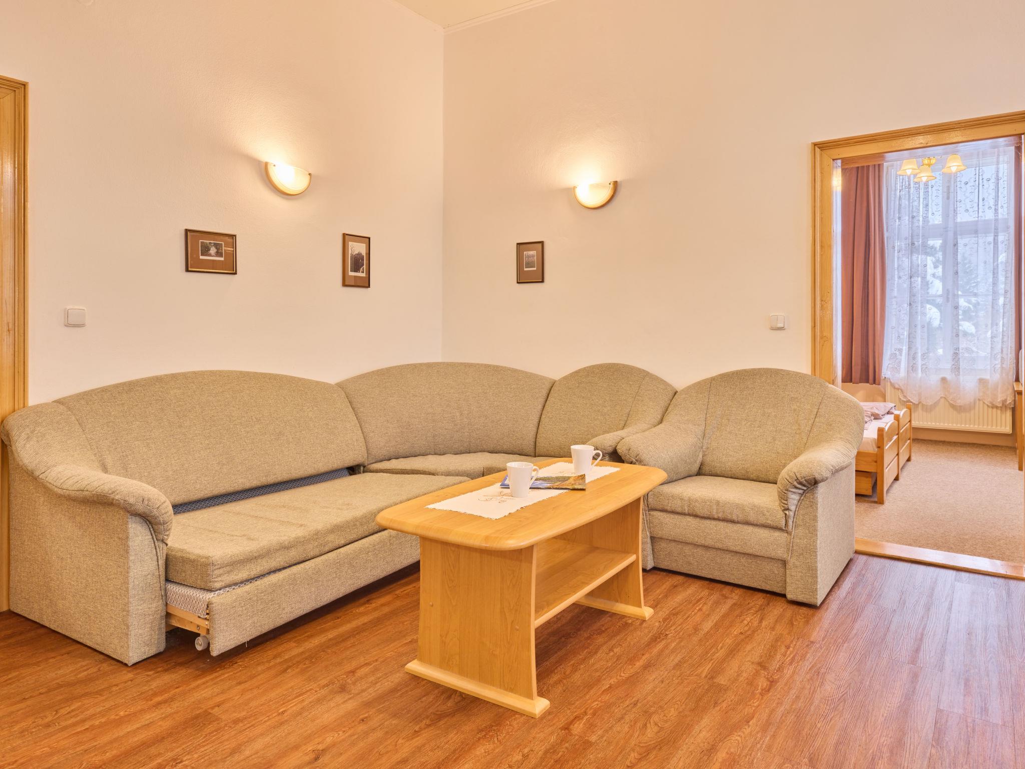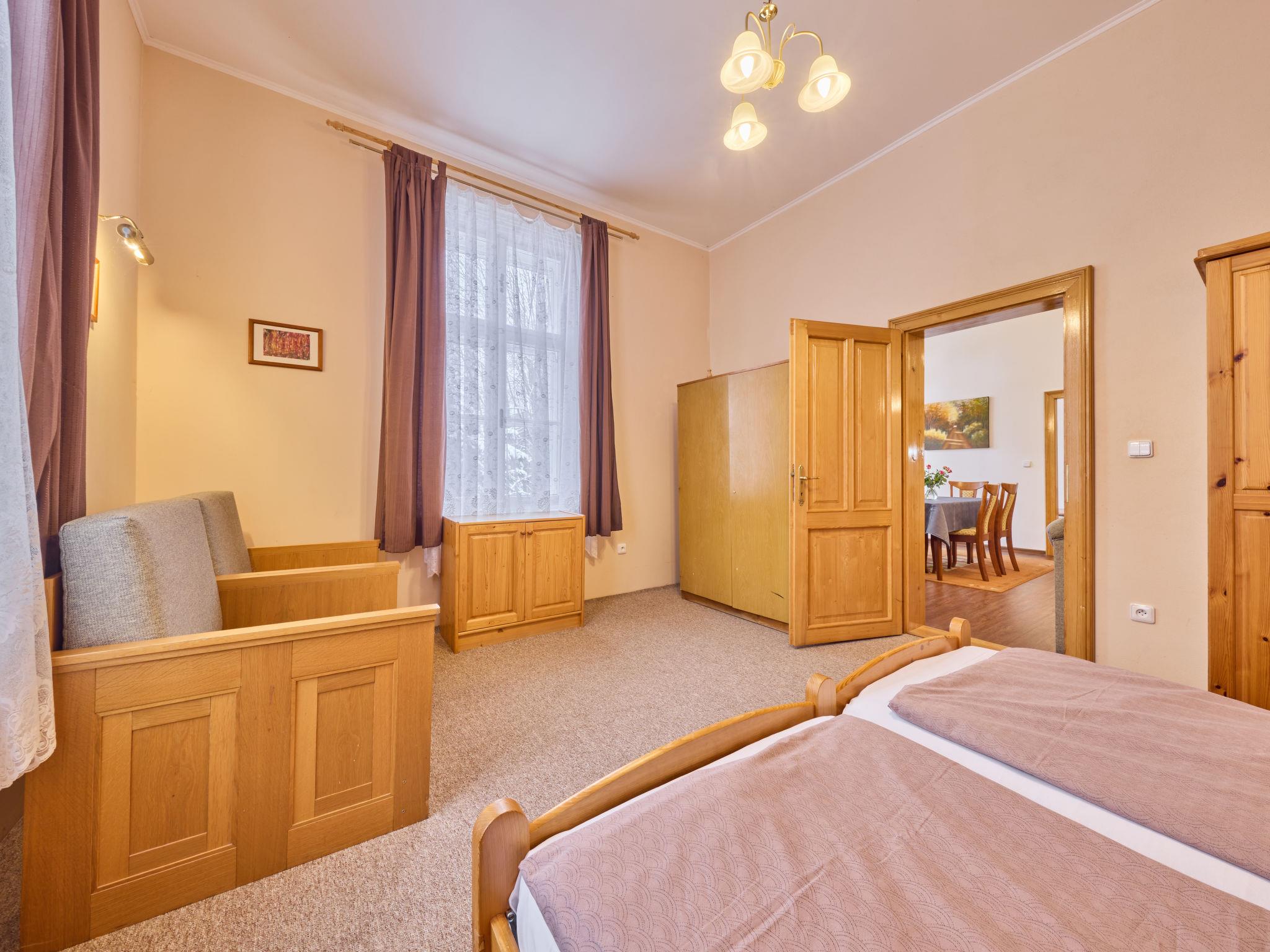 Cosy, rustic apartment house "Stríbrný pramen", detached. In the resort, 200 m from the centre, in a sunny position, 500 m from the skiing area. Private: pergola (10 m2). In the house: central heating system. Linen change (suppl. charge extra). Towel change (suppl. charge extra). Room cleaning on request (extra). Parking at the house, public parking extra. Grocery 300 m, restaurant 50 m, bus stop "Janské Lázne - Lesní dum" 300 m, railway station "Svoboda nad Úpou" 3.3 km, park "Farmapark Muchomurka" 1 km, outdoor swimming pool 7 km, indoor swimming pool, thermal baths 400 m. Tennis 1 km, minigolf 400 m, cycle lane 100 m, cable car 600 m, ski lift 300 m, chair lift 500 m, gondola lift 600 m, slopes, ski rental 300 m, ski school 400 m, children's ski school 300 m, sled run, cross country ski track 700 m. Nearby attractions: Lanovka na Cernou horu 600 m, Janské Lázne Spa, Stezka korunami stromu 1 km, bobová dráha 5 km, Pec pod Snežkou, Relaxpark, bobová dráha 11 km, Vrchlabí 10 km, Trutnov 12 km, Malá Úpa 15 km, Zoo Dvur Králové, Adršpach 35, Karpacz 40 km. Well-known ski regions can easily be reached: SkiResort CERNÁ HORA - PEC, Mladé Buky 5 km, Horní Malá Úpa 16 km, Špindleruv Mlýn 30 km. Hiking paths: krkonošské naucné stezky. Please note: no lift. The owner lives in the same residence. The apartment is located in a zone with limited traffic.
