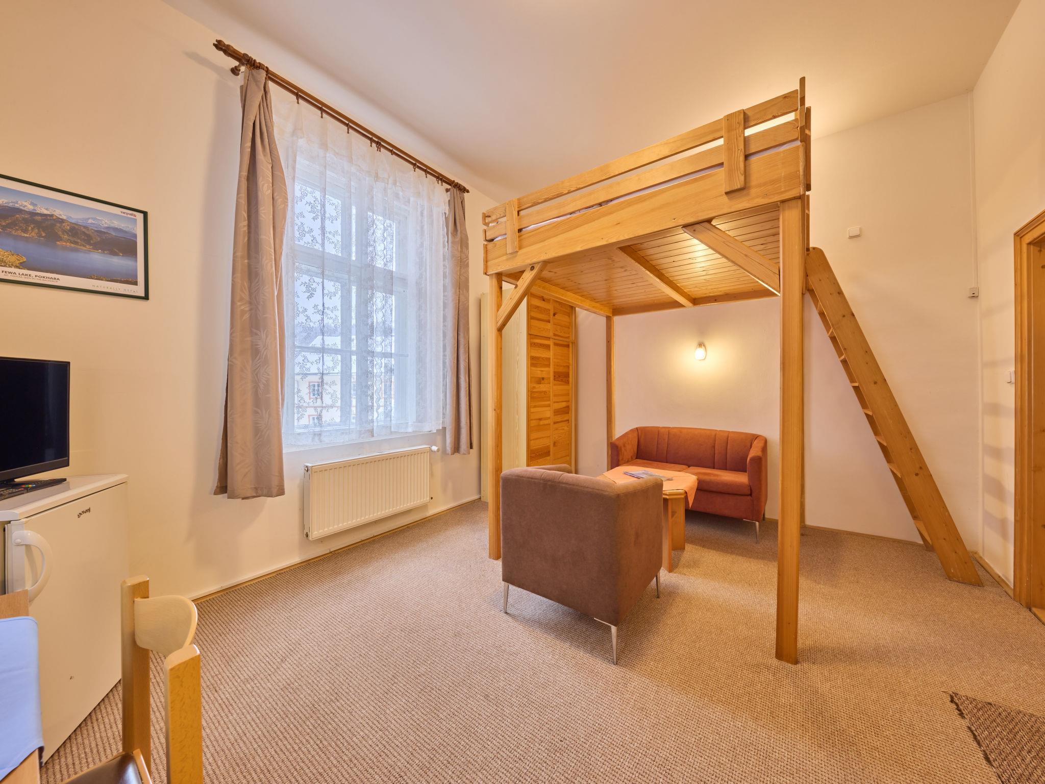 Cosy, rustic apartment house "Stríbrný pramen", detached. In the resort, 200 m from the centre, in a sunny position, 500 m from the skiing area. Private: pergola (10 m2). In the house: central heating system. Linen change (suppl. charge extra). Towel change (suppl. charge extra). Room cleaning on request (extra). Parking at the house, public parking extra. Grocery 300 m, restaurant 50 m, bus stop "Janské Lázne - Lesní dum" 300 m, railway station "Svoboda nad Úpou" 3.3 km, park "Farmapark Muchomurka" 1 km, outdoor swimming pool 7 km, indoor swimming pool, thermal baths 400 m. Tennis 1 km, minigolf 400 m, cycle lane 100 m, cable car 600 m, ski lift 300 m, chair lift 500 m, gondola lift 600 m, slopes, ski rental 300 m, ski school 400 m, children's ski school 300 m, sled run, cross country ski track 700 m. Nearby attractions: Lanovka na Cernou horu 600 m, Janské Lázne Spa, Stezka korunami stromu 1 km, bobová dráha 5 km, Pec pod Snežkou, Relaxpark, bobová dráha 11 km, Vrchlabí 10 km, Trutnov 12 km, Malá Úpa 15 km, Zoo Dvur Králové, Adršpach 35, Karpacz 40 km. Well-known ski regions can easily be reached: SkiResort CERNÁ HORA - PEC, Mladé Buky 5 km, Horní Malá Úpa 16 km, Špindleruv Mlýn 30 km. Hiking paths: krkonošské naucné stezky. Please note: no lift. The owner lives in the same residence. The apartment is located in a zone with limited traffic.