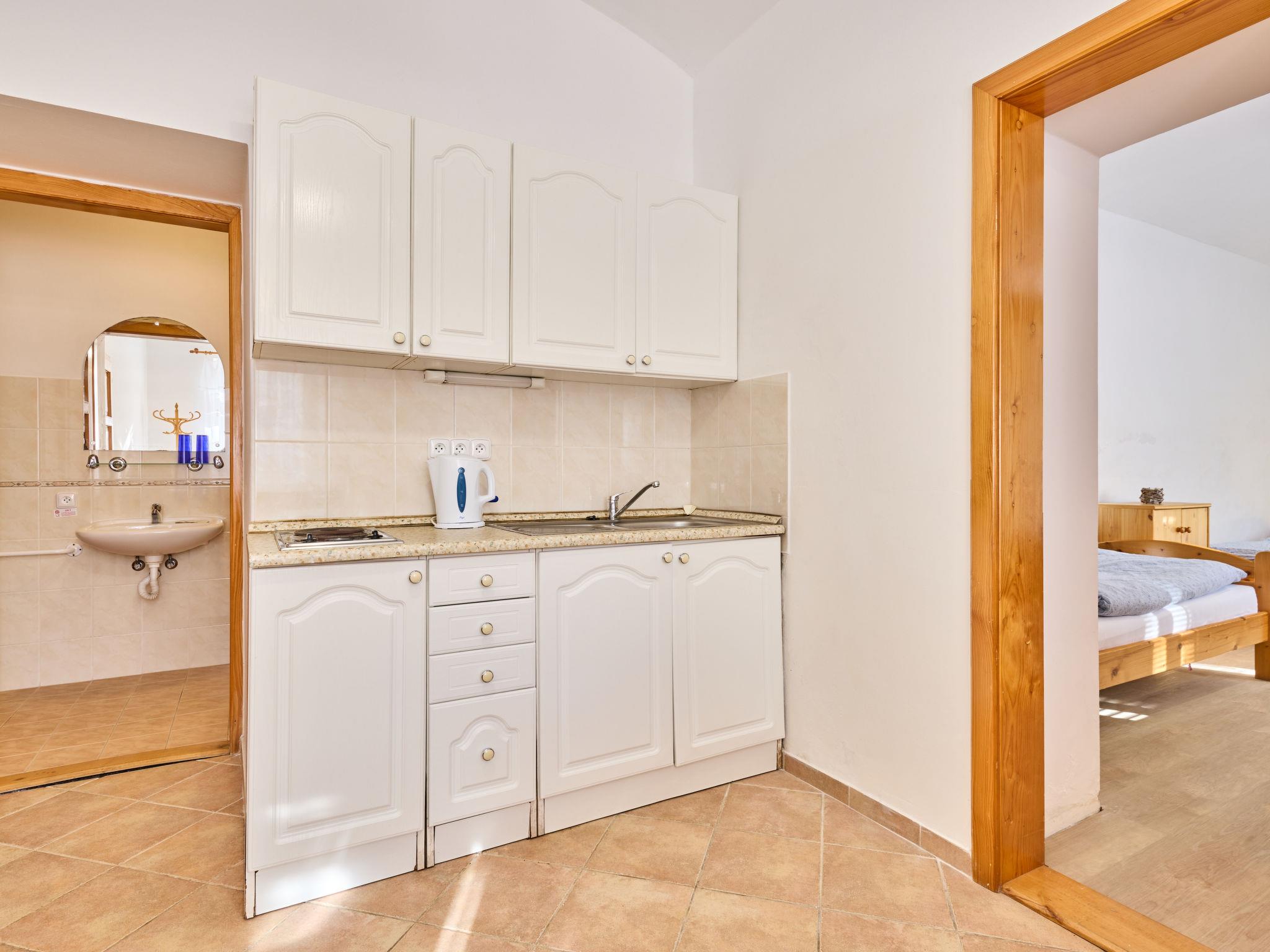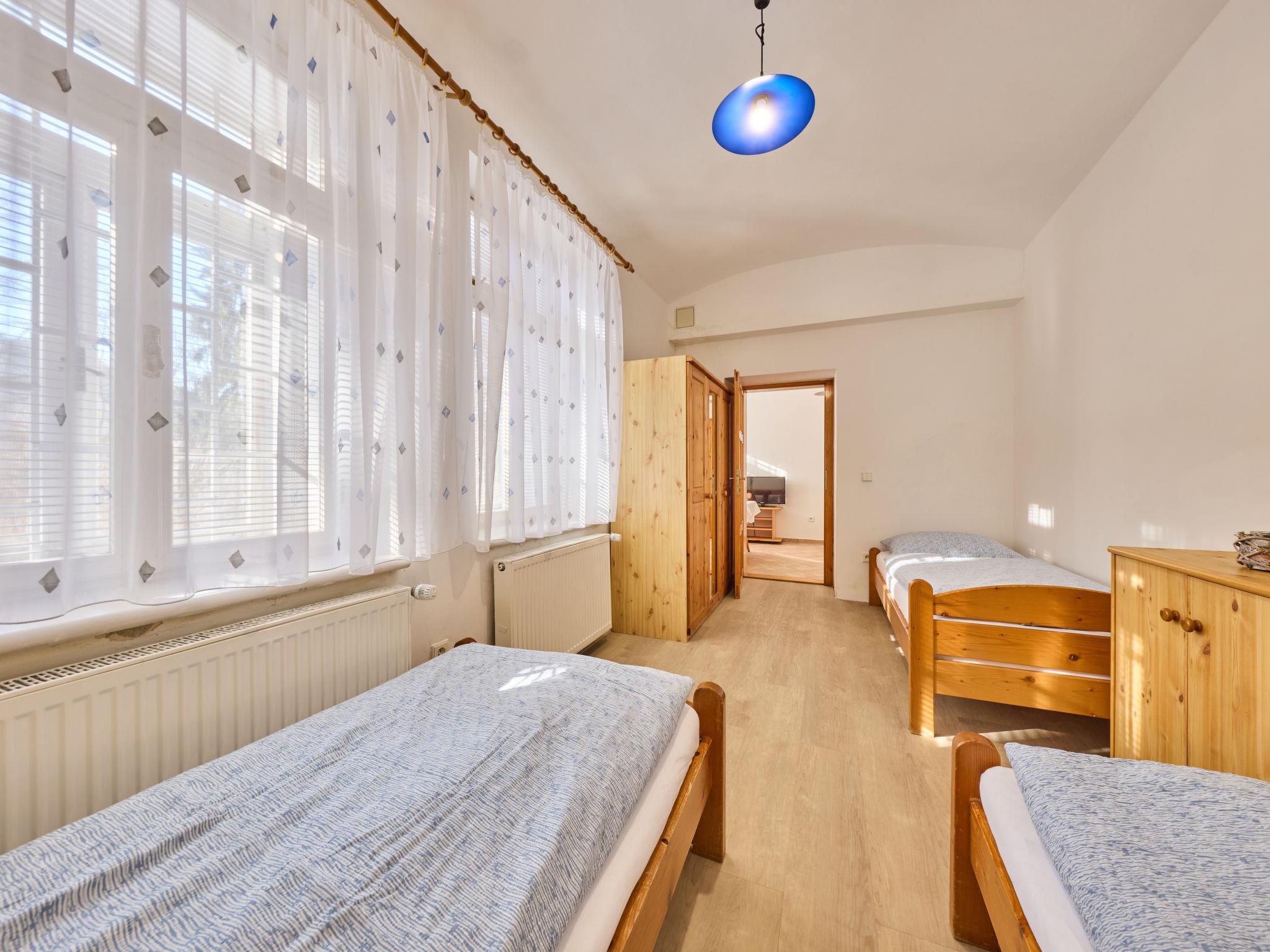 2-room apartment on the ground floor. Bright, beautiful furnishings: living/dining room with TV. 1 room with 3 beds. Kitchenette (2 hot plates, microwave, electric coffee machine). Shower/WC. Facilities: Internet (WiFi, free). Please note: suitable for families. TV only CS.