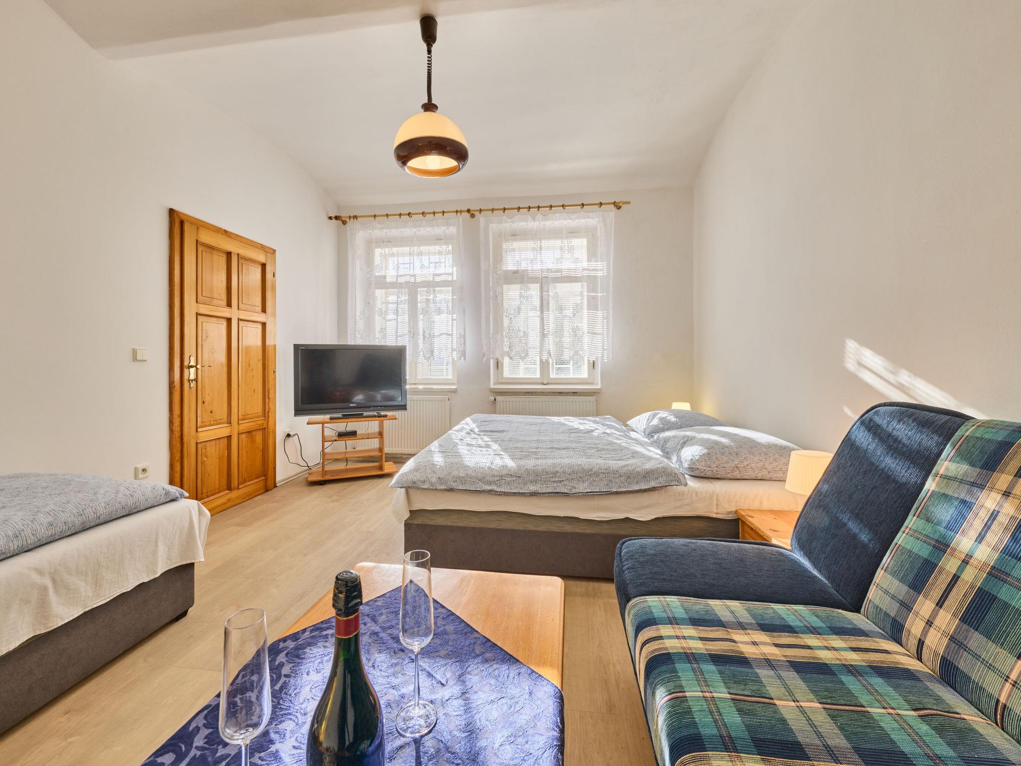 Cosy, rustic residence "Villa Belvedere", detached. 10 apartments in the residence. In the resort, 200 m from the centre, in a sunny position, 500 m from the skiing area. In the house: central heating system. Linen change (suppl. charge extra). Towel change (suppl. charge extra). Room cleaning on request (extra). Parking at the house, public parking extra. Grocery 300 m, restaurant 50 m, bus stop "Janské Lázne - Lesní dum" 300 m, railway station "Svoboda nad Úpou" 3.3 km, park "Farmapark Muchomurka" 1 km, outdoor swimming pool 7 km, indoor swimming pool 400 m. Tennis 1 km, minigolf 400 m, cycle lane 100 m, cable car 600 m, ski lift 300 m, chair lift 500 m, gondola lift 600 m, slopes 300 m, ski rental 300 m, ski school 400 m, children's ski school 300 m, sled run 700 m, cross country ski track. Nearby attractions: Lanovka na Cernou horu 600 m, Janské Lázne Spa, Stezka korunami stromu 1 km, bobová dráha 5 km, Pec pod Snežkou, Relaxpark, bobová dráha 11 km, Vrchlabí 10 km, Trutnov 12 km, Malá Úpa 15 km, Zoo Dvur Králové, Adršpach 35, Karpacz 40 km. Well-known ski regions can easily be reached: SkiResort CERNÁ HORA - PEC, Mladé Buky 5 km, Horní Malá Úpa 16 km, Špindleruv Mlýn 30 km. Hiking paths: krkonošské naucné stezky. Please note: no lift.