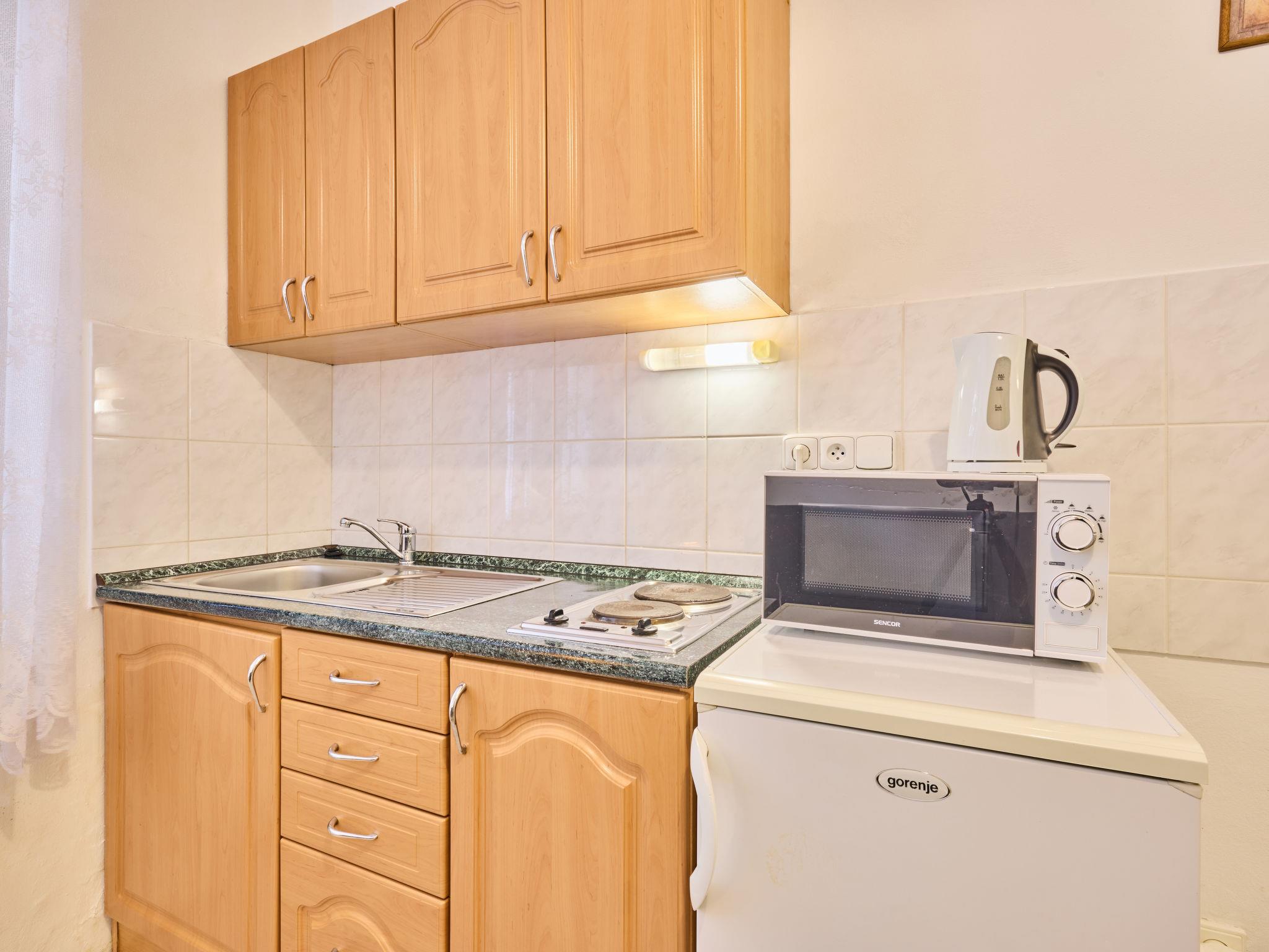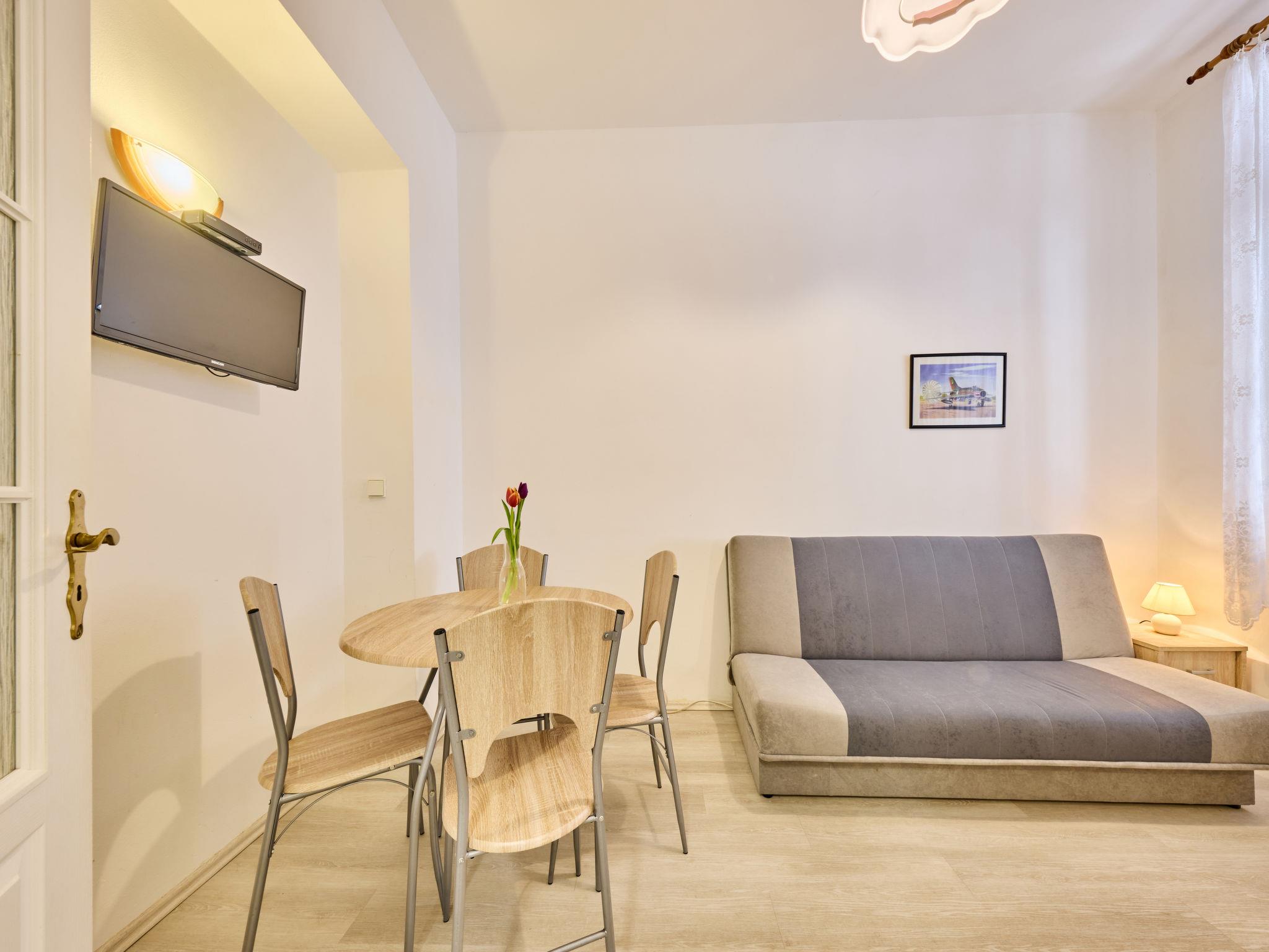2-room apartment on the ground floor. Object suitable for 2 adults. Practical and modern furnishings: living/sleeping room with 1 double bed. Kitchen-/living room (2 hot plates, microwave) with 1 sofabed, shower/WC and TV. View of the forest. Please note: non-smokers only, non-smoking house.