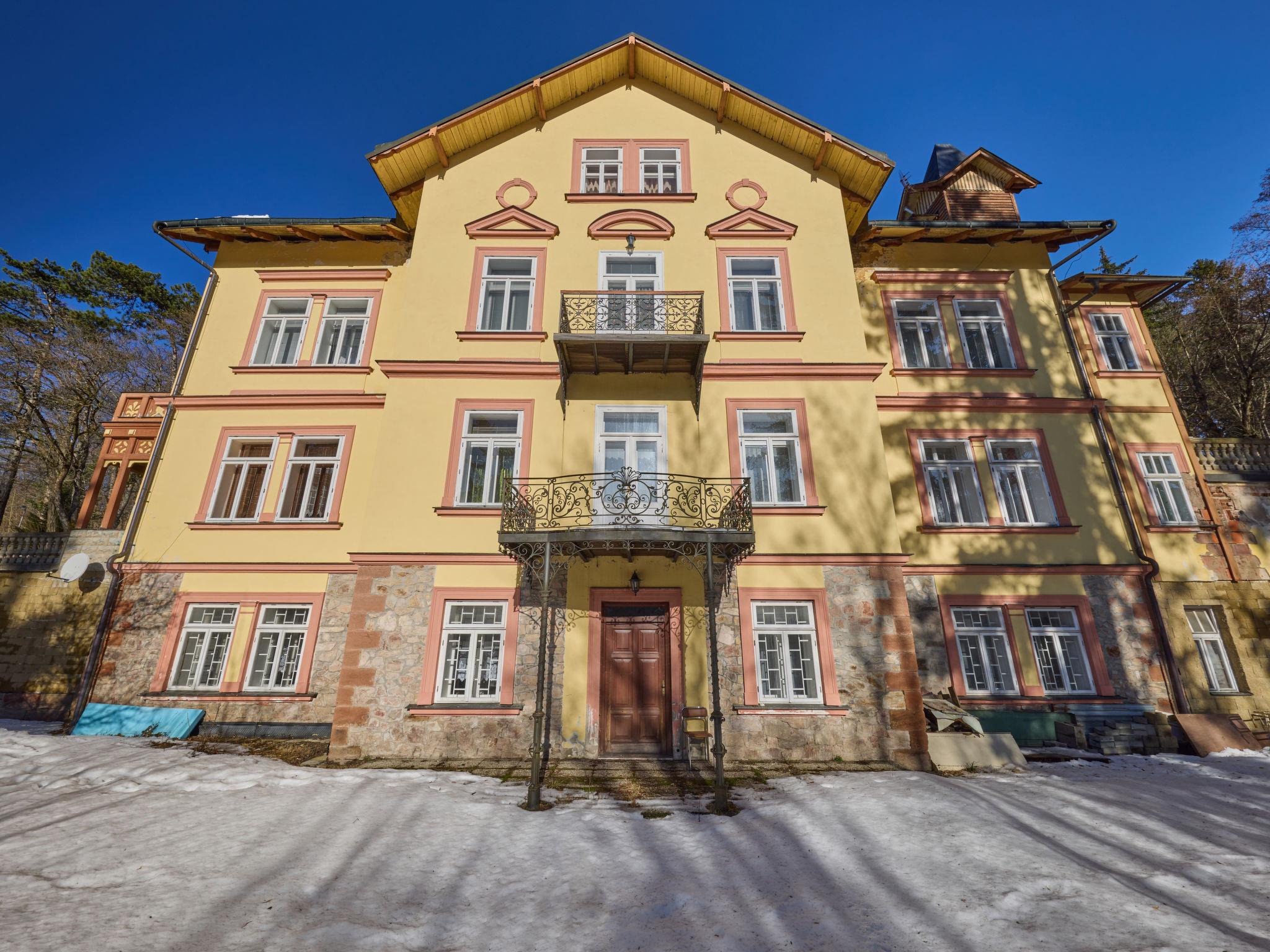 Cosy, rustic residence "Villa Belvedere", detached. 10 apartments in the residence. In the resort, 200 m from the centre, in a sunny position, 500 m from the skiing area. In the house: central heating system. Linen change (suppl. charge extra). Towel change (suppl. charge extra). Room cleaning on request (extra). Parking at the house, public parking extra. Grocery 300 m, restaurant 50 m, bus stop "Janské Lázne - Lesní dum" 300 m, railway station "Svoboda nad Úpou" 3.3 km, park "Farmapark Muchomurka" 1 km, outdoor swimming pool 7 km, indoor swimming pool 400 m. Tennis 1 km, minigolf 400 m, cycle lane 100 m, cable car 600 m, ski lift 300 m, chair lift 500 m, gondola lift 600 m, slopes 300 m, ski rental 300 m, ski school 400 m, children's ski school 300 m, sled run 700 m, cross country ski track. Nearby attractions: Lanovka na Cernou horu 600 m, Janské Lázne Spa, Stezka korunami stromu 1 km, bobová dráha 5 km, Pec pod Snežkou, Relaxpark, bobová dráha 11 km, Vrchlabí 10 km, Trutnov 12 km, Malá Úpa 15 km, Zoo Dvur Králové, Adršpach 35, Karpacz 40 km. Well-known ski regions can easily be reached: SkiResort CERNÁ HORA - PEC, Mladé Buky 5 km, Horní Malá Úpa 16 km, Špindleruv Mlýn 30 km. Hiking paths: krkonošské naucné stezky. Please note: no lift.